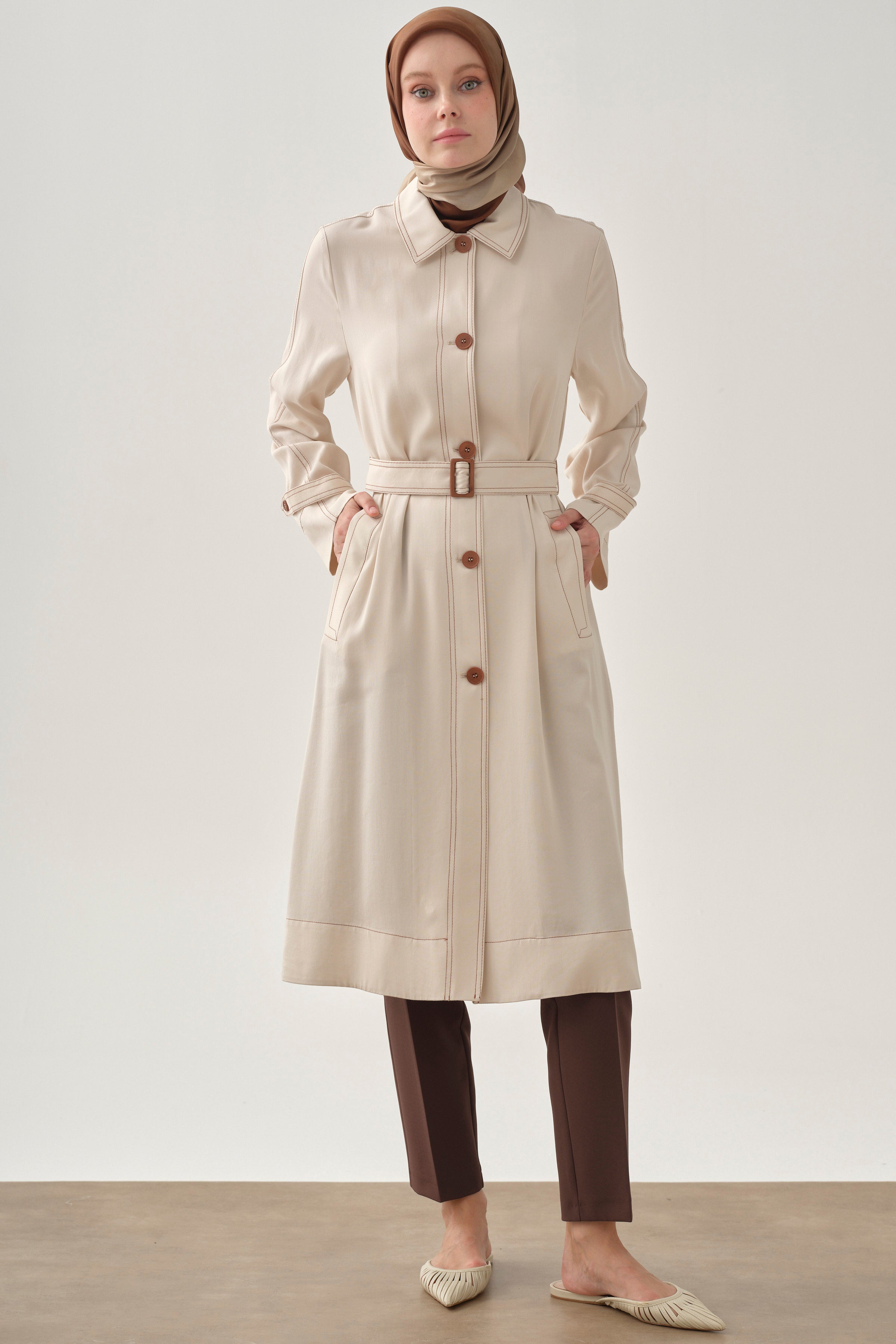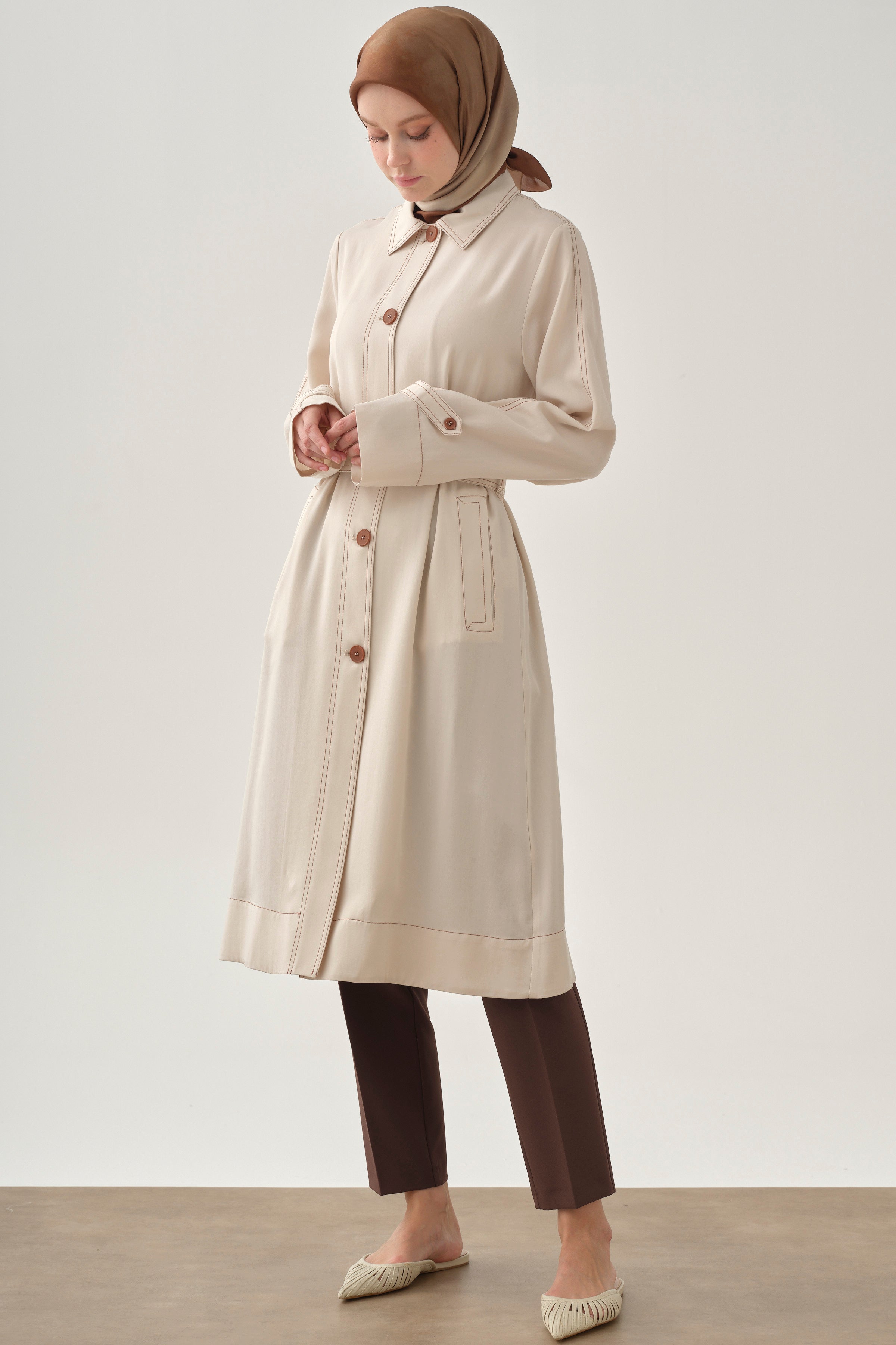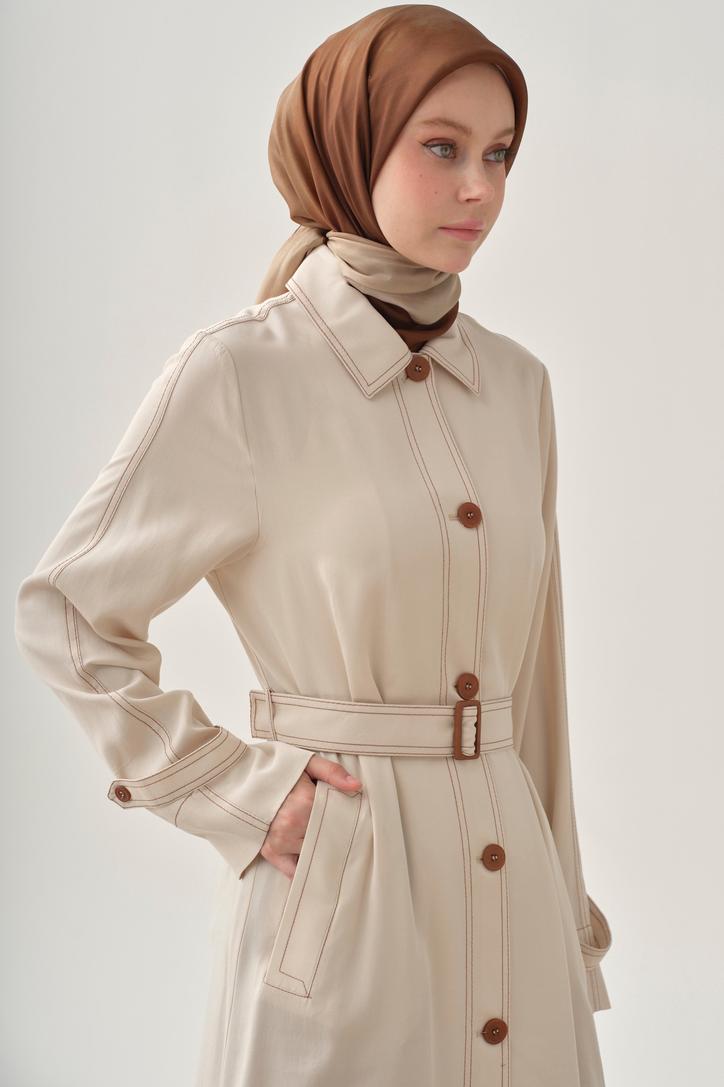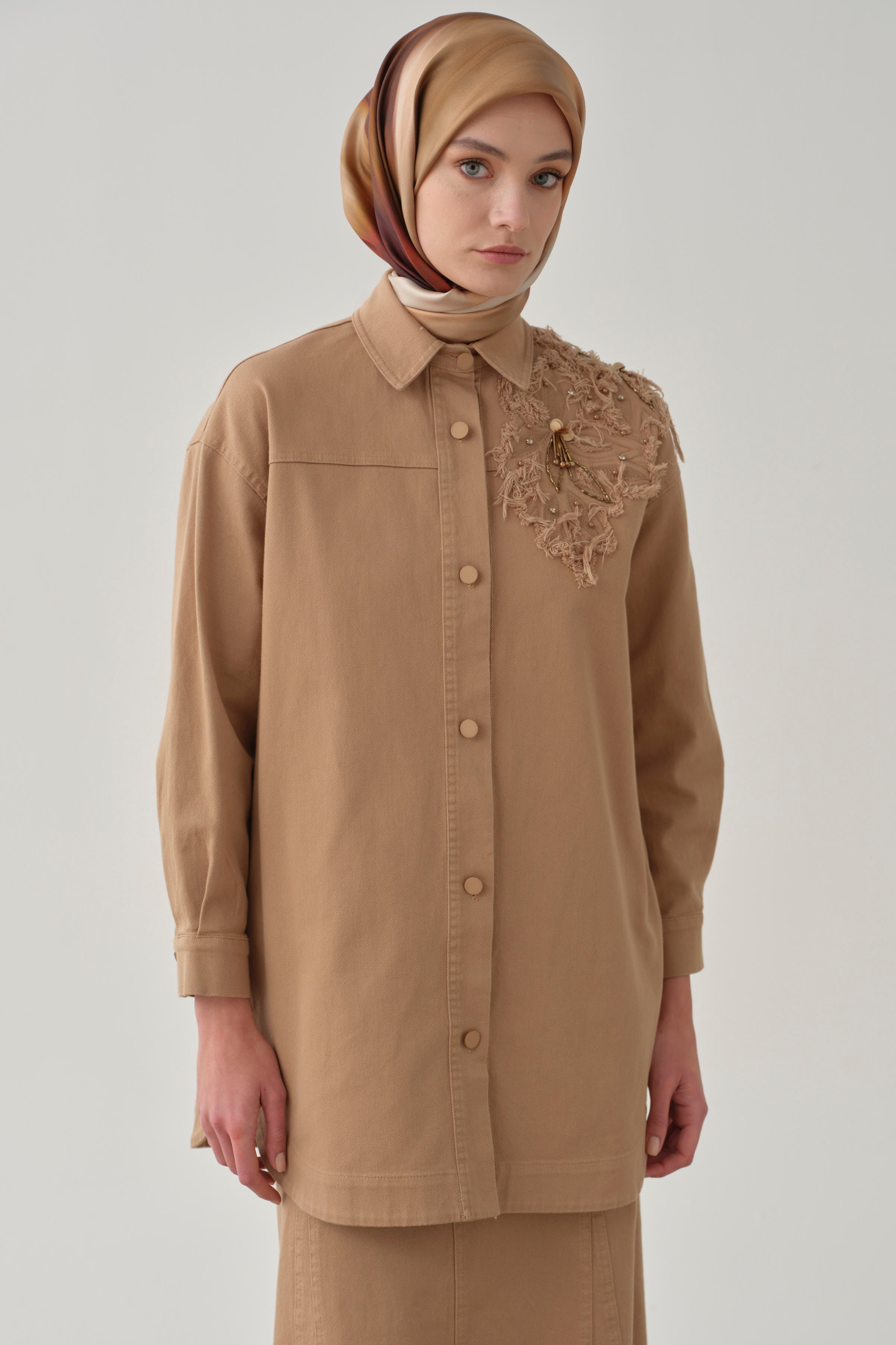 Veste crop matelassée avec passepoil en gros-grain - Chamois