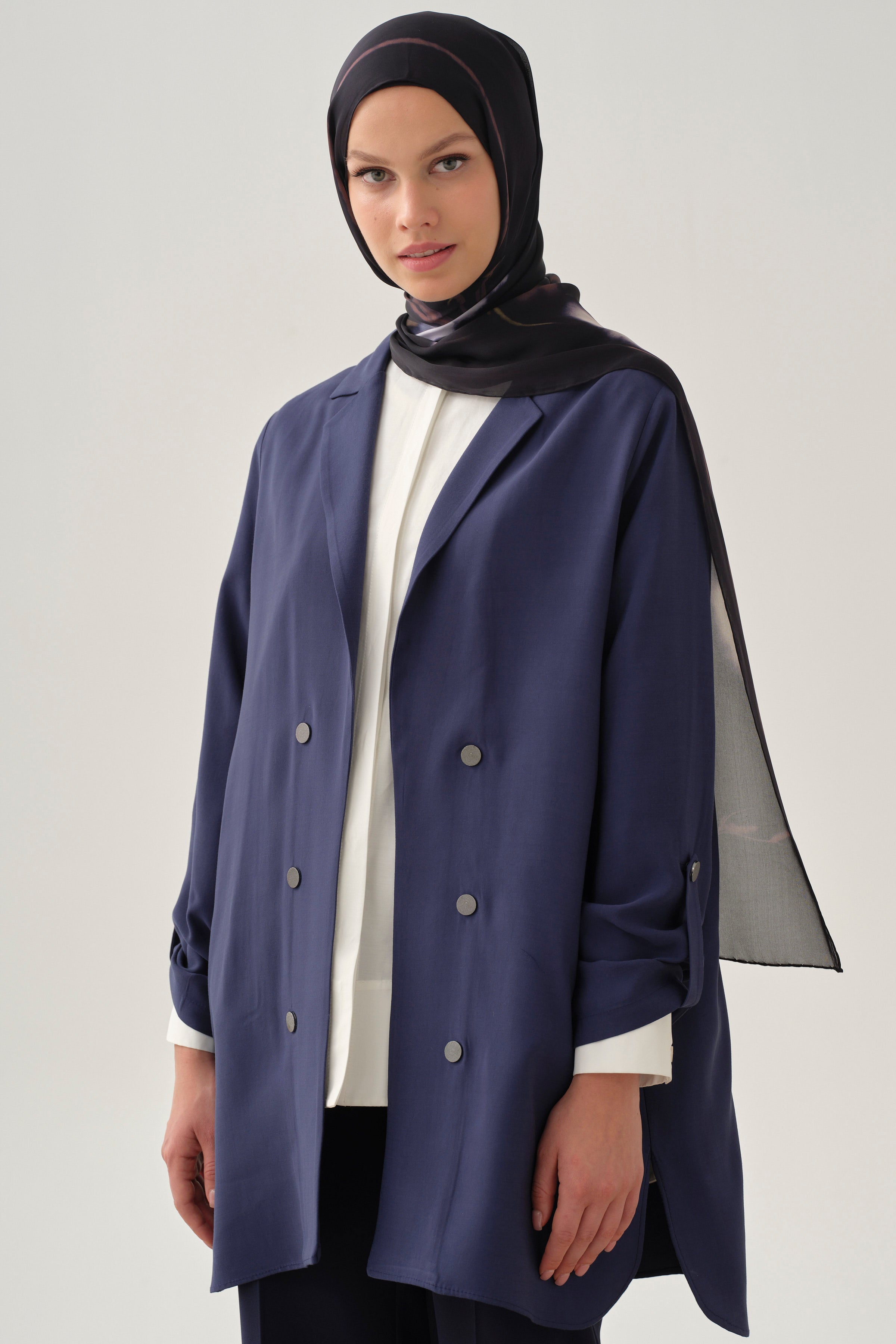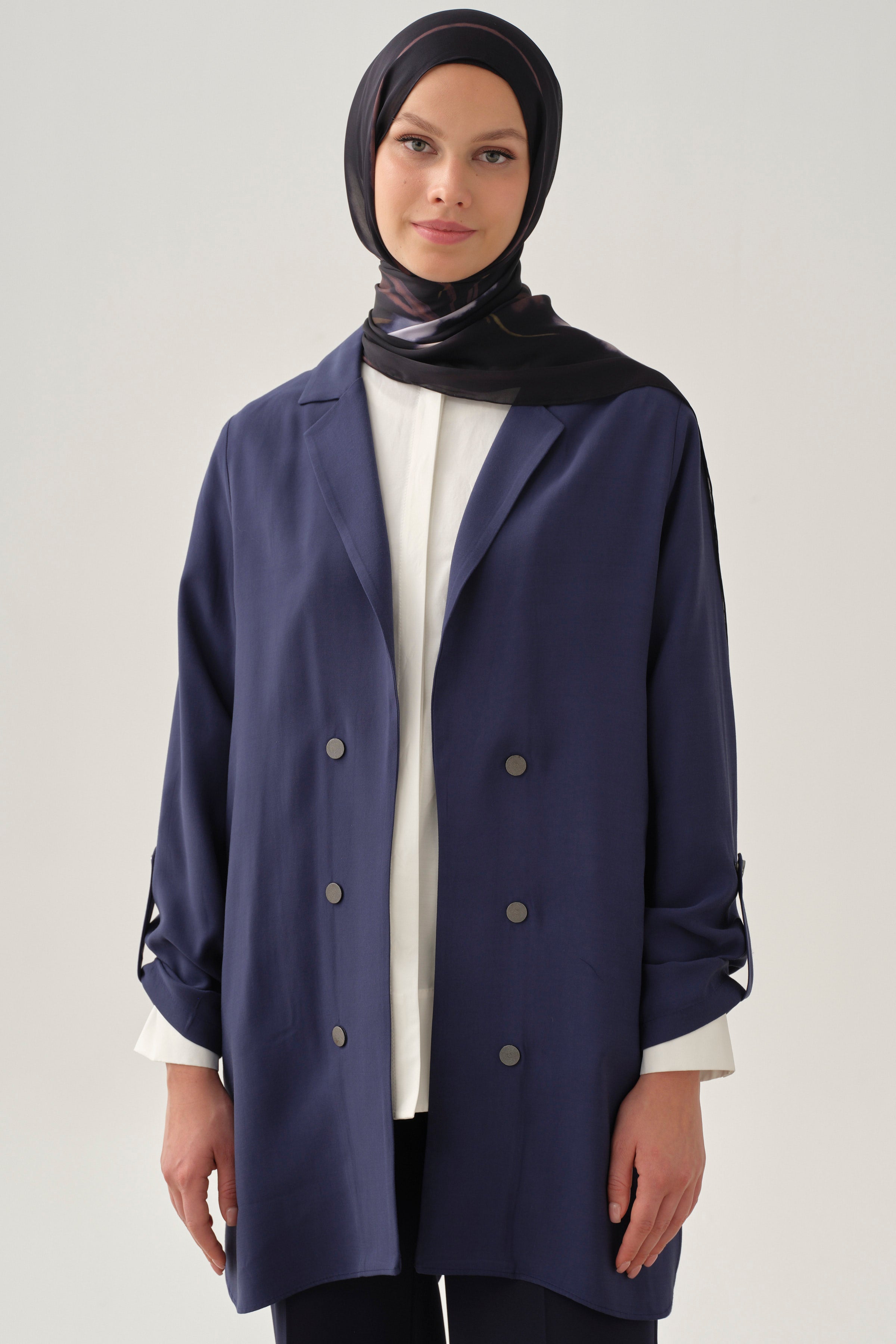 Veste fendue avec détails à bandes sur les manches - Blue marine
