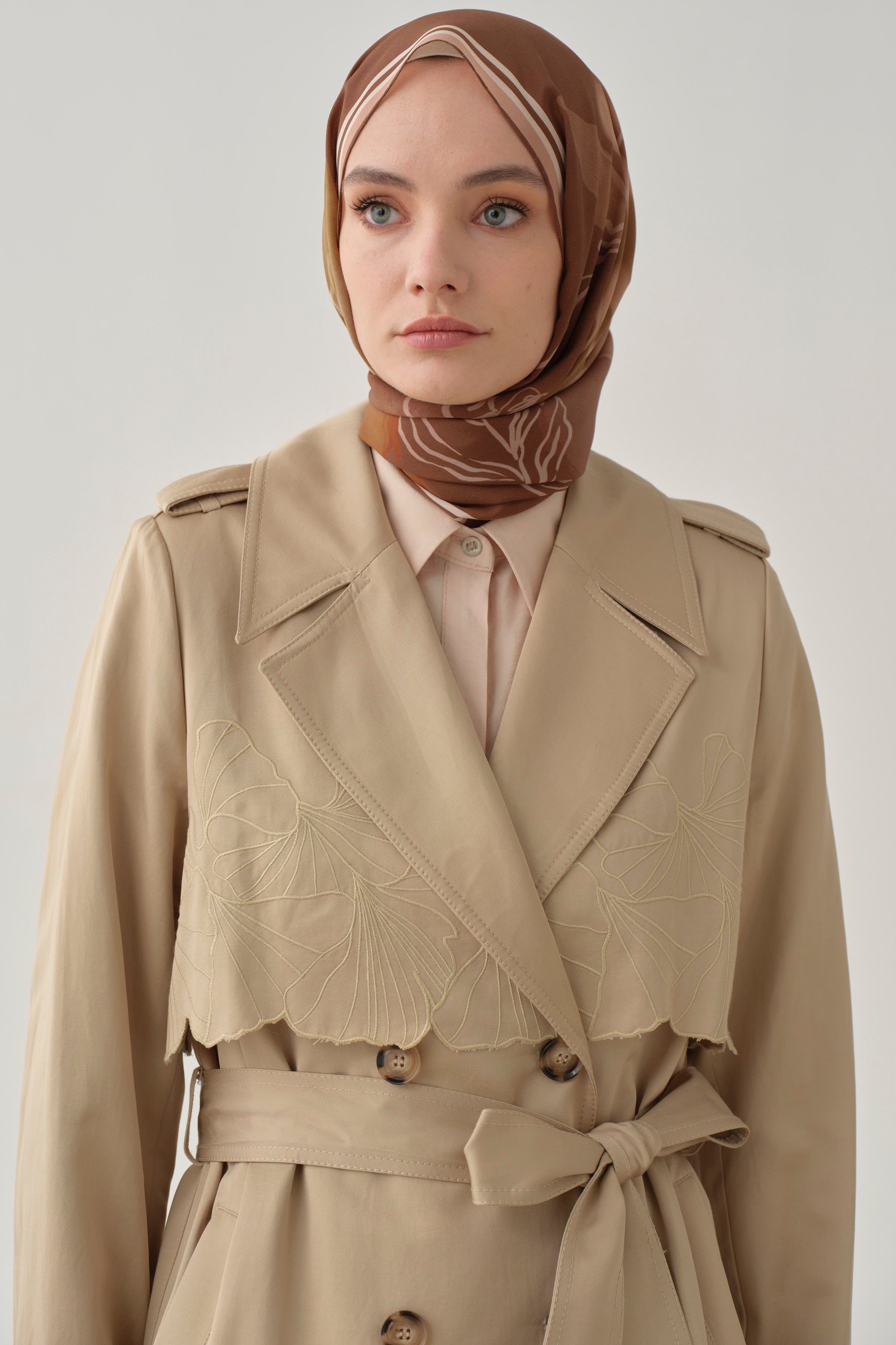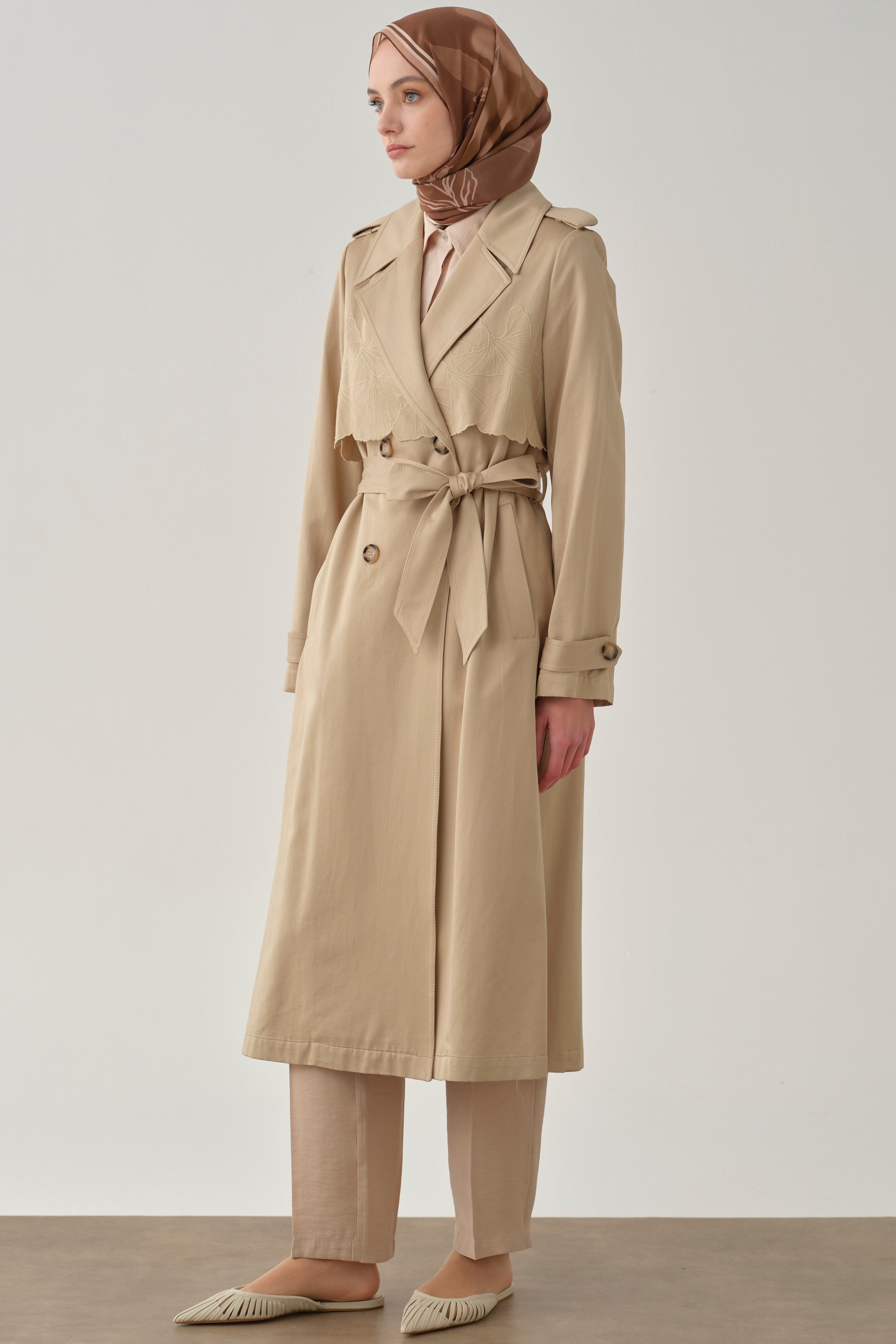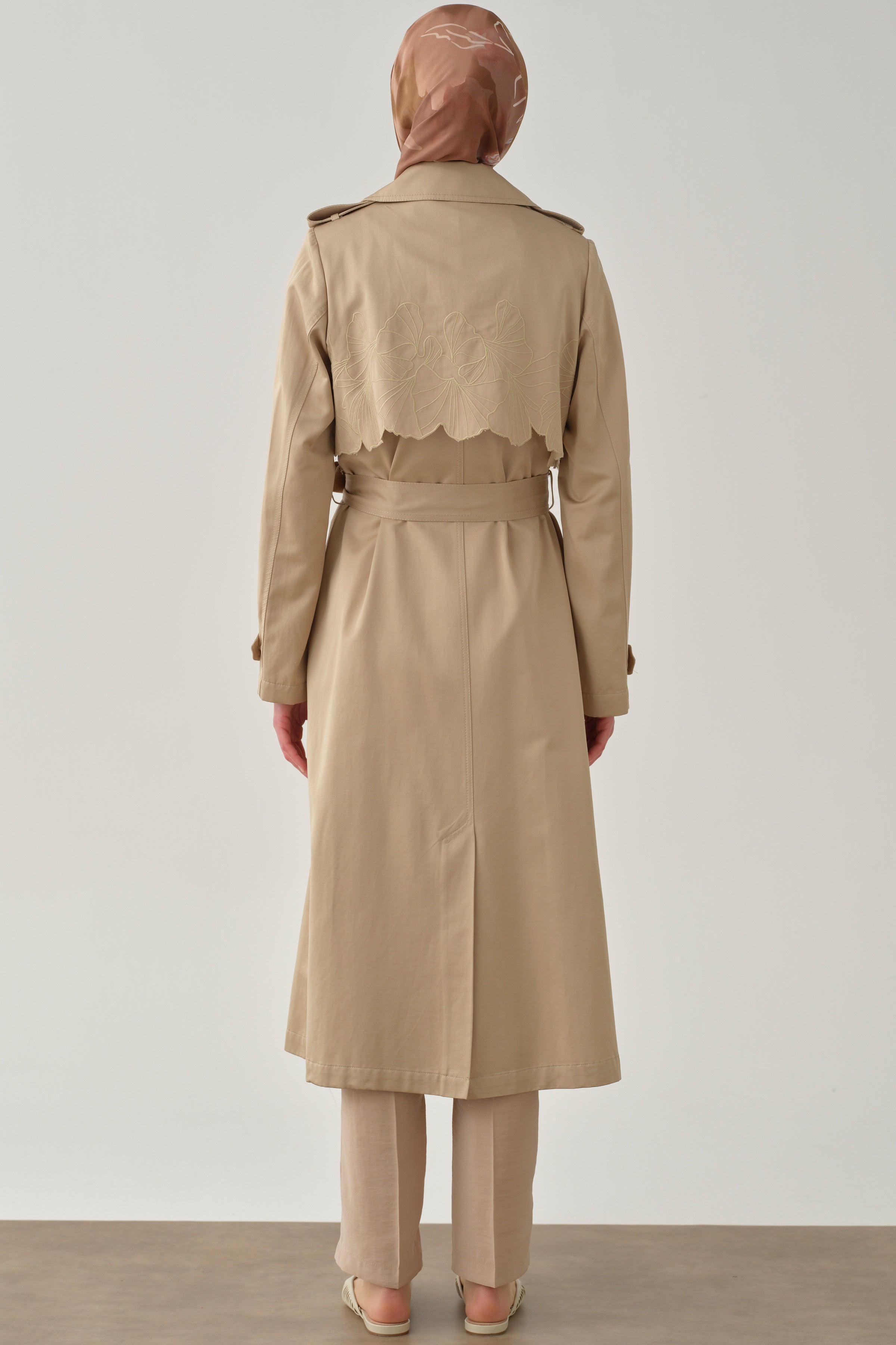 Trench-coat avec détails de broderie et rabat coupe-vent - Grége clair