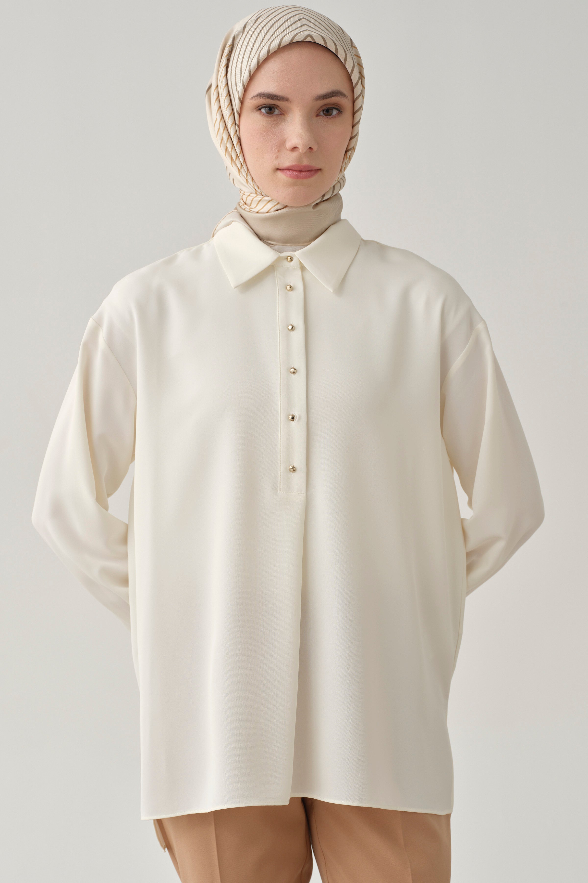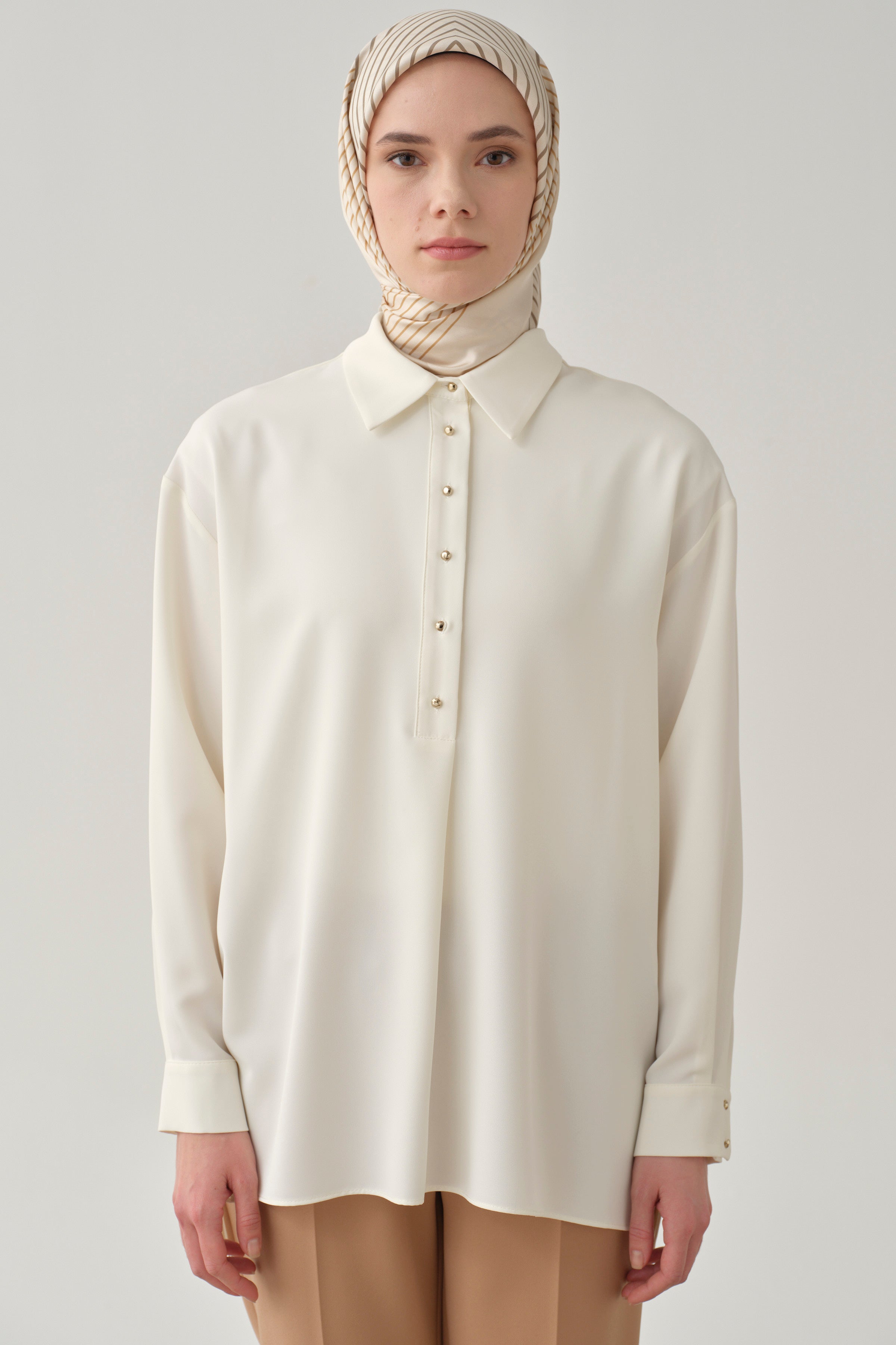 Les chemises et les blouses qui conviennent à votre style classique ou décontracté et qui plairont à vos goûts vestimentaires se trouvent dans la collection de chemises et de blouses de Tuğba.