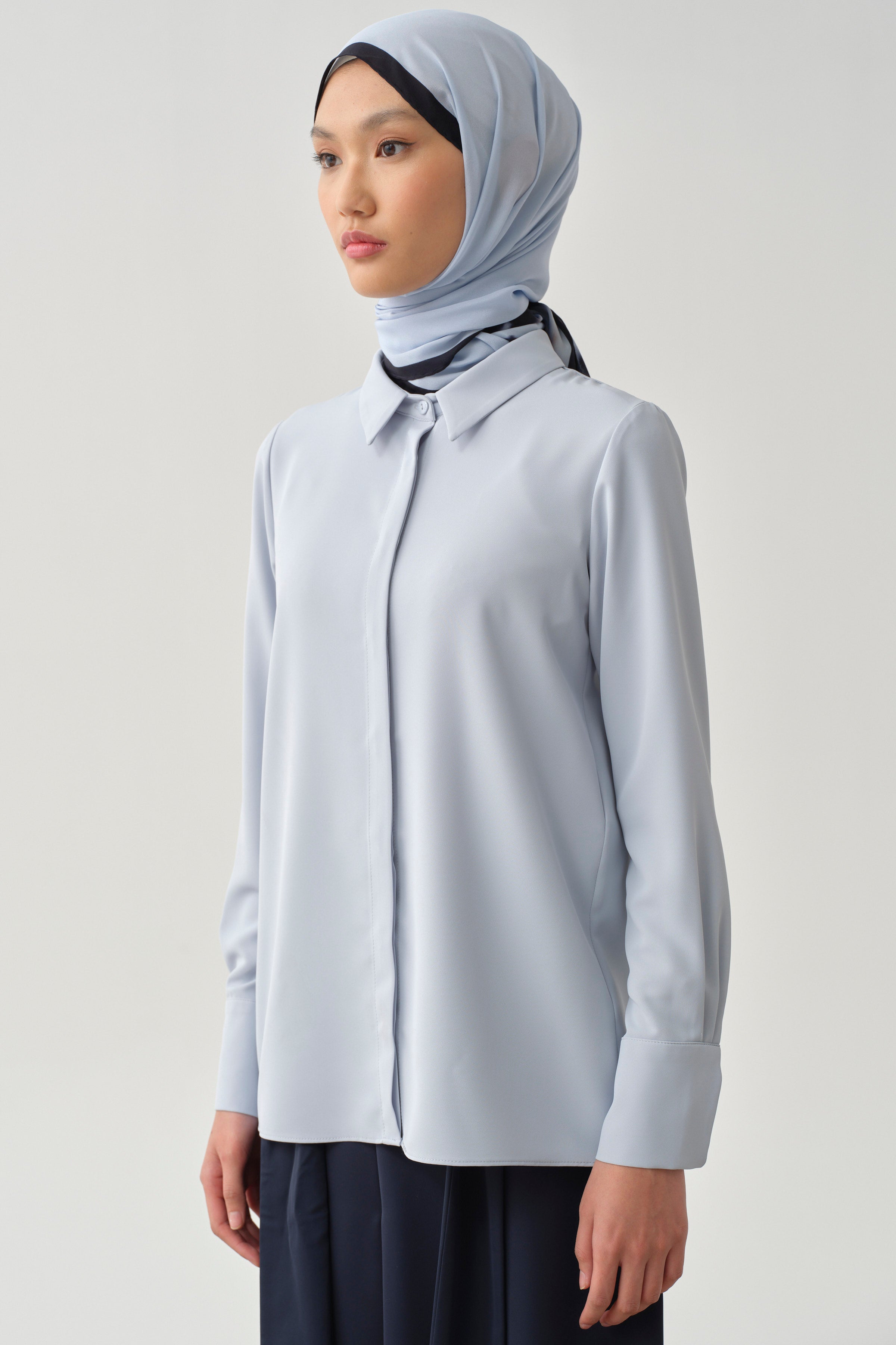 Chemise basique à patte de boutonnage cachée - Bleu clair