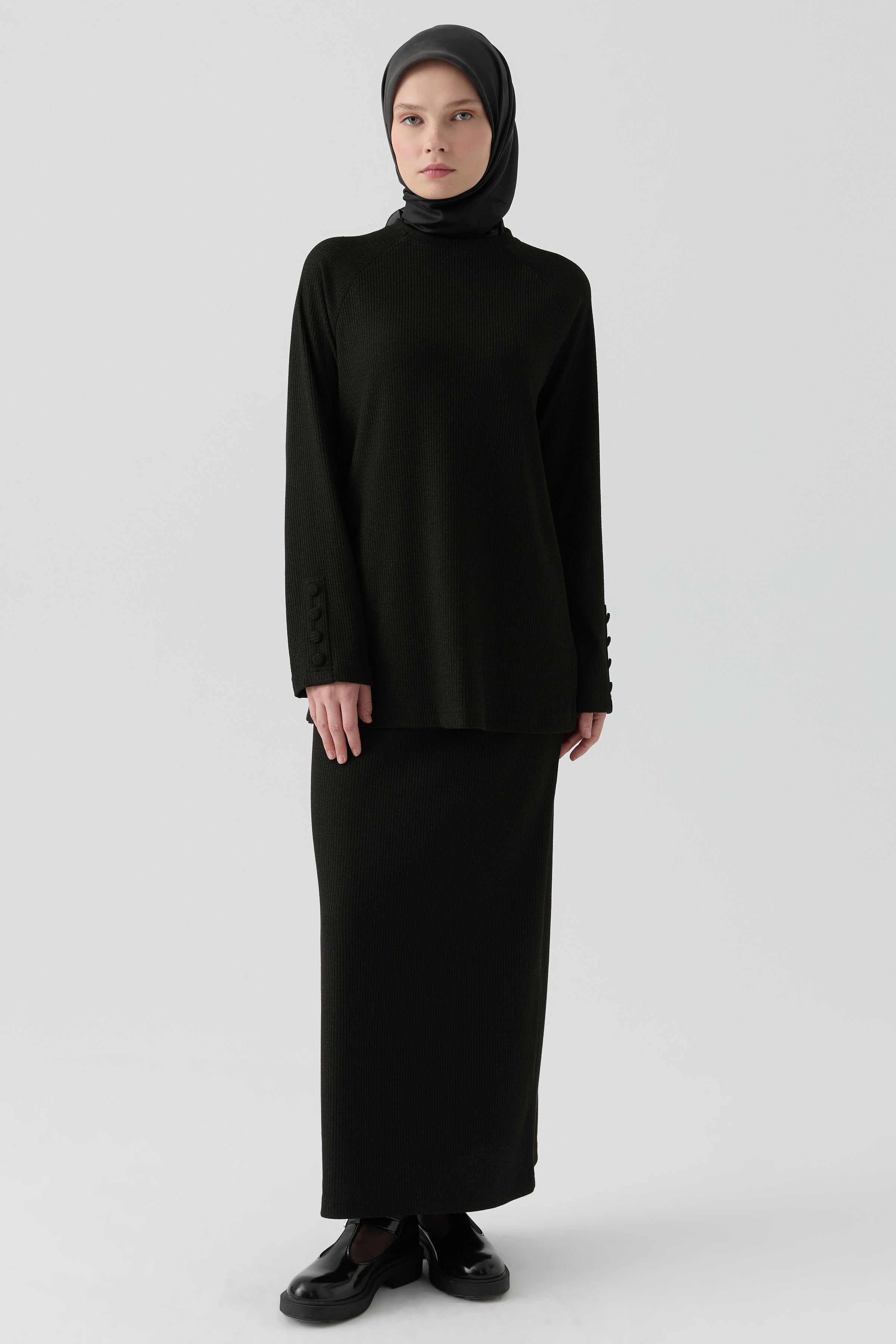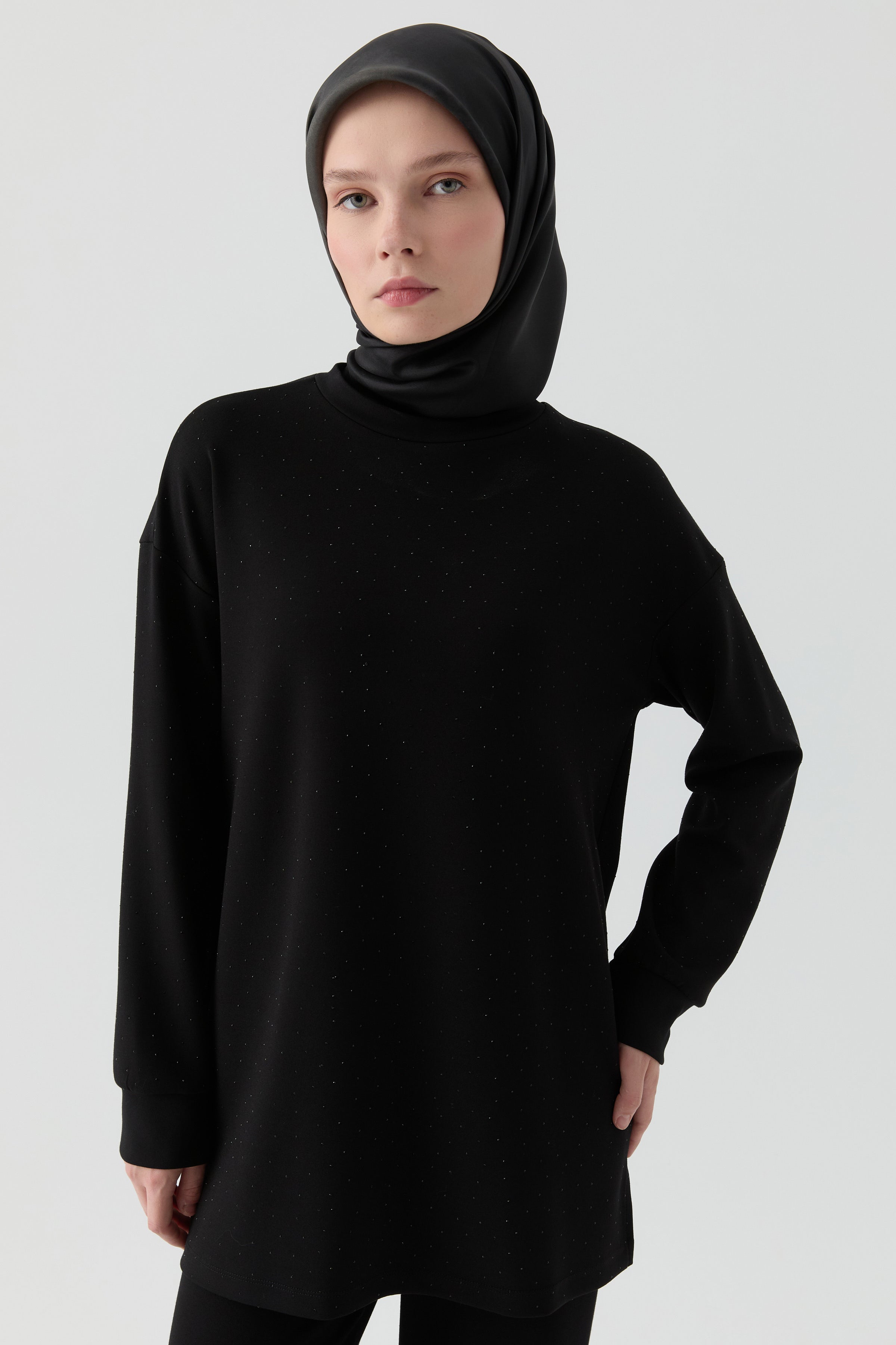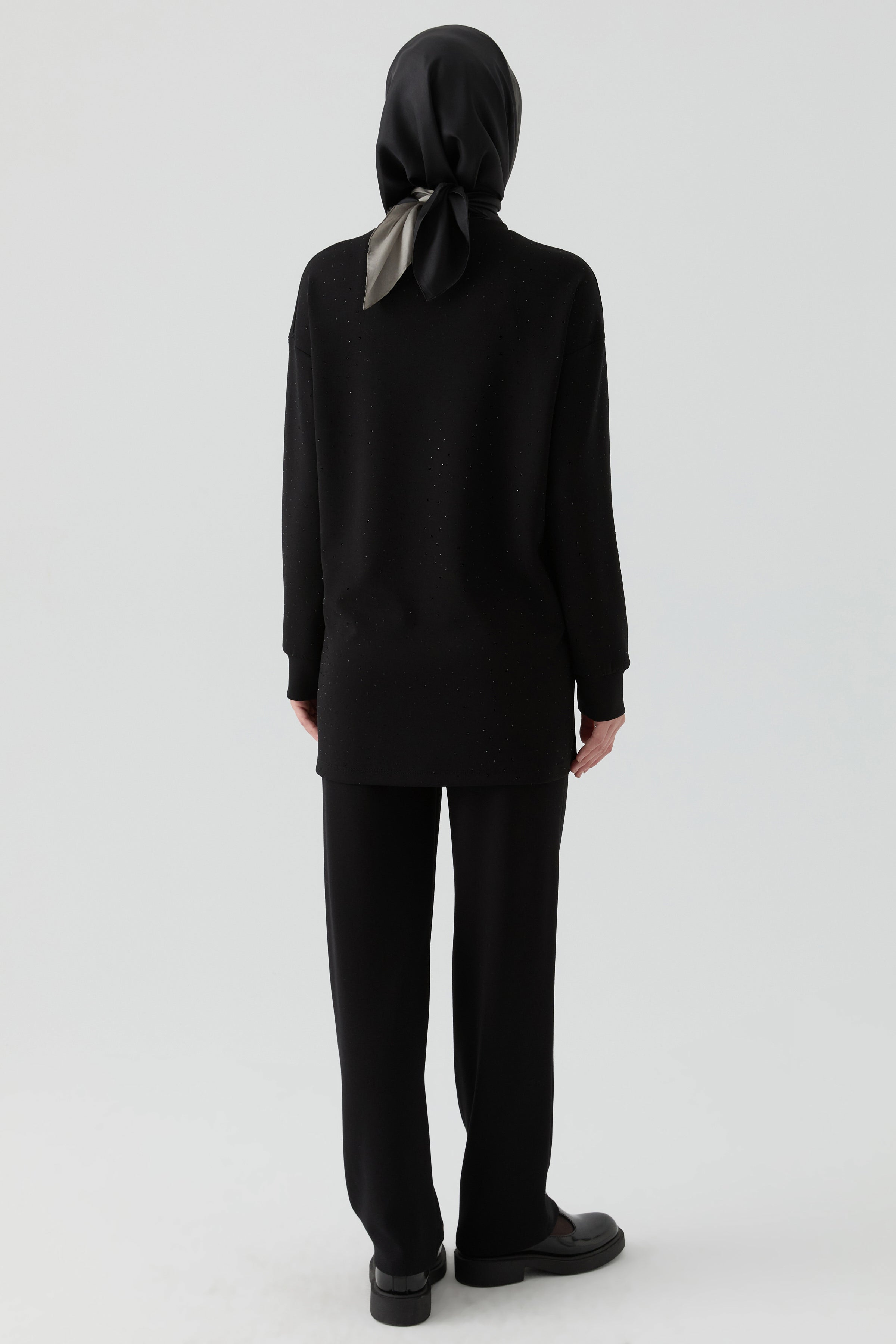 Ensemble tunique avec détail pierres scintillantes - Noir