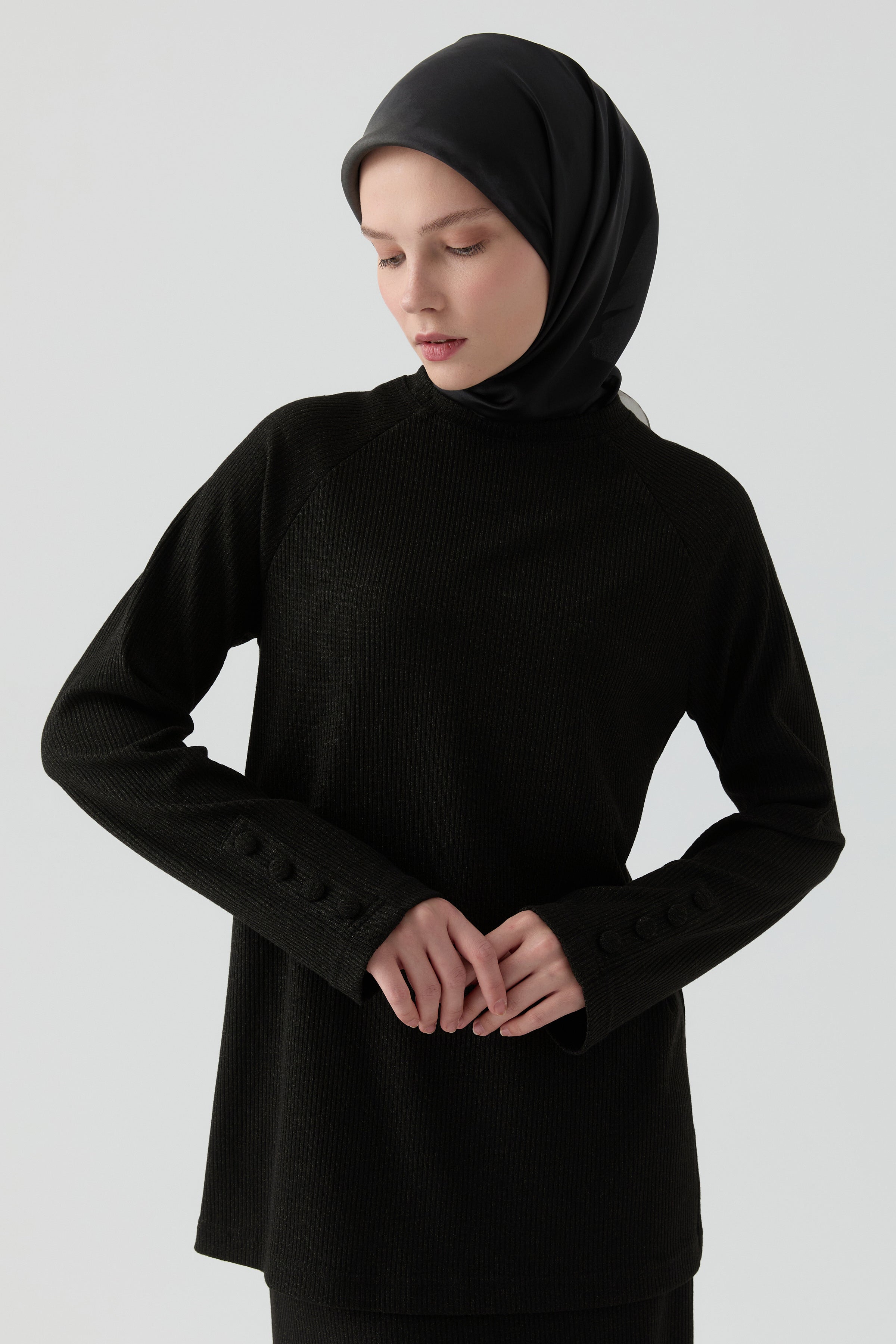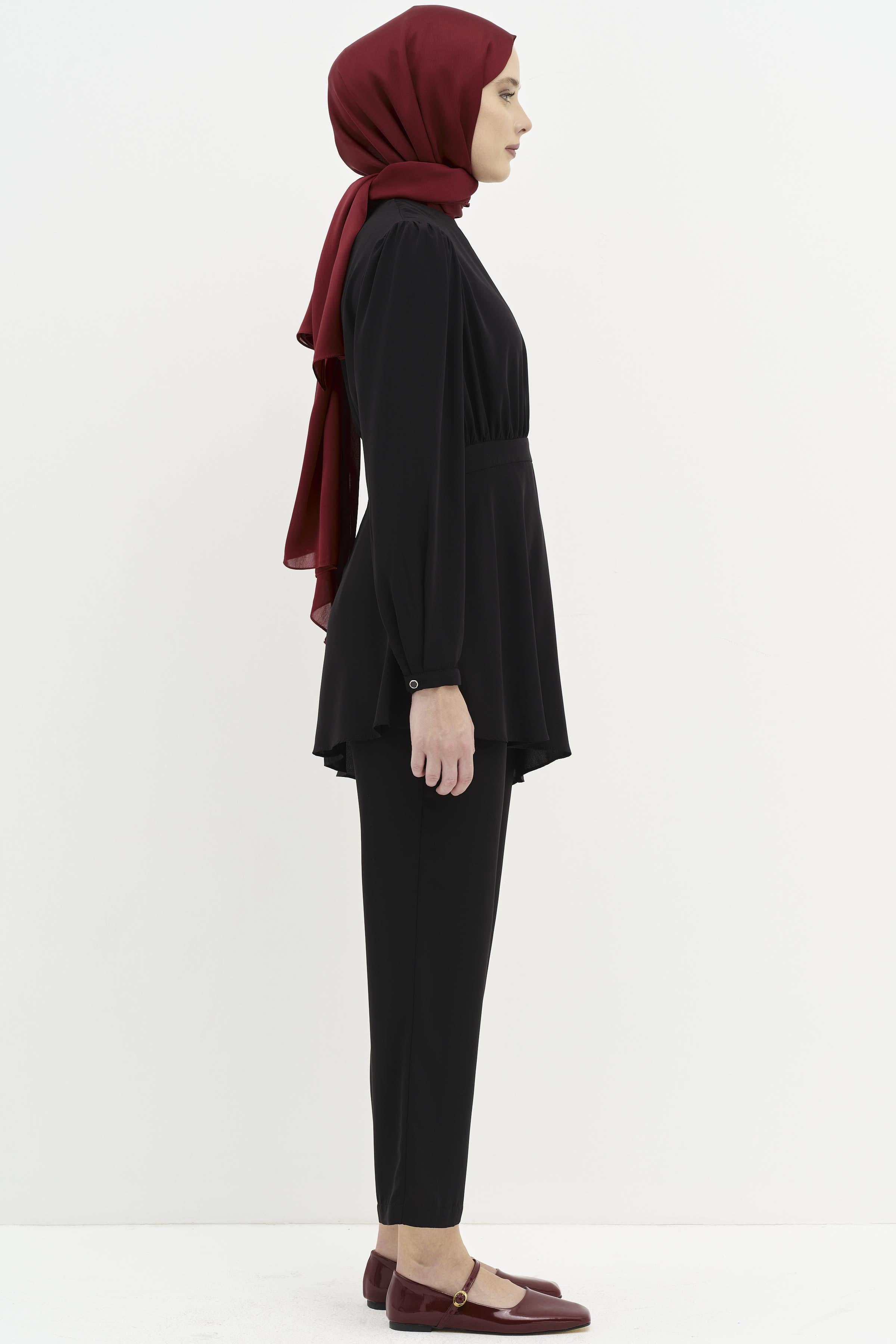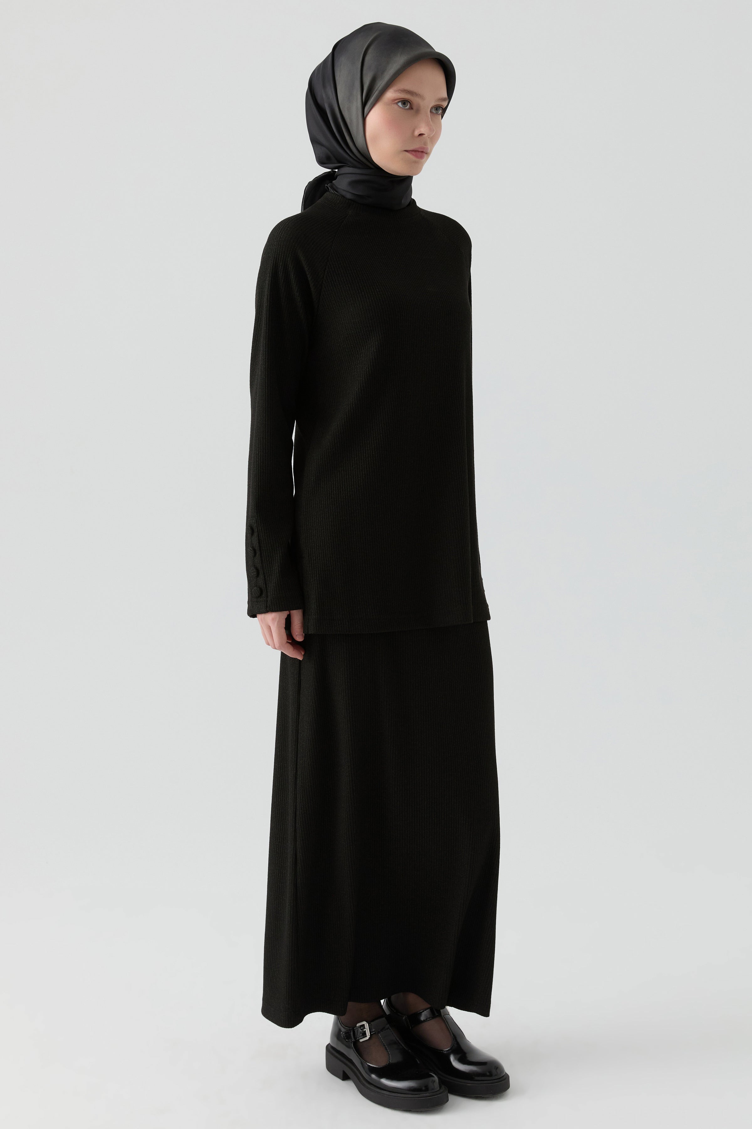 Ensemble tunique avec détail pierres scintillantes - Noir