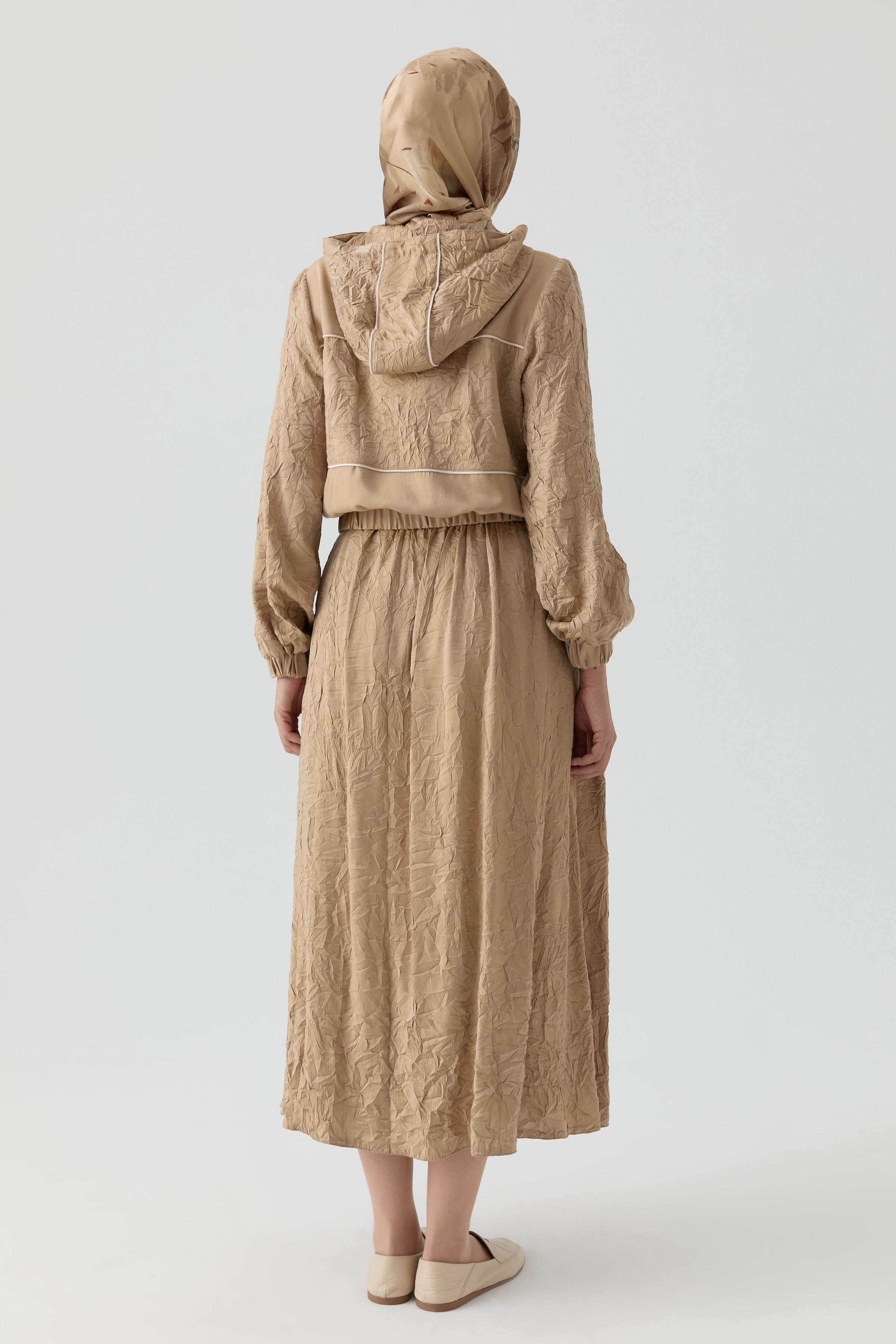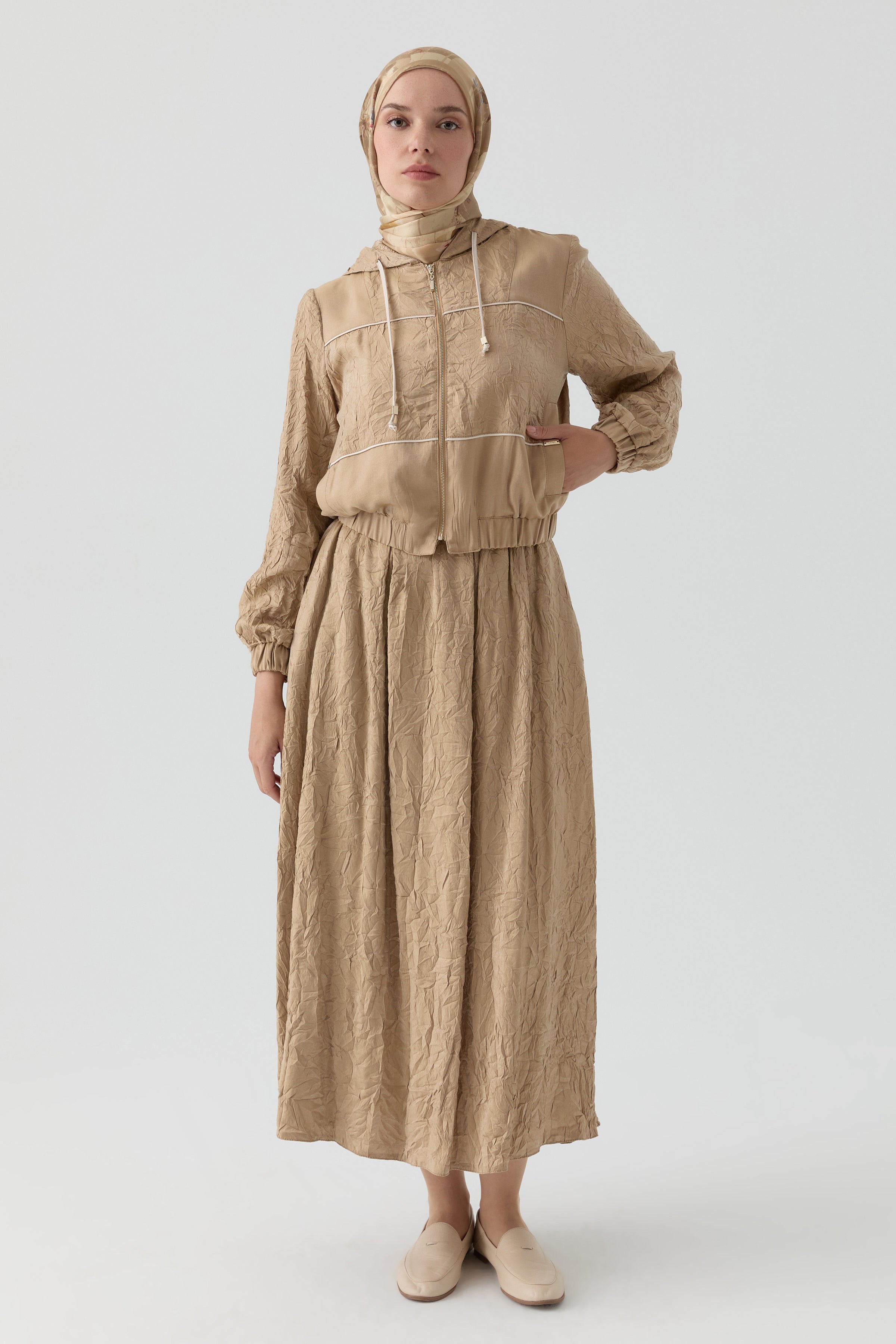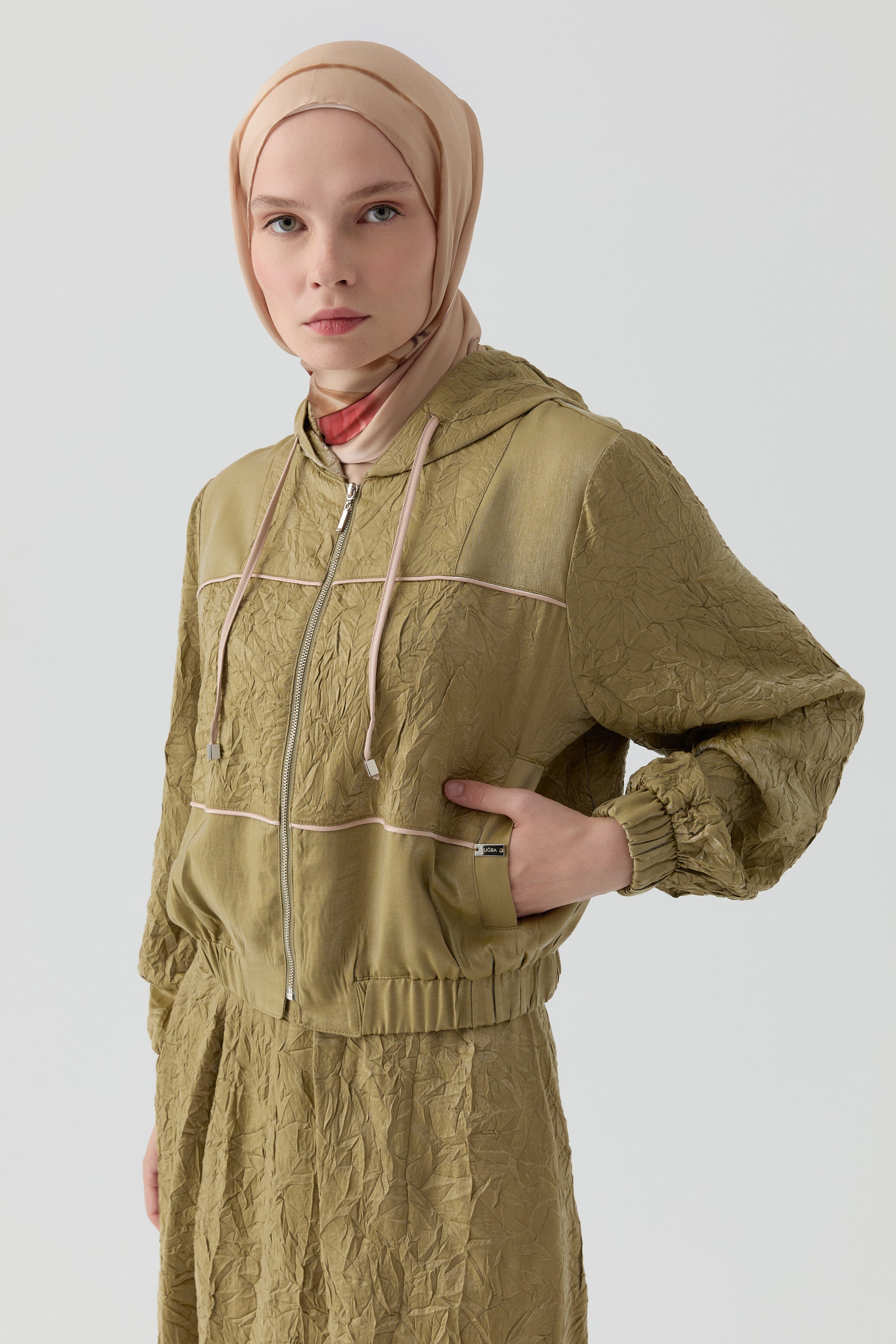 Ensemble jupe à plis fins avec veste crop - Kaki