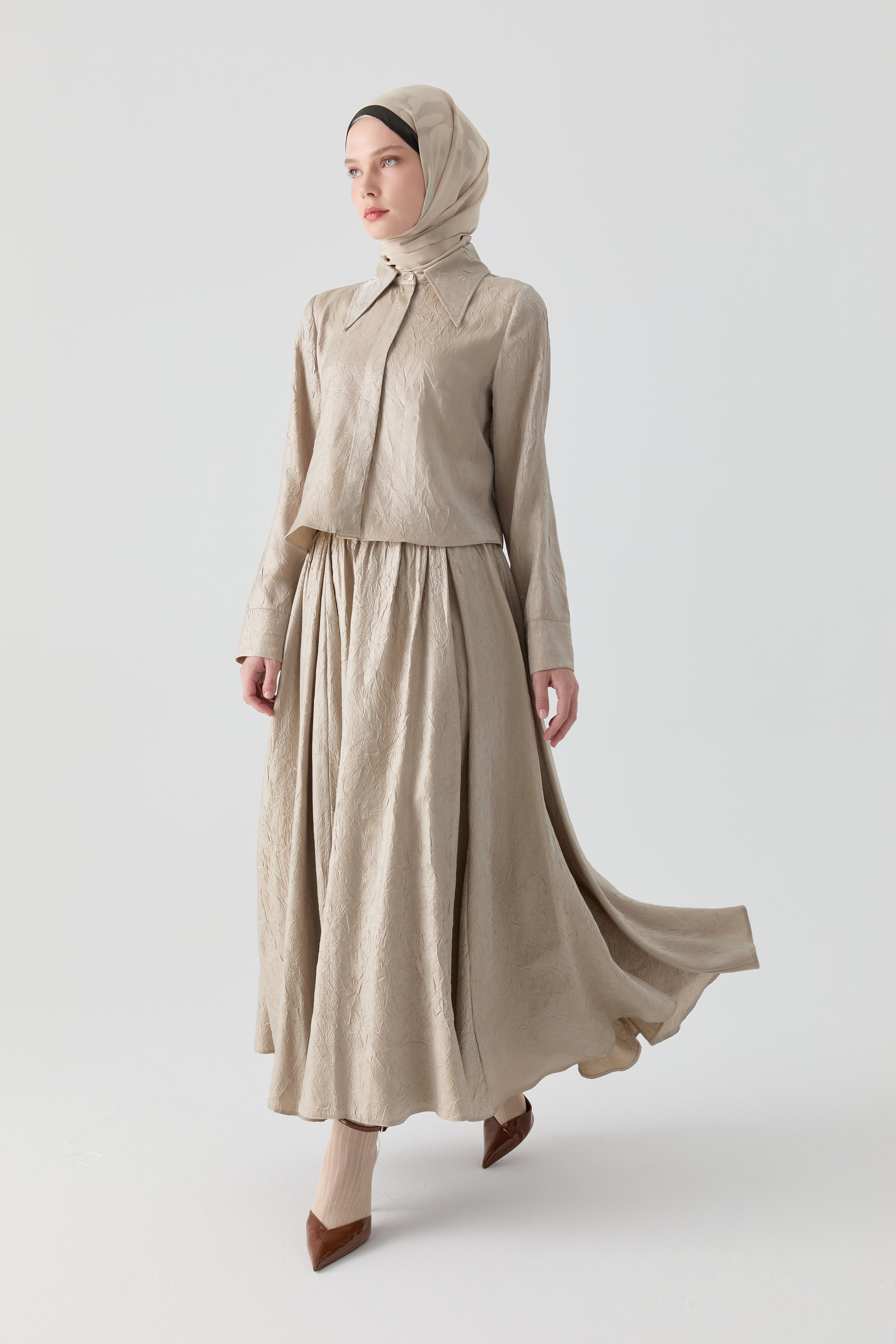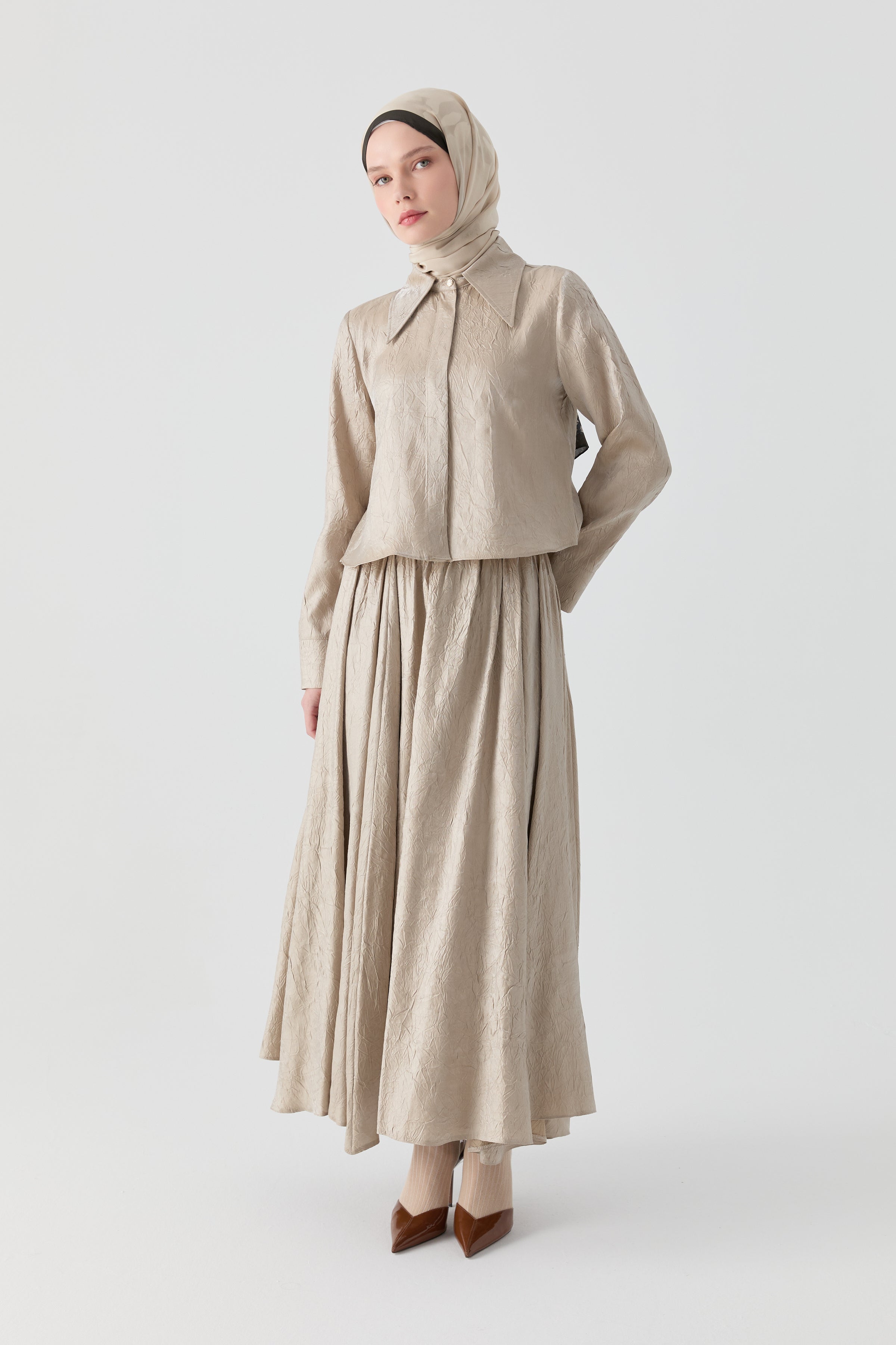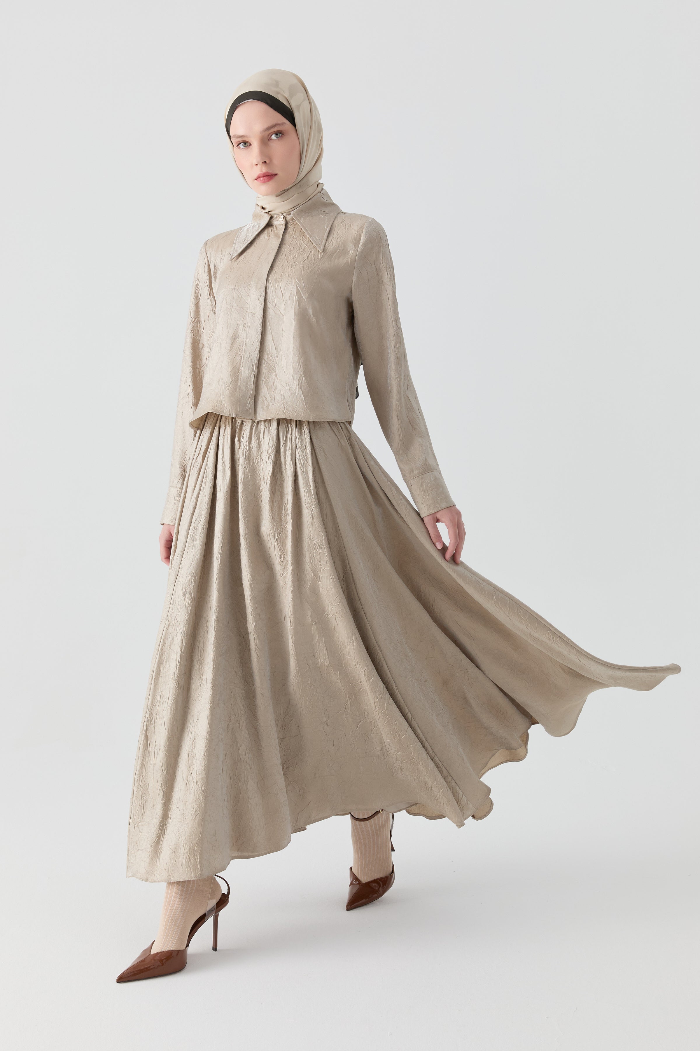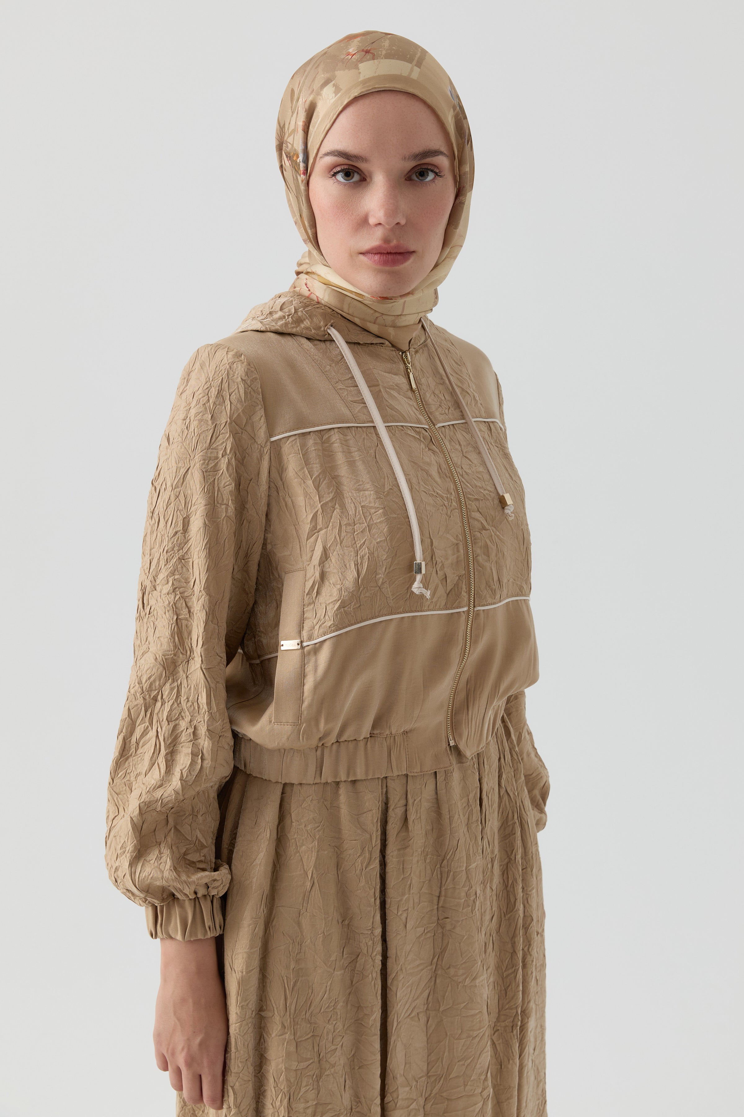 Ensemble jupe à plis fins avec veste crop - Kaki