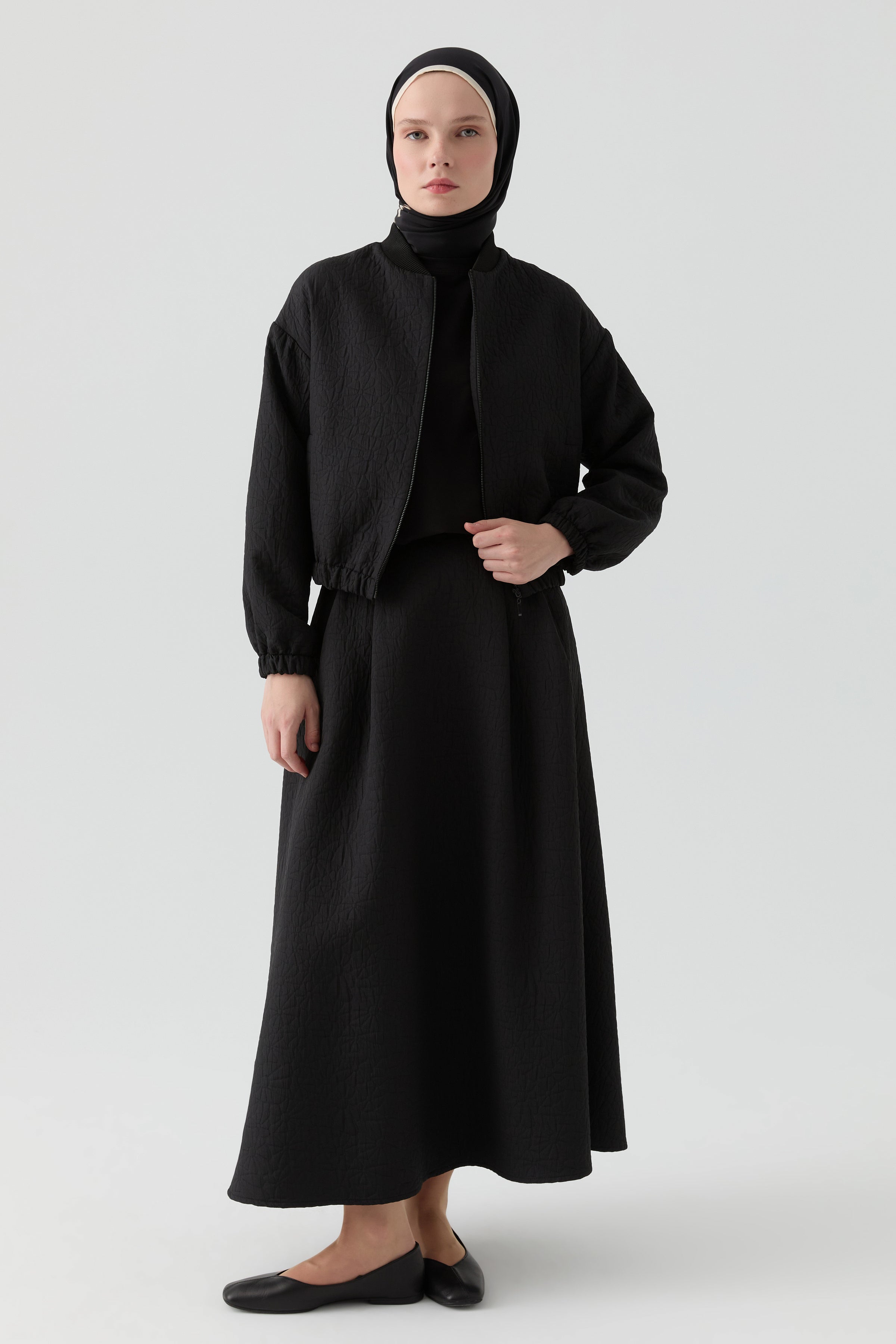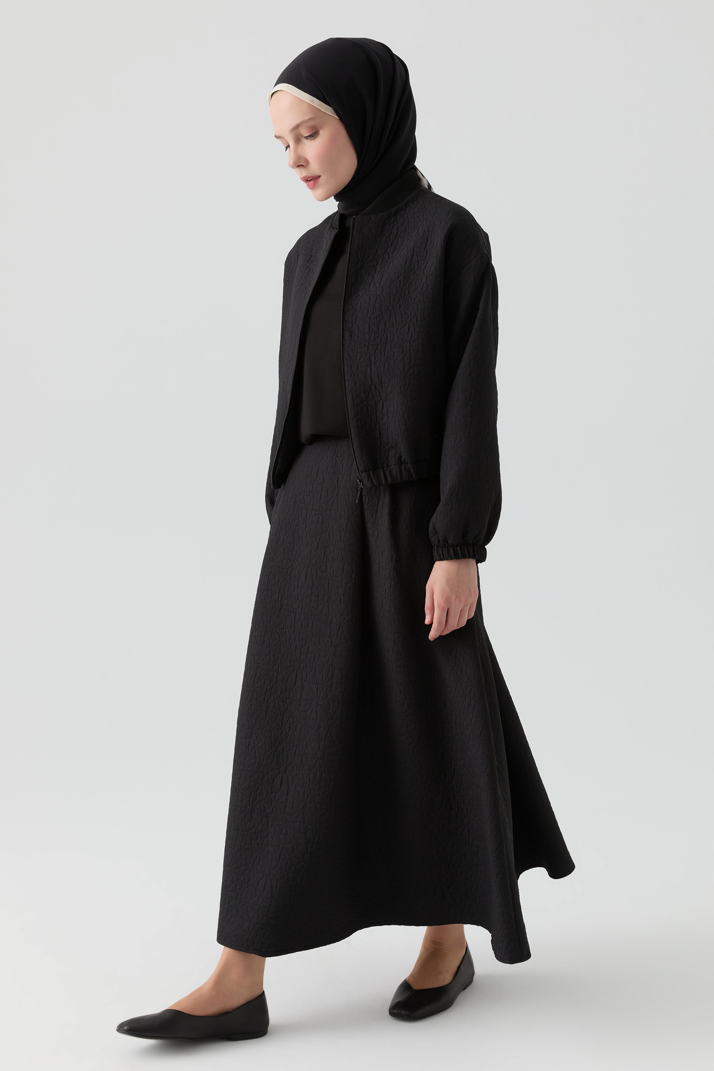 Ensemble en tricot avec jupe et blouse à broderies et garnitures - Noir