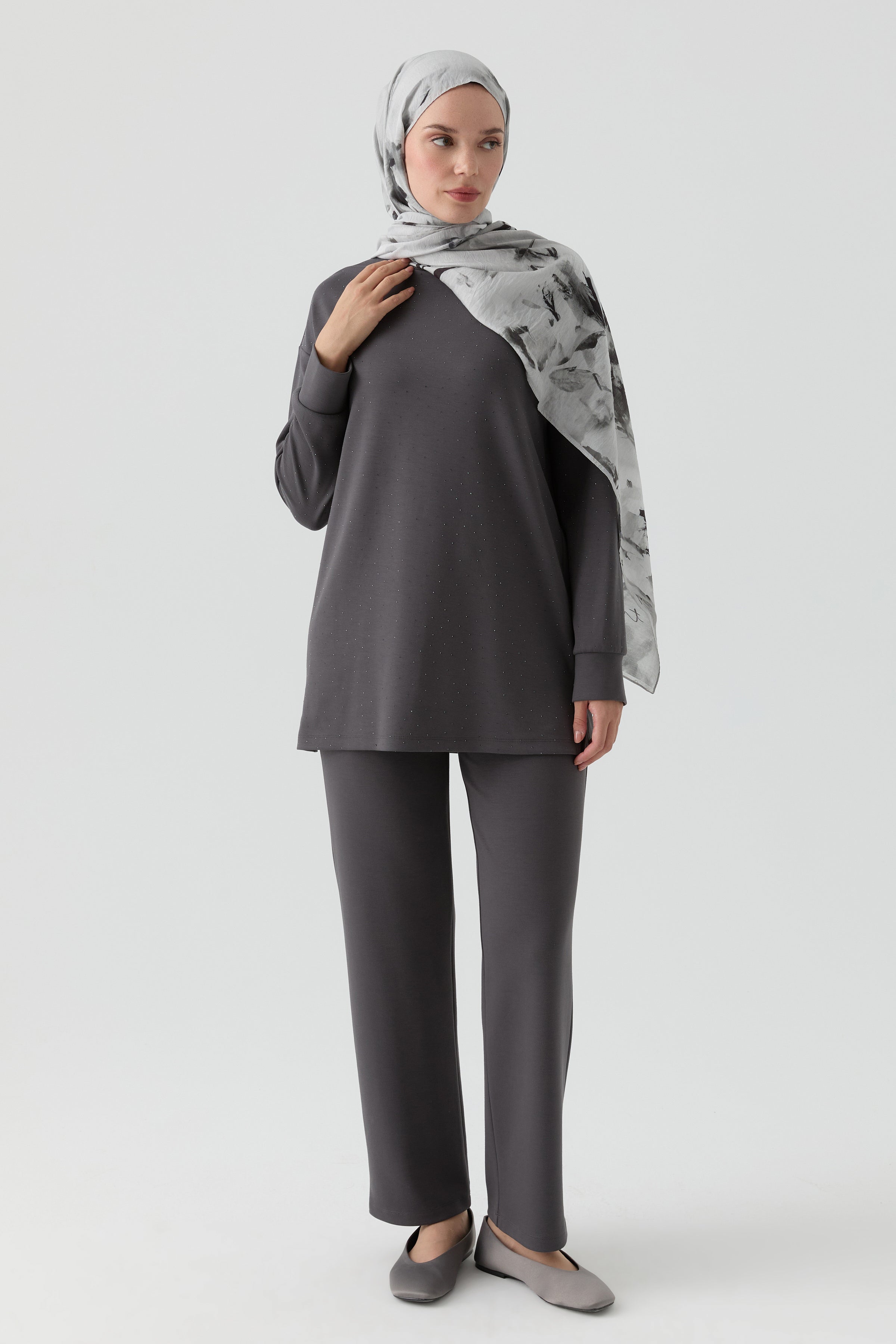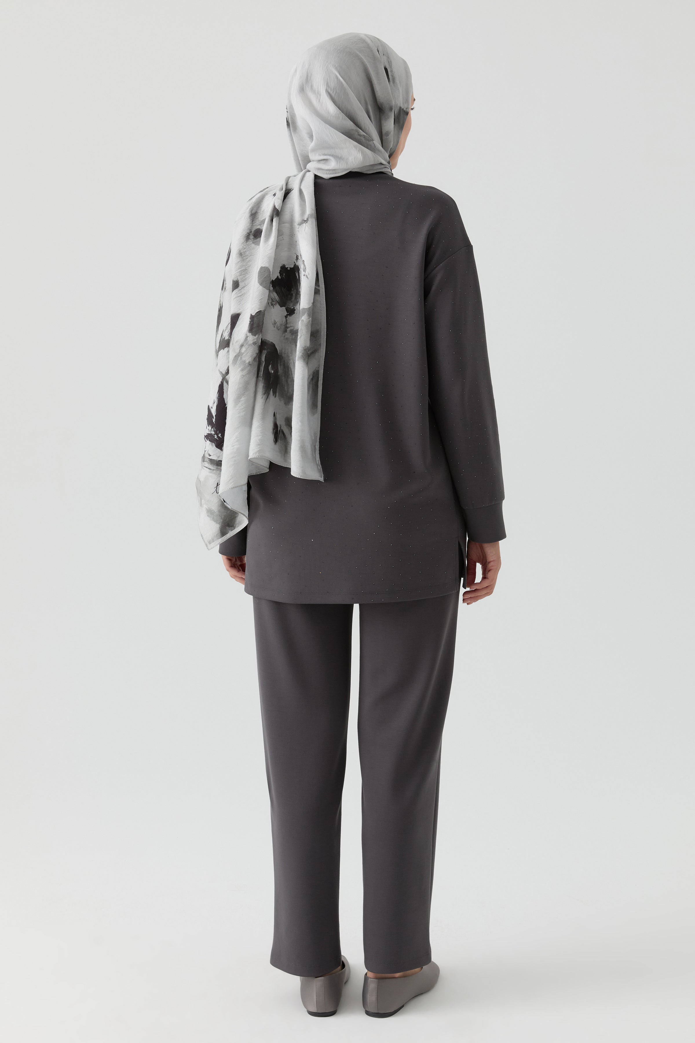 Ensemble tunique avec détail pierres scintillantes - Anthracite