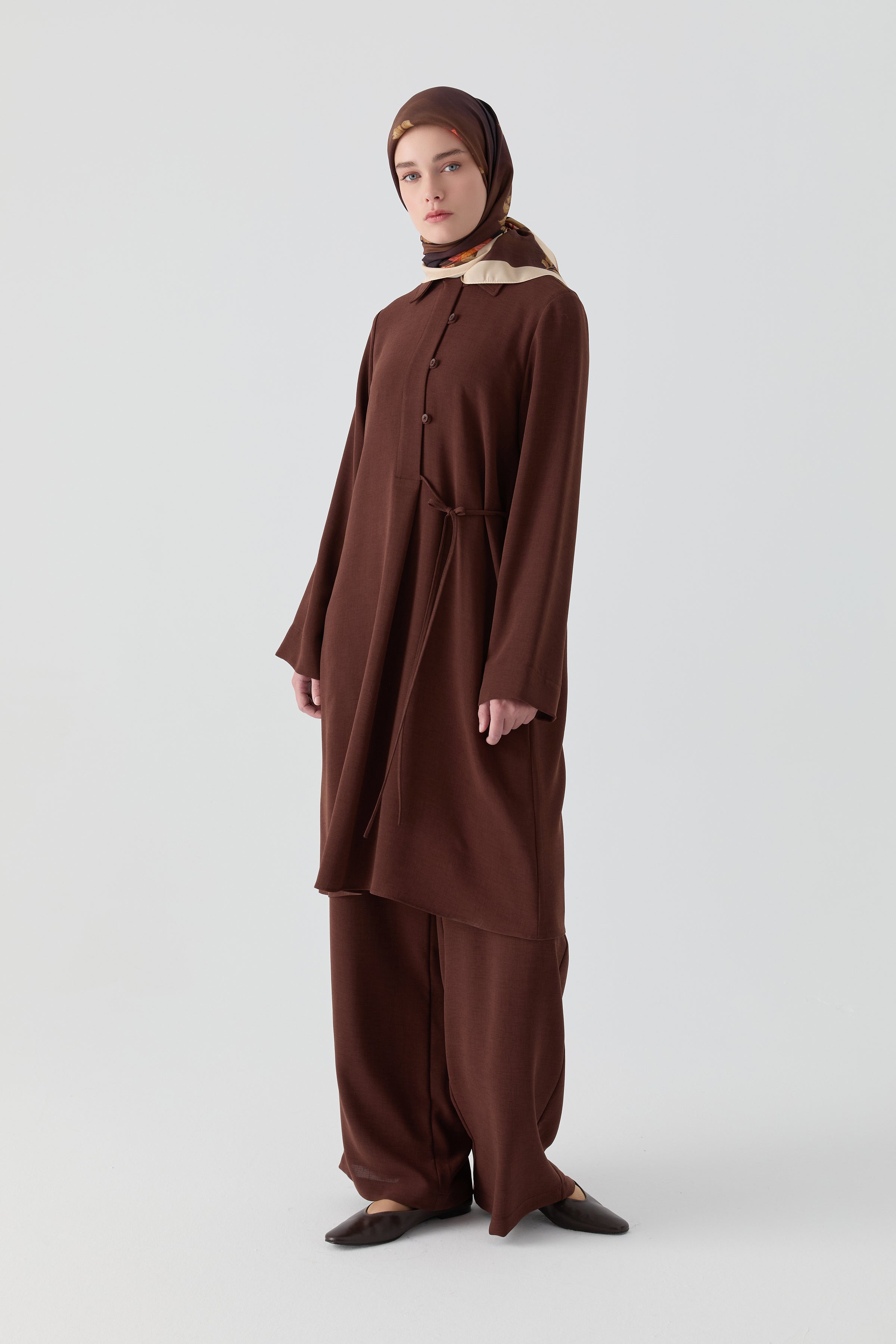 Ensemble tunique et pantalon avec détail cordon - Terre d'ombre
