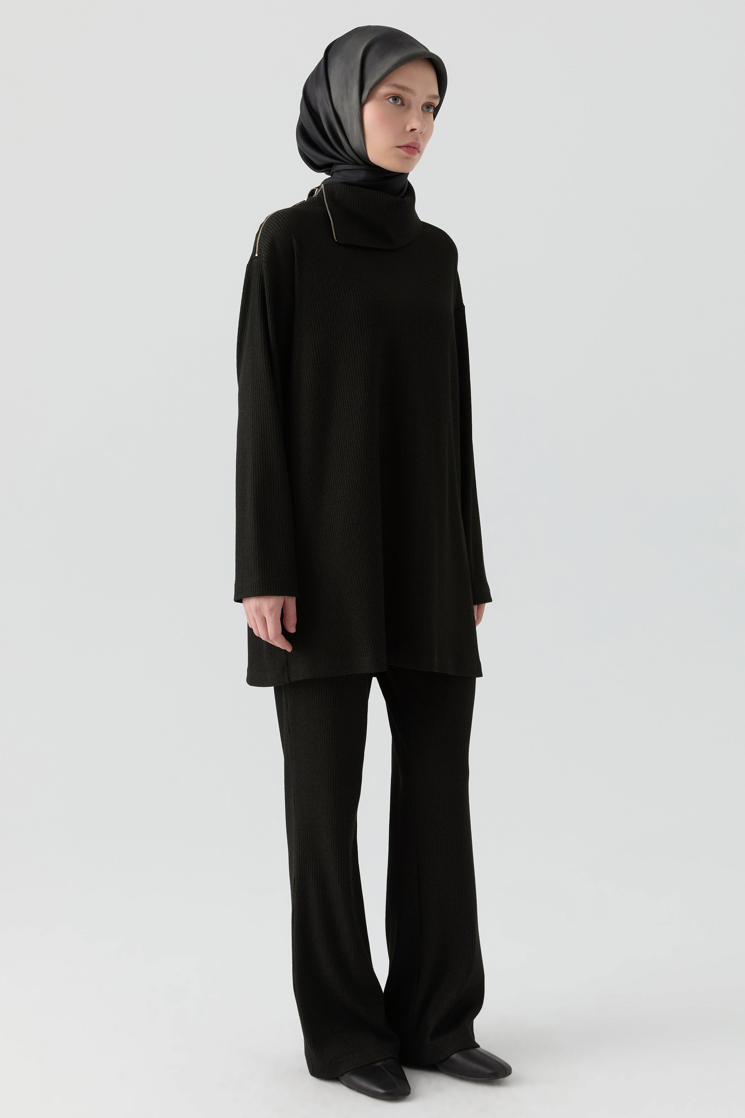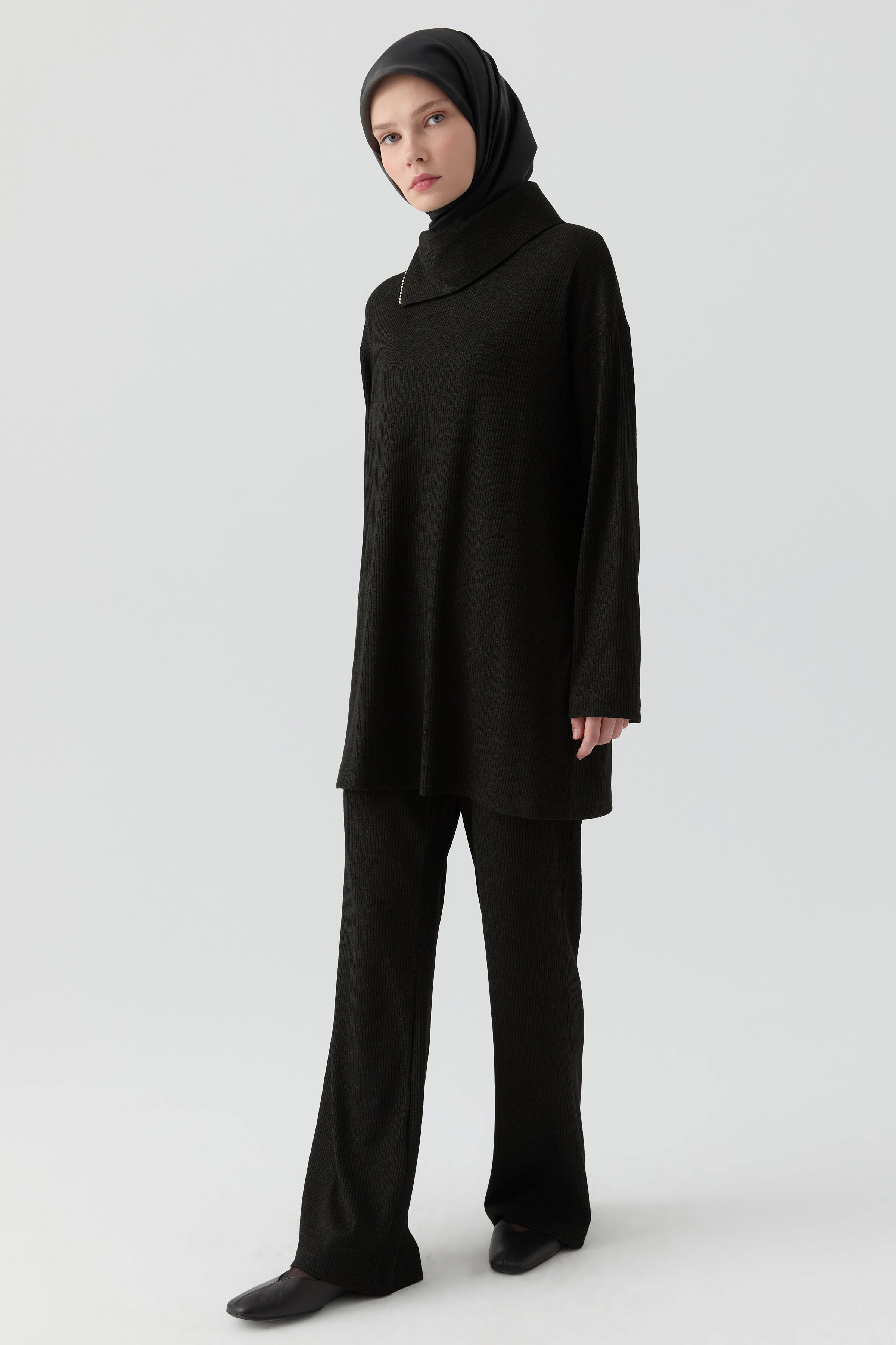 Ensemble tunique pantalon tricoté à col roulé - Noir
