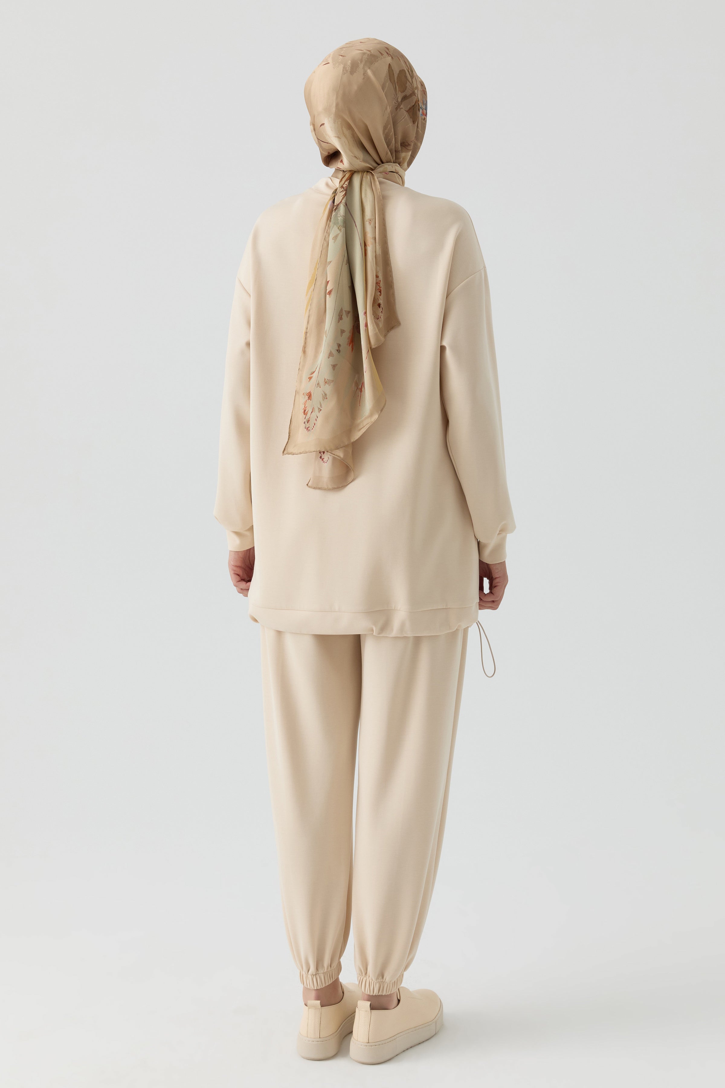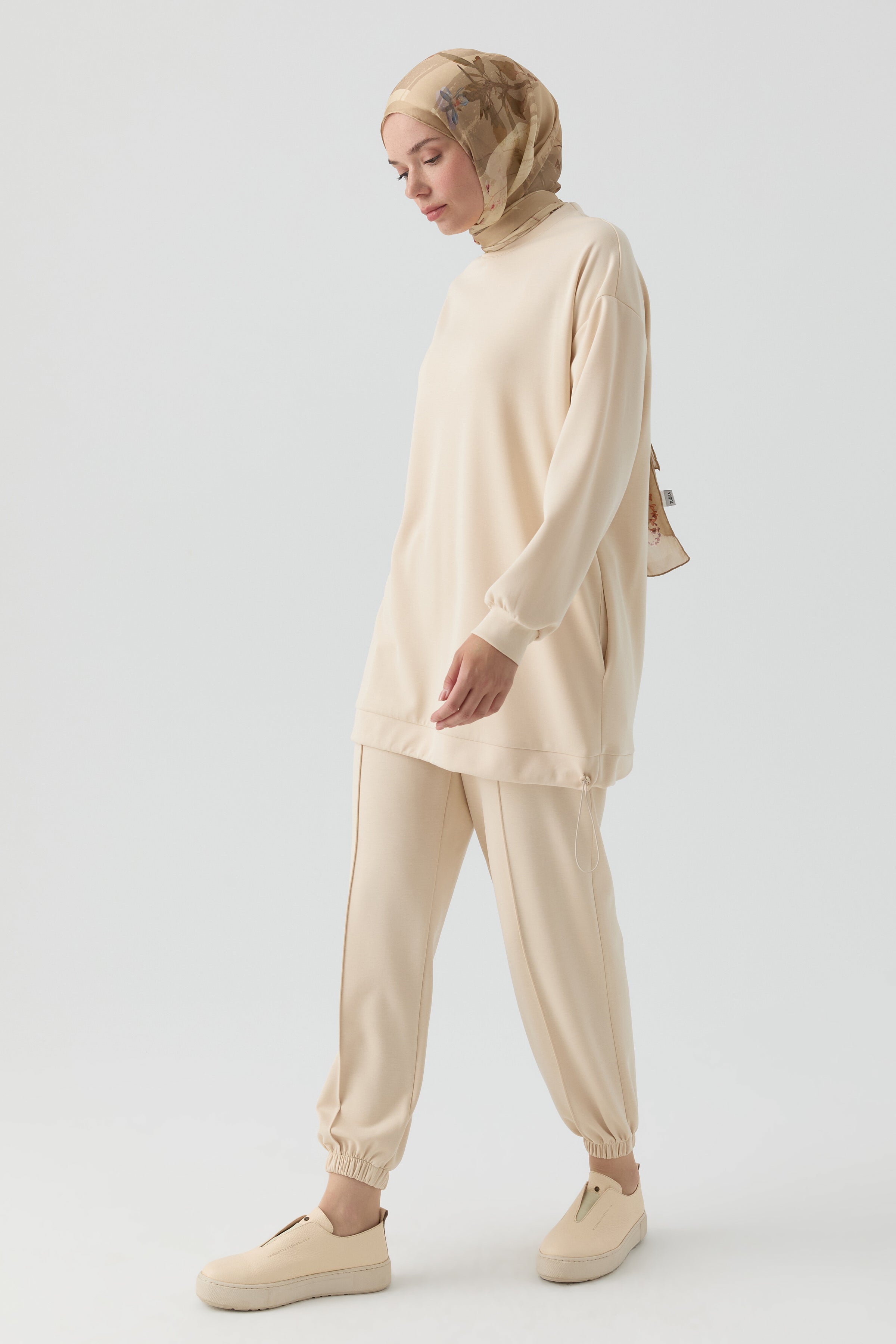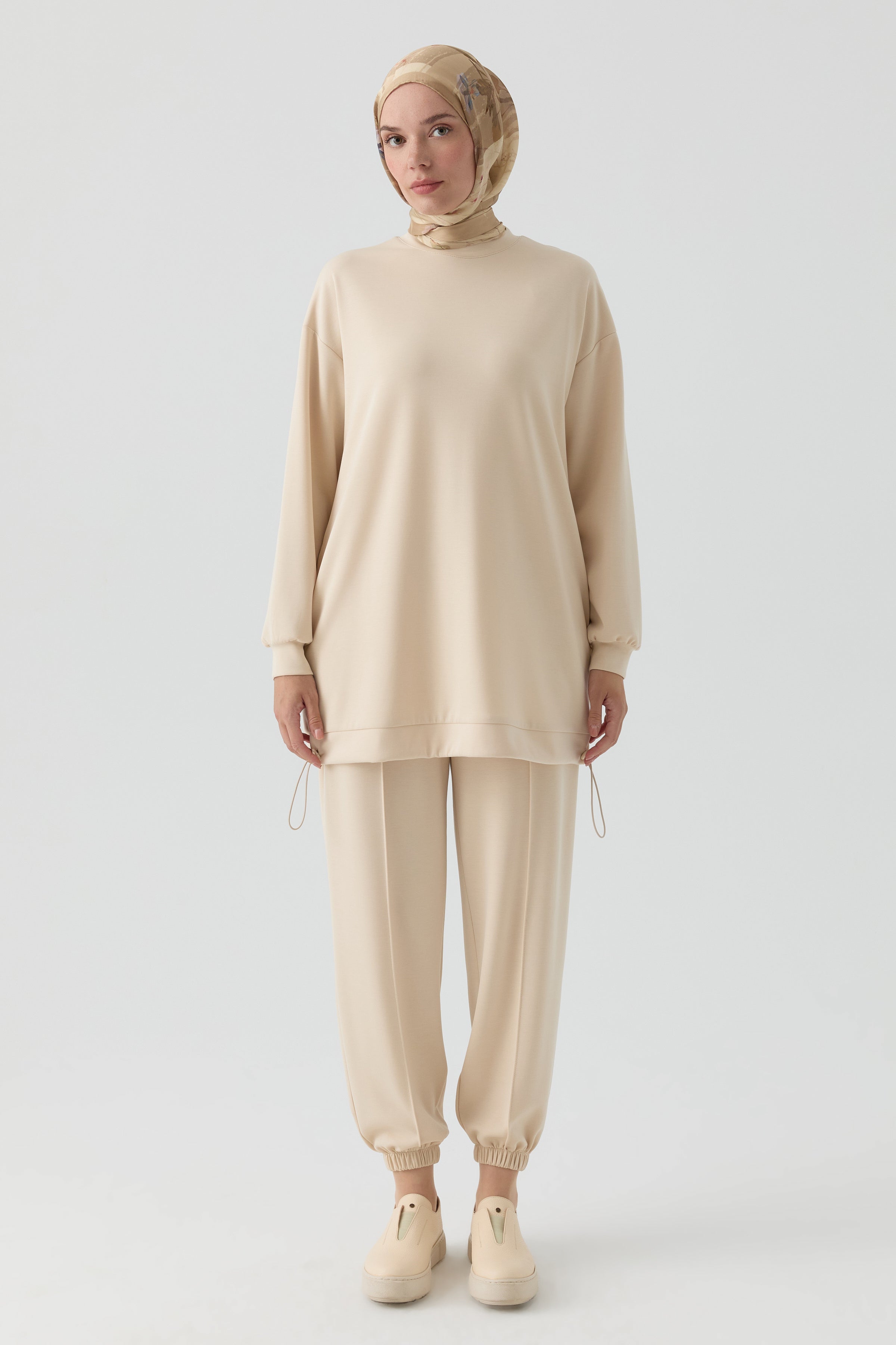 Ensemble tunique pantalon tricoté à col roulé - Beige