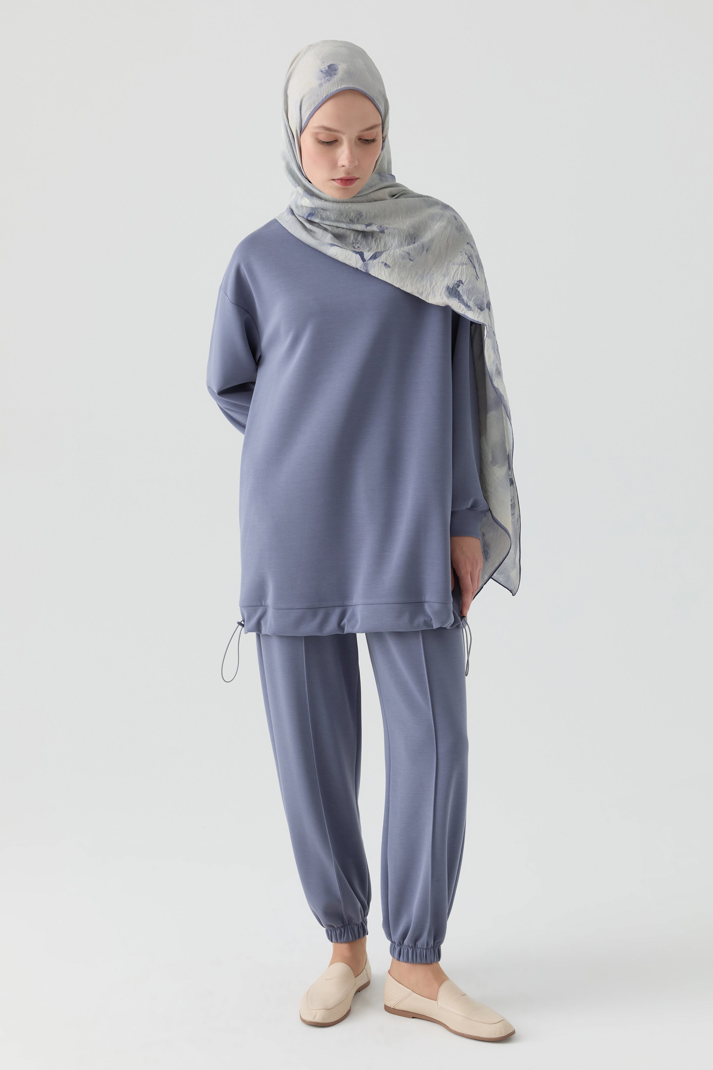 Ensemble tunique pantalon tricoté à col roulé - Indigo