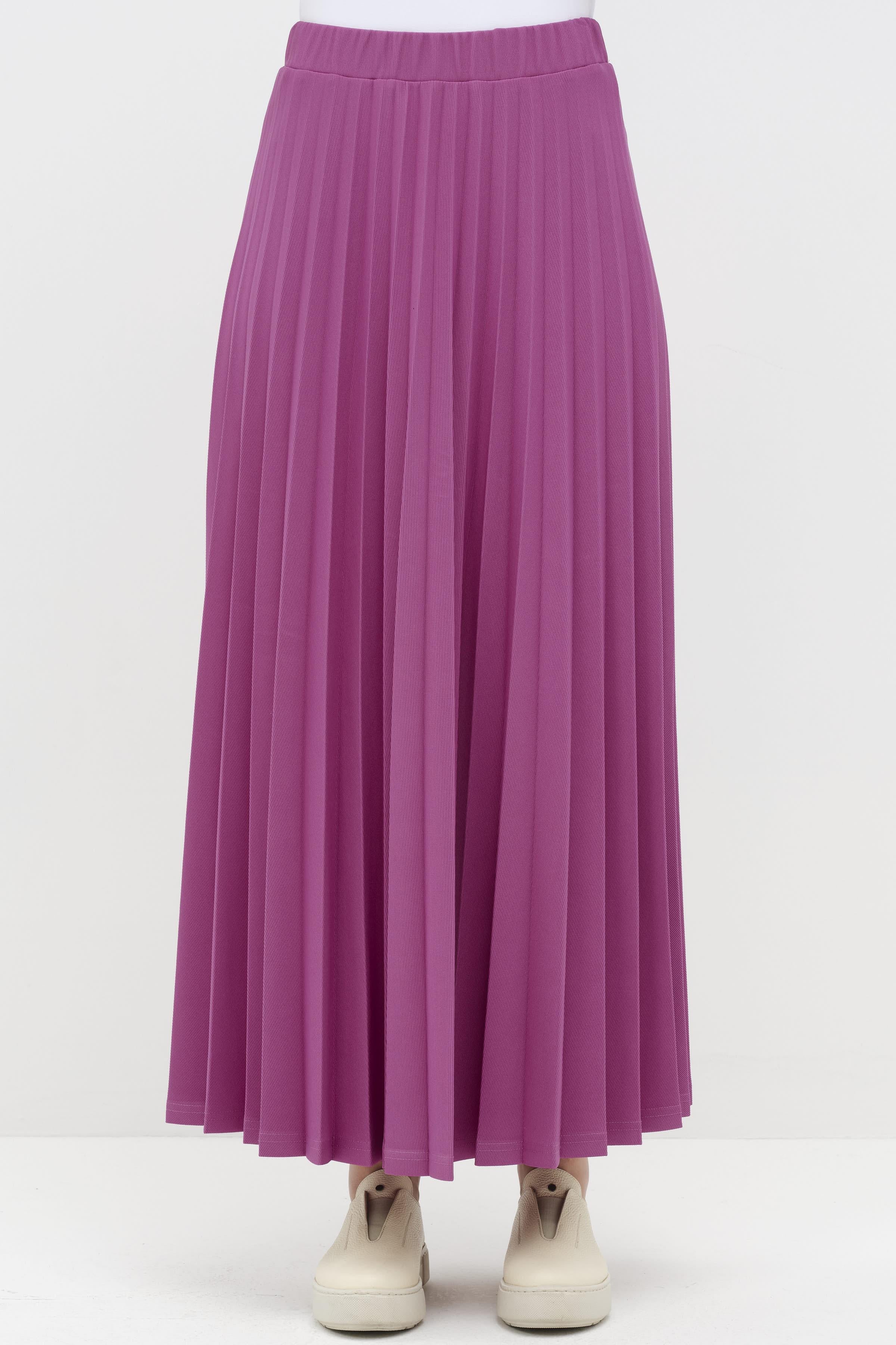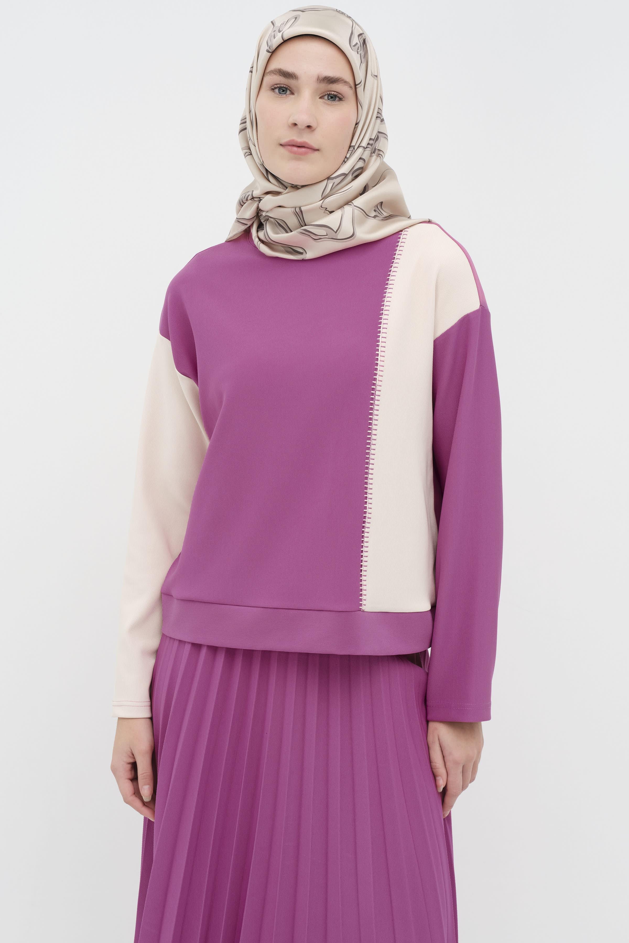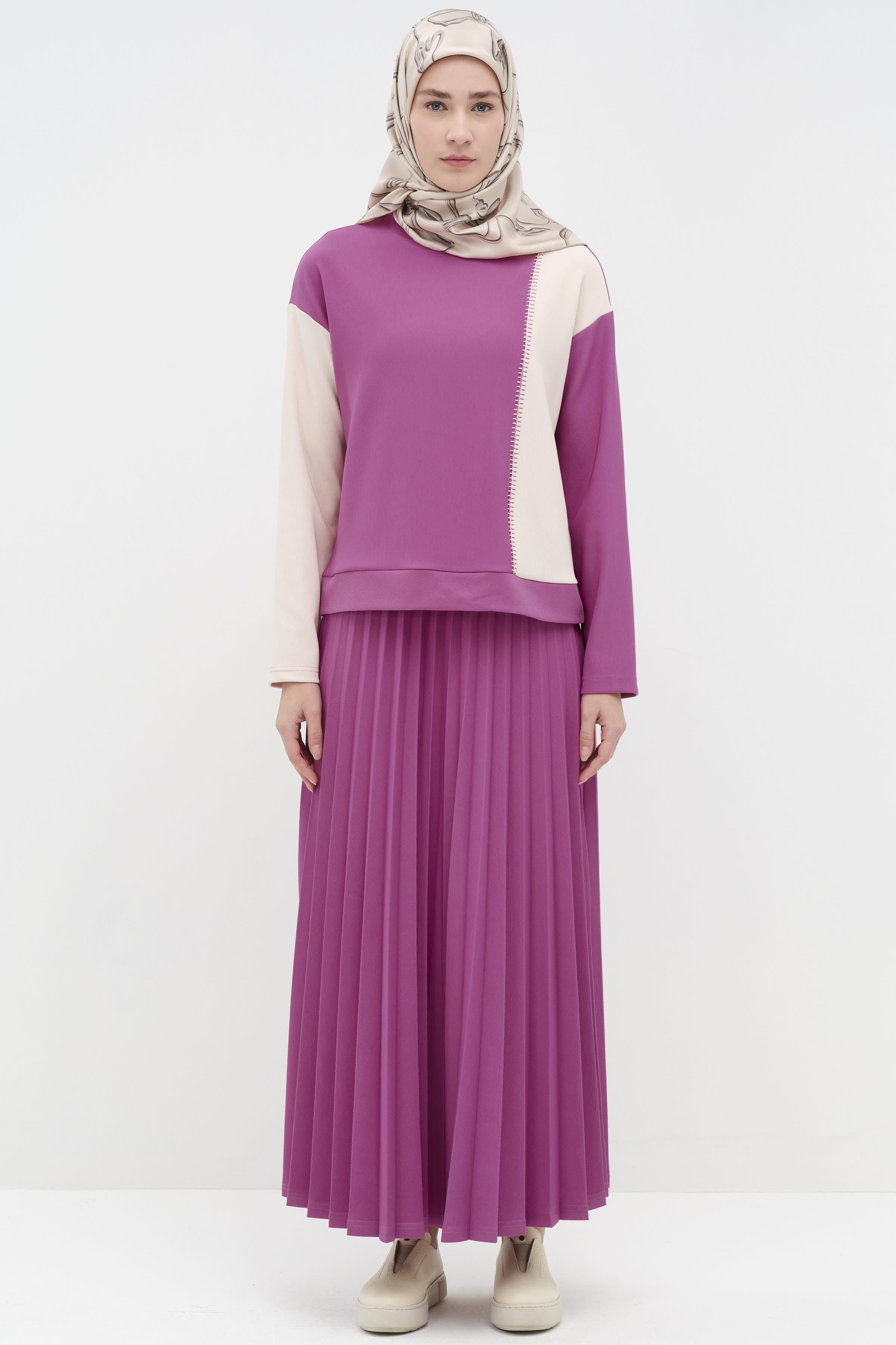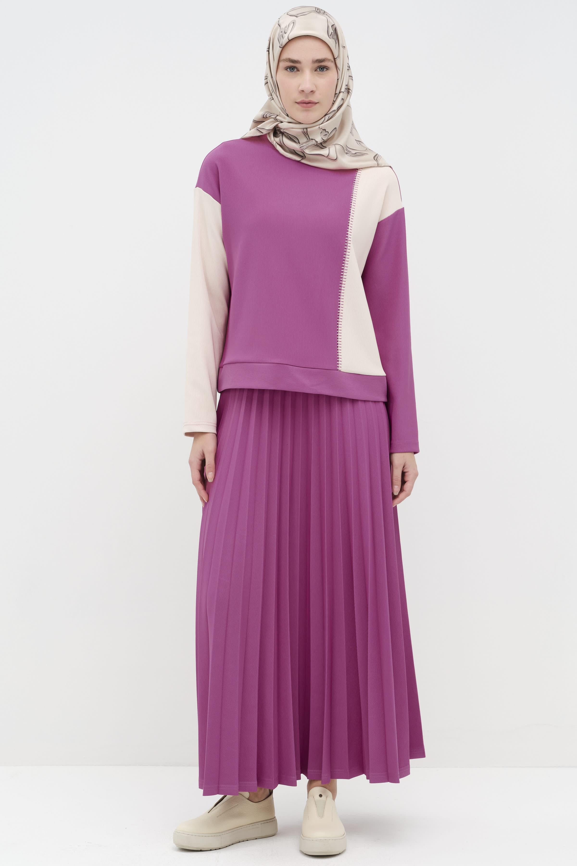 Ensemble en tricot avec jupe et blouse à broderies et garnitures - Fuchsia