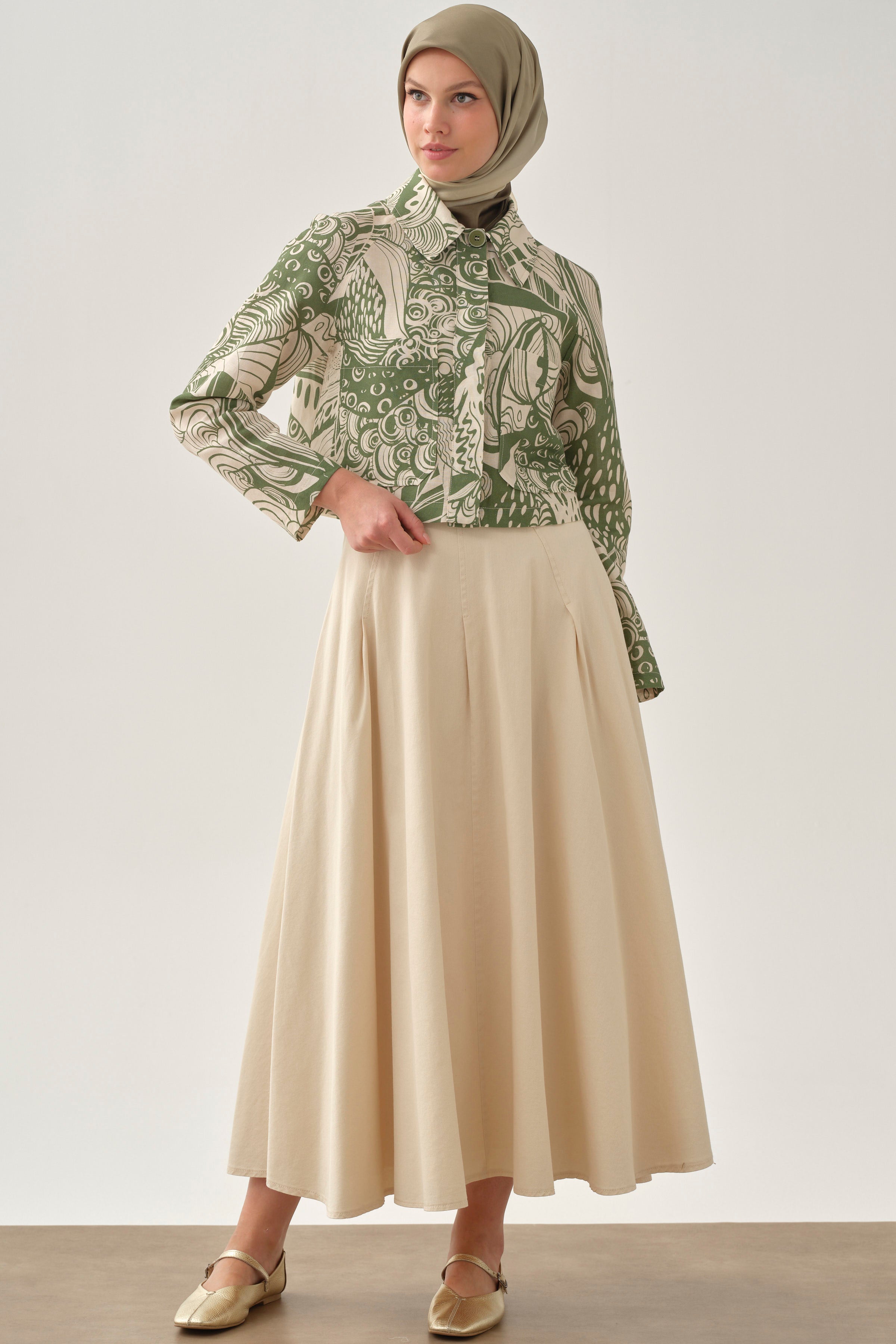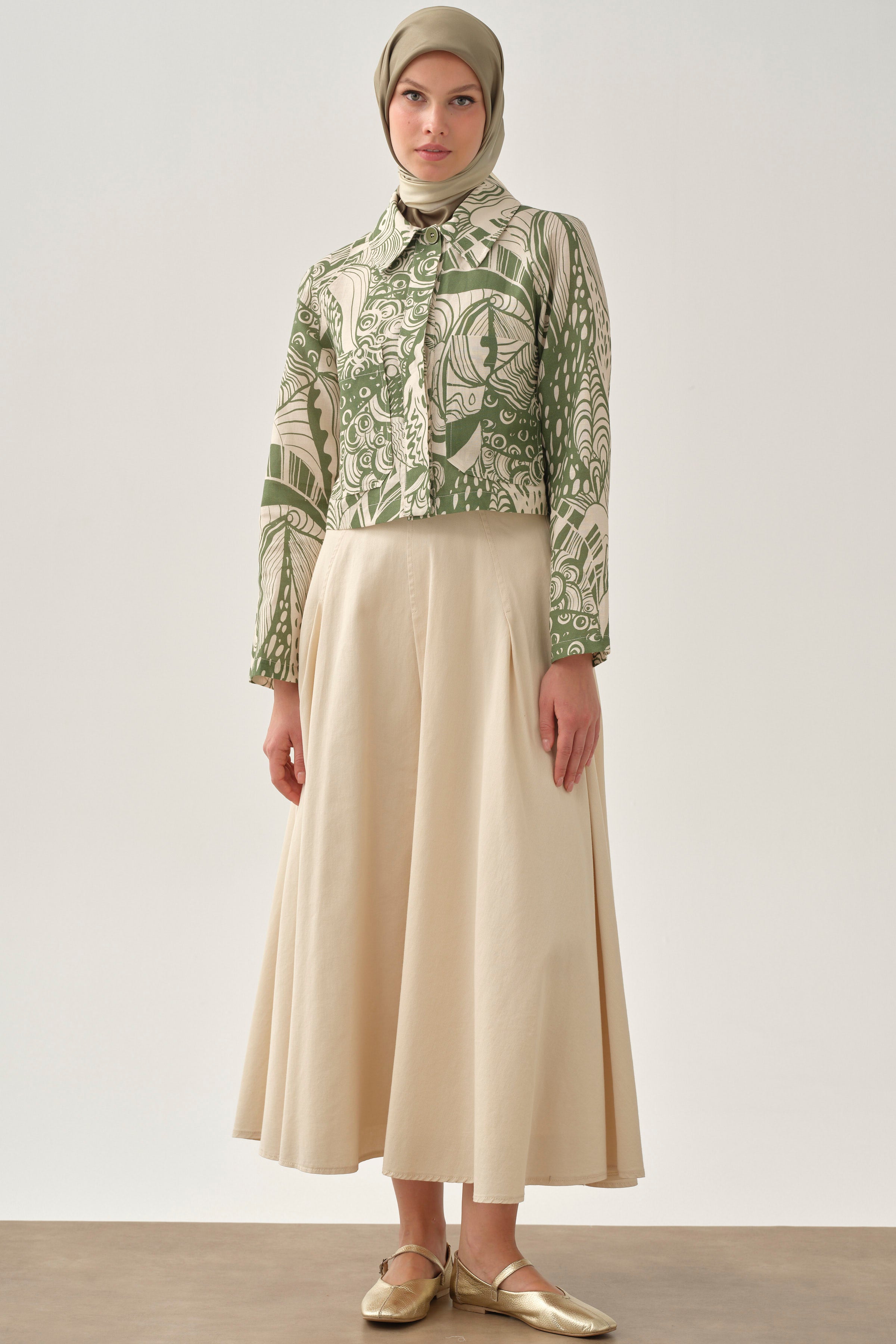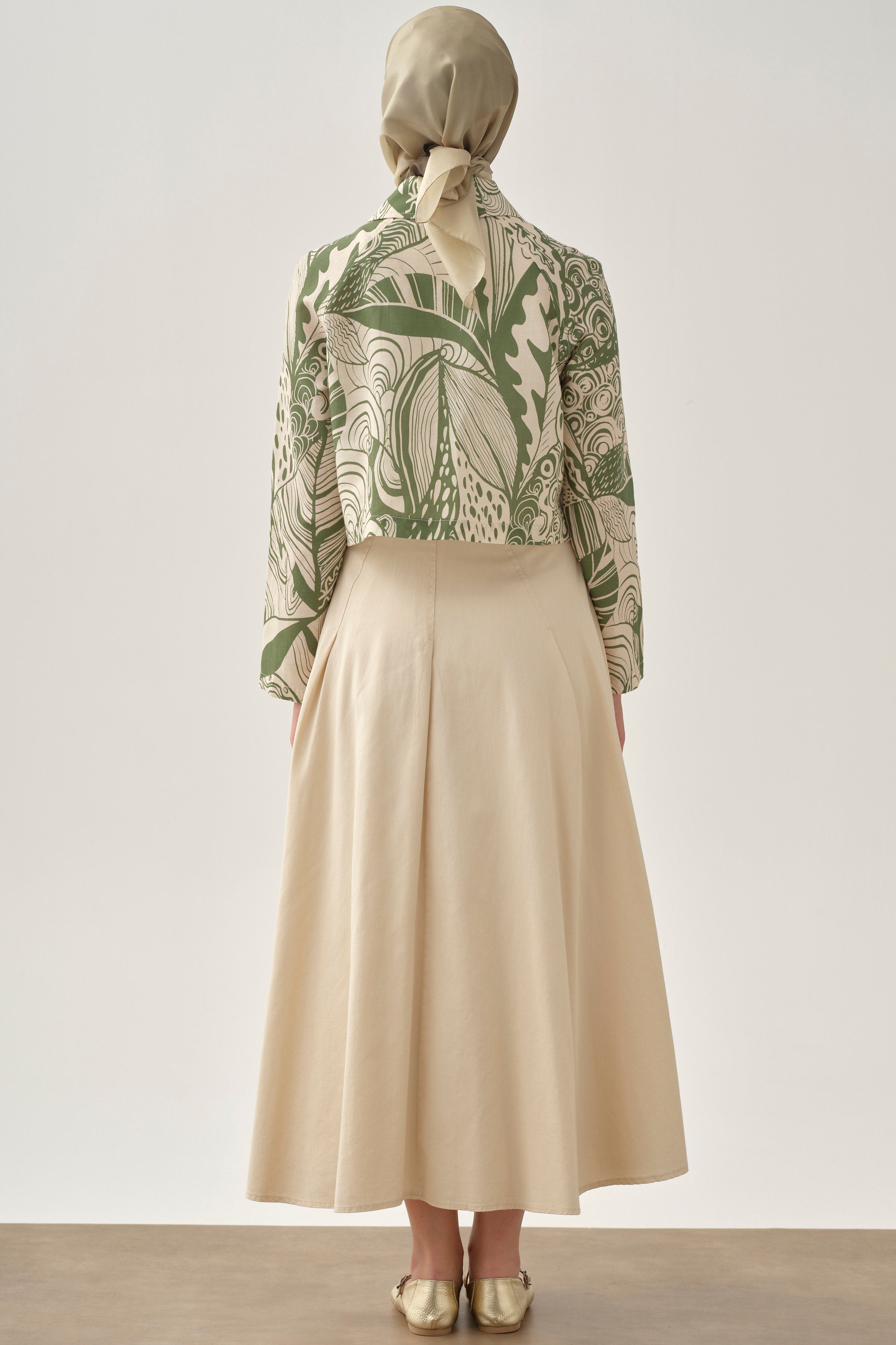 Ensemble jupe à plis fins avec veste crop - Kaki
