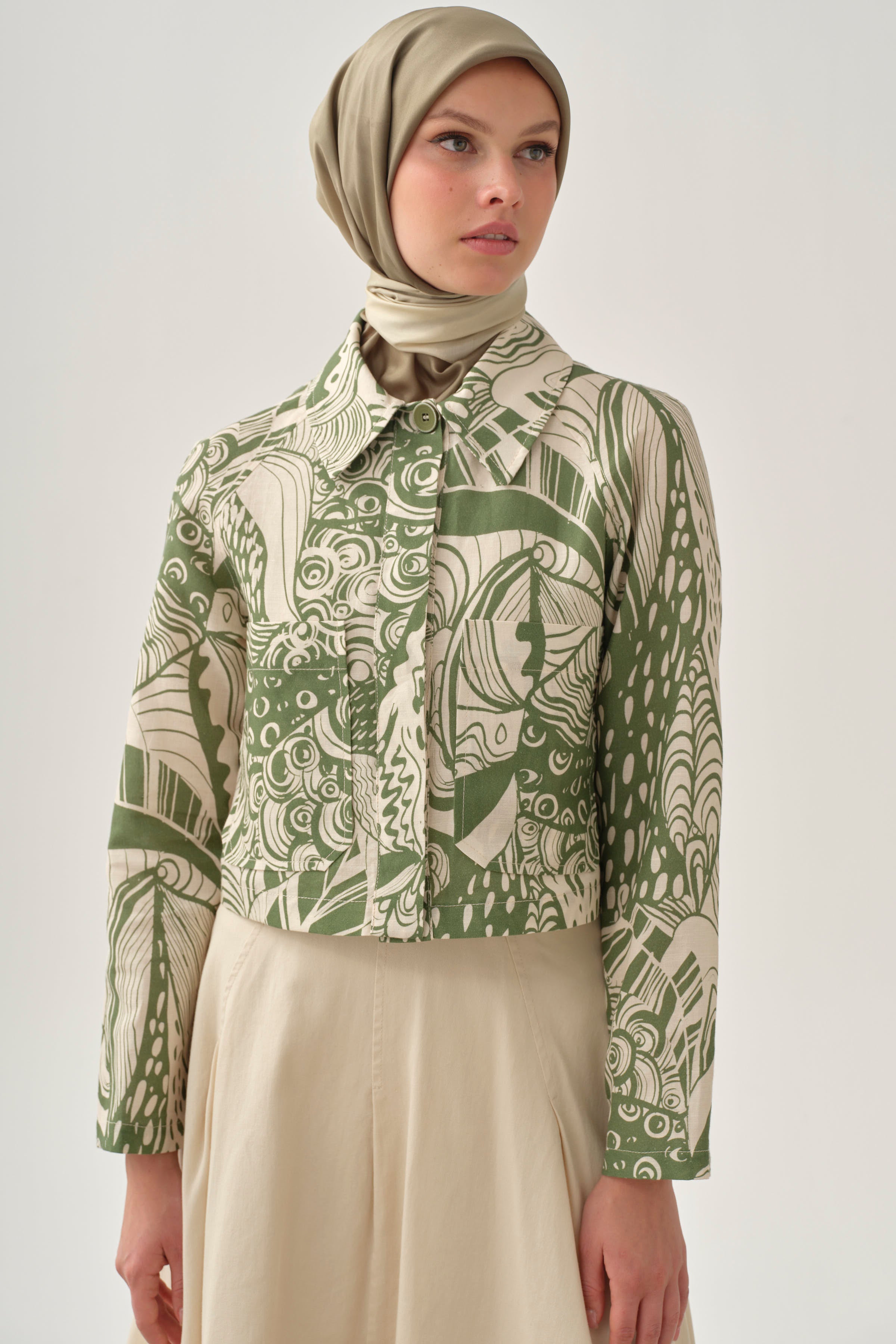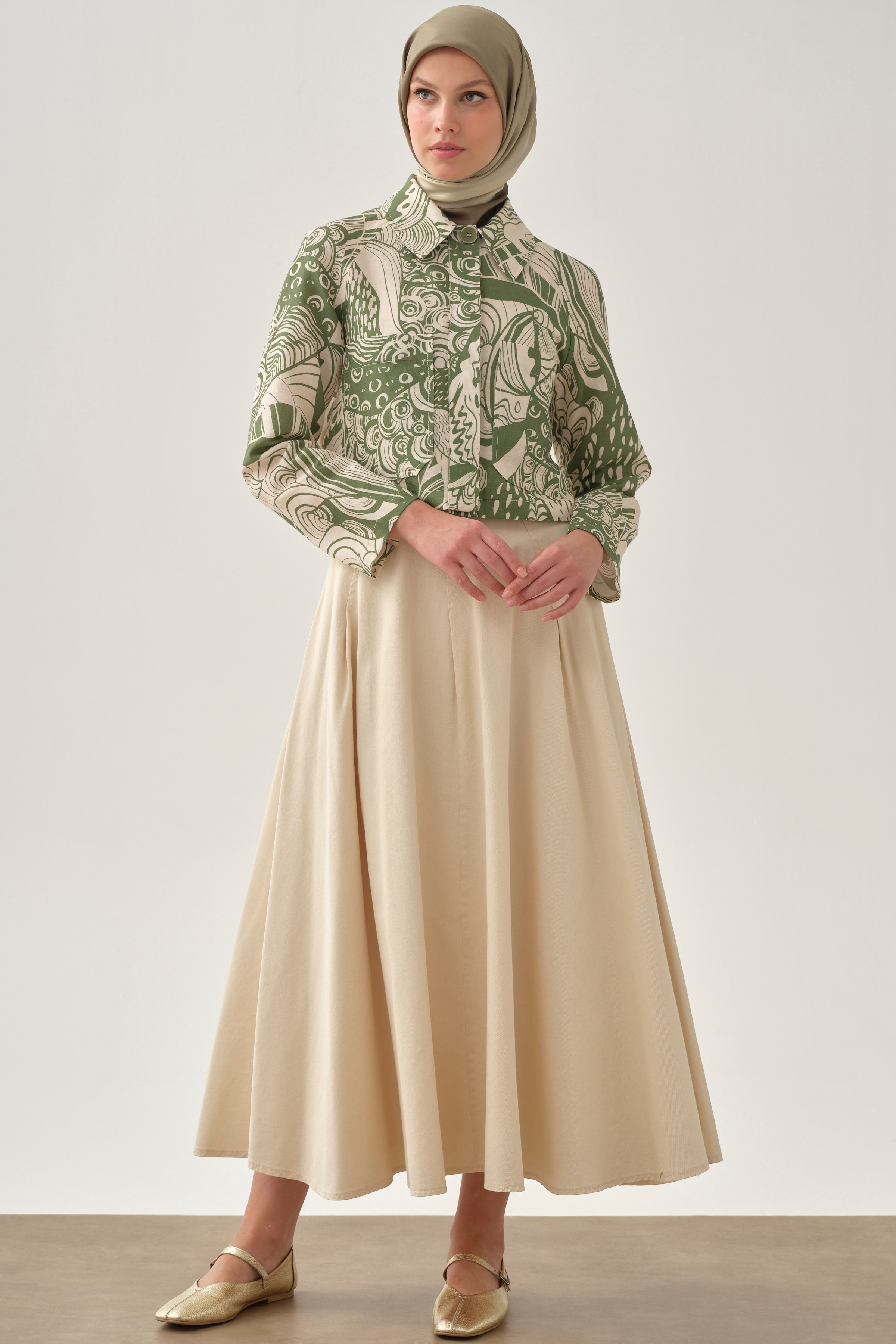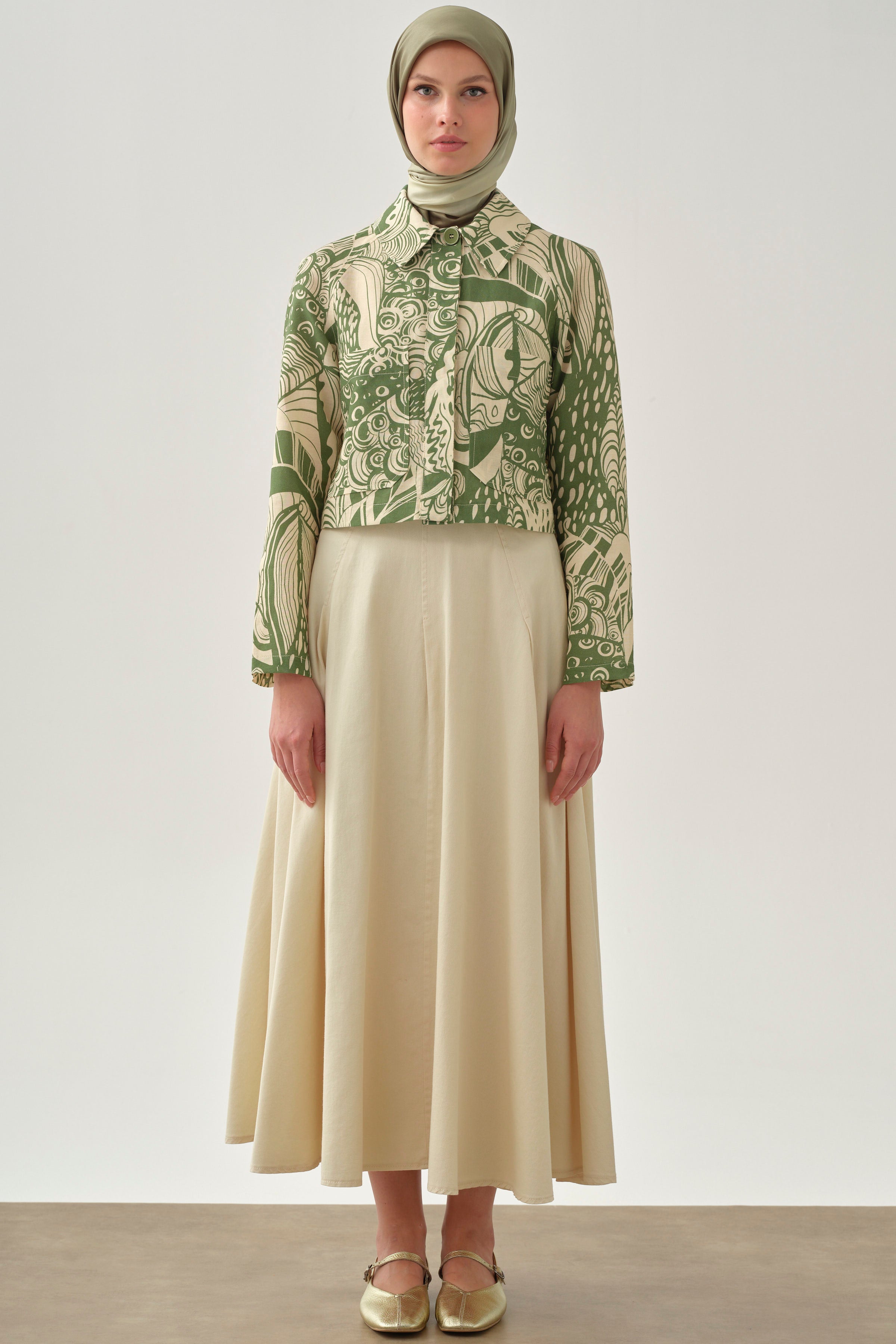 Ensemble jupe à plis fins avec veste crop - Kaki