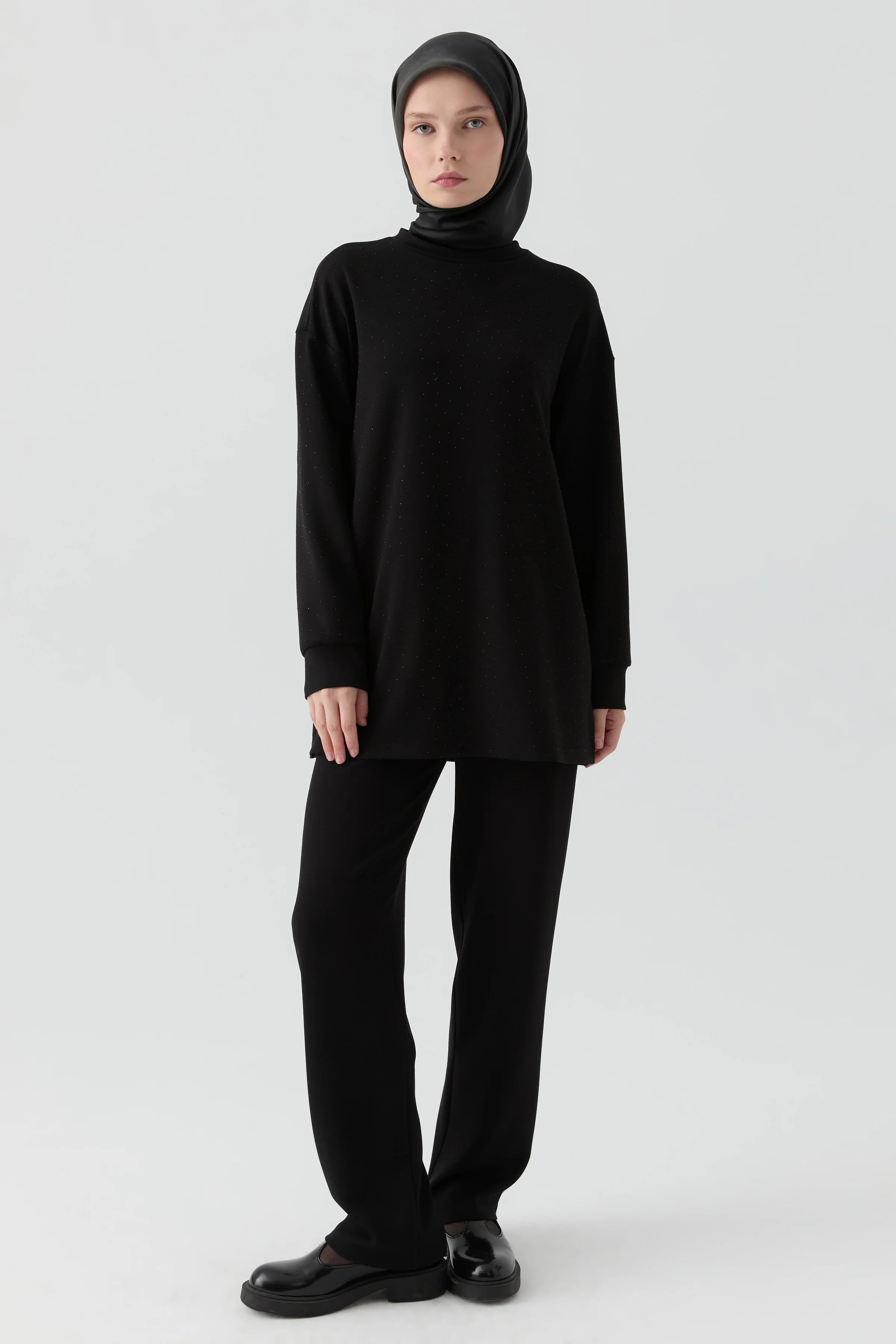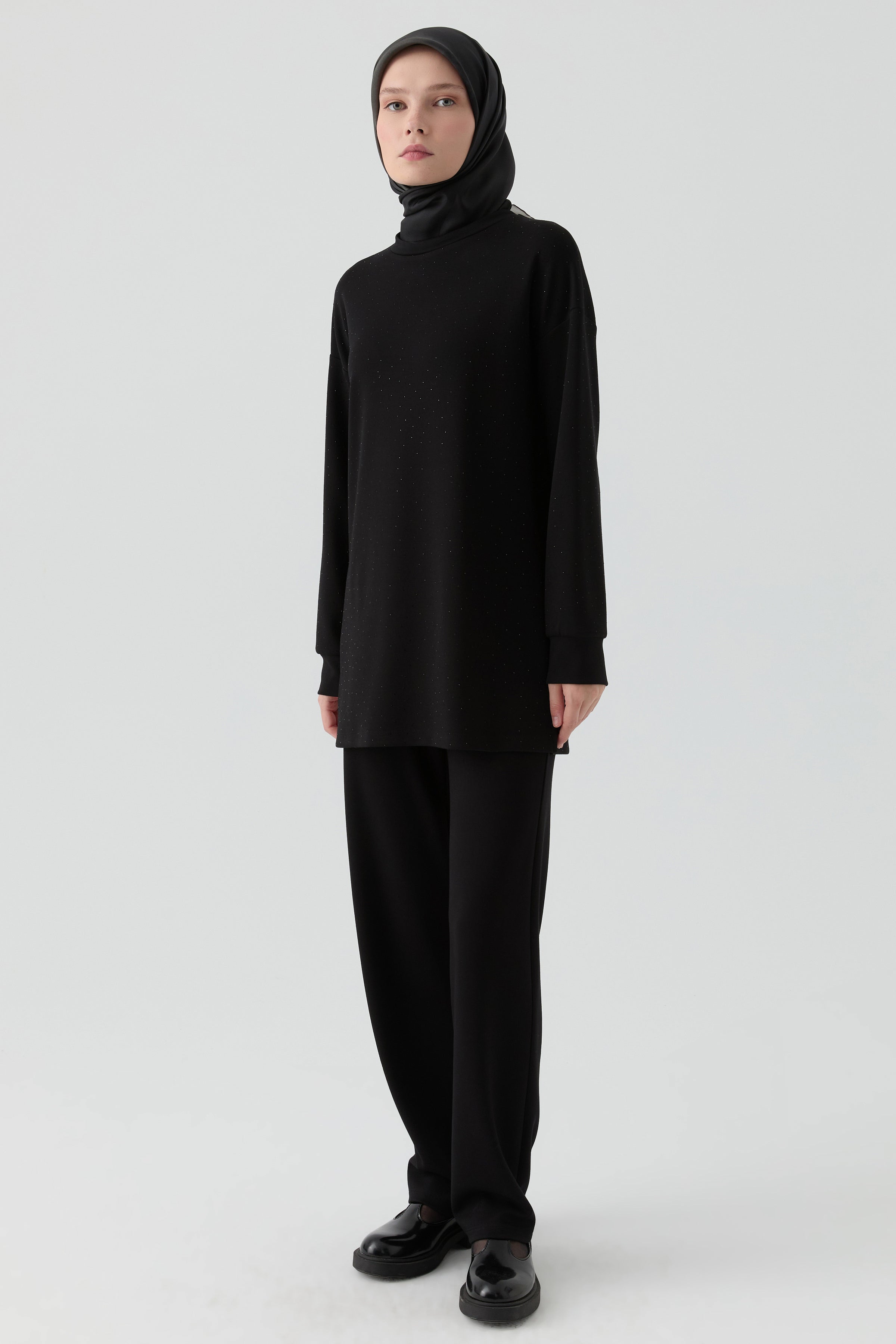 Ensemble tunique avec détail pierres scintillantes - Noir
