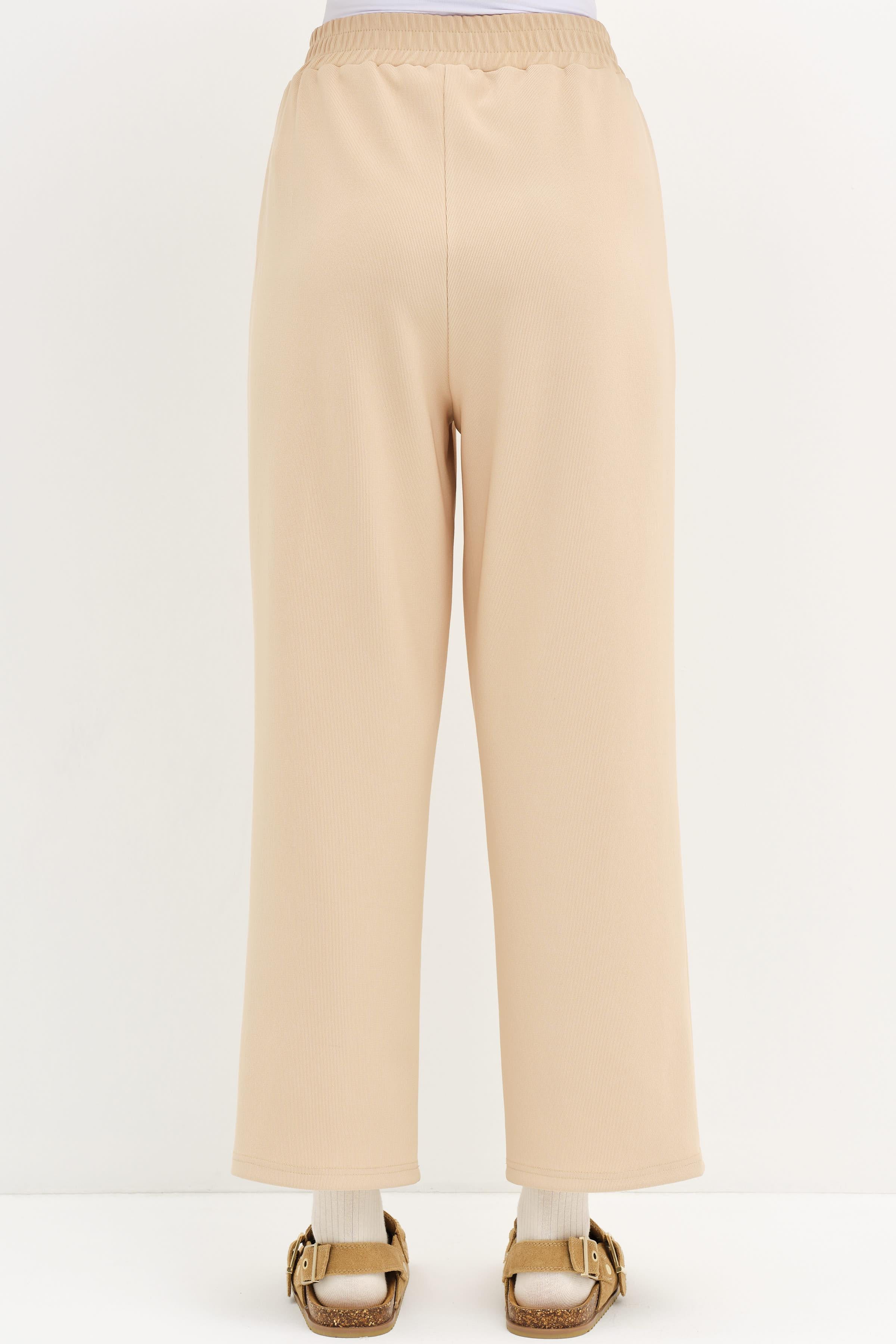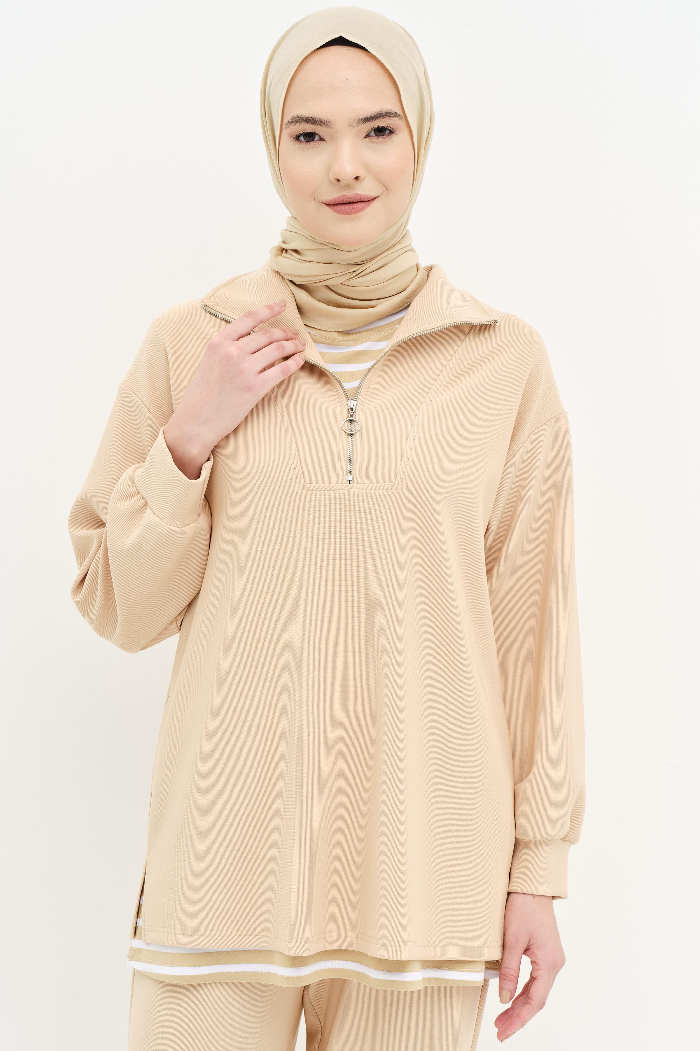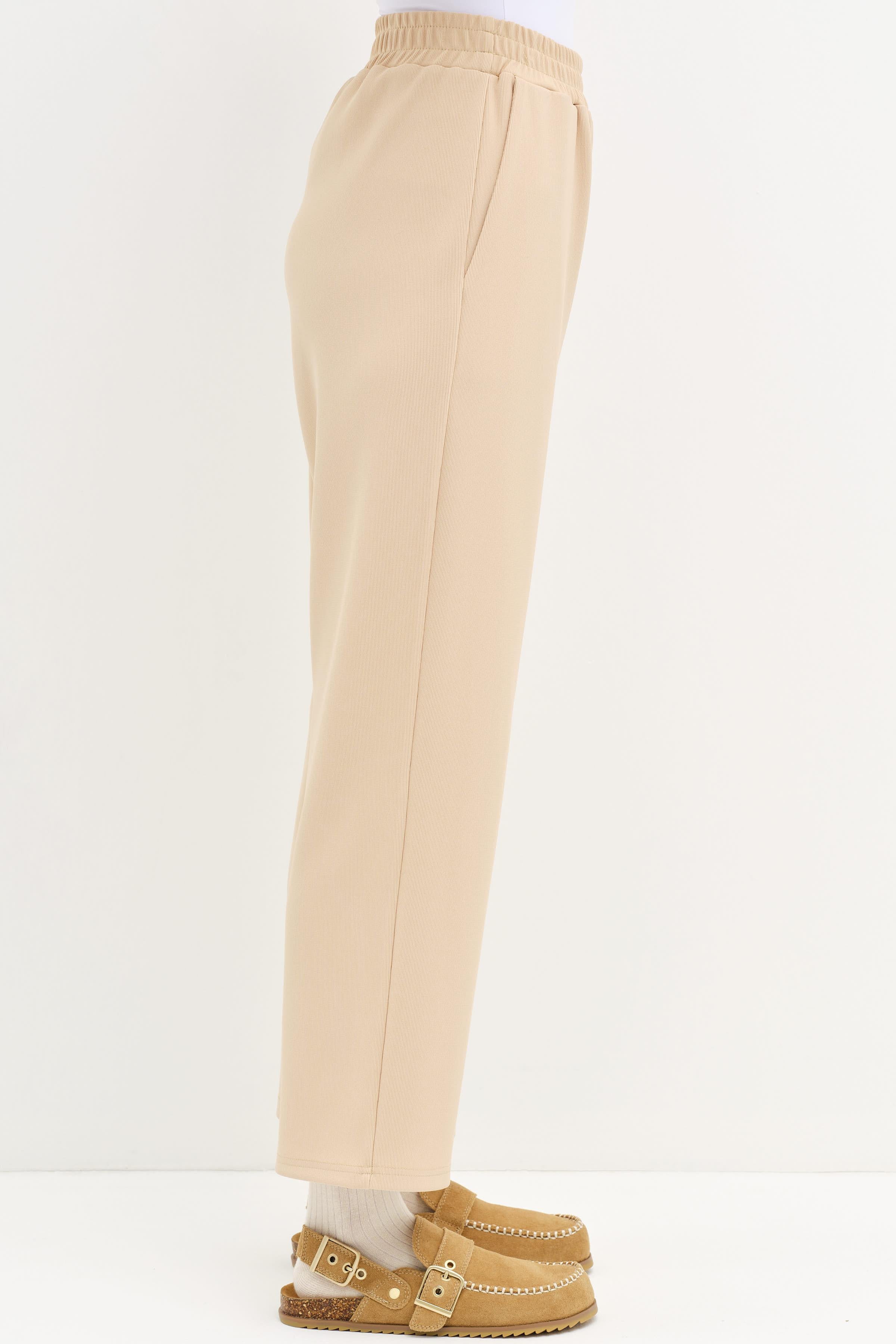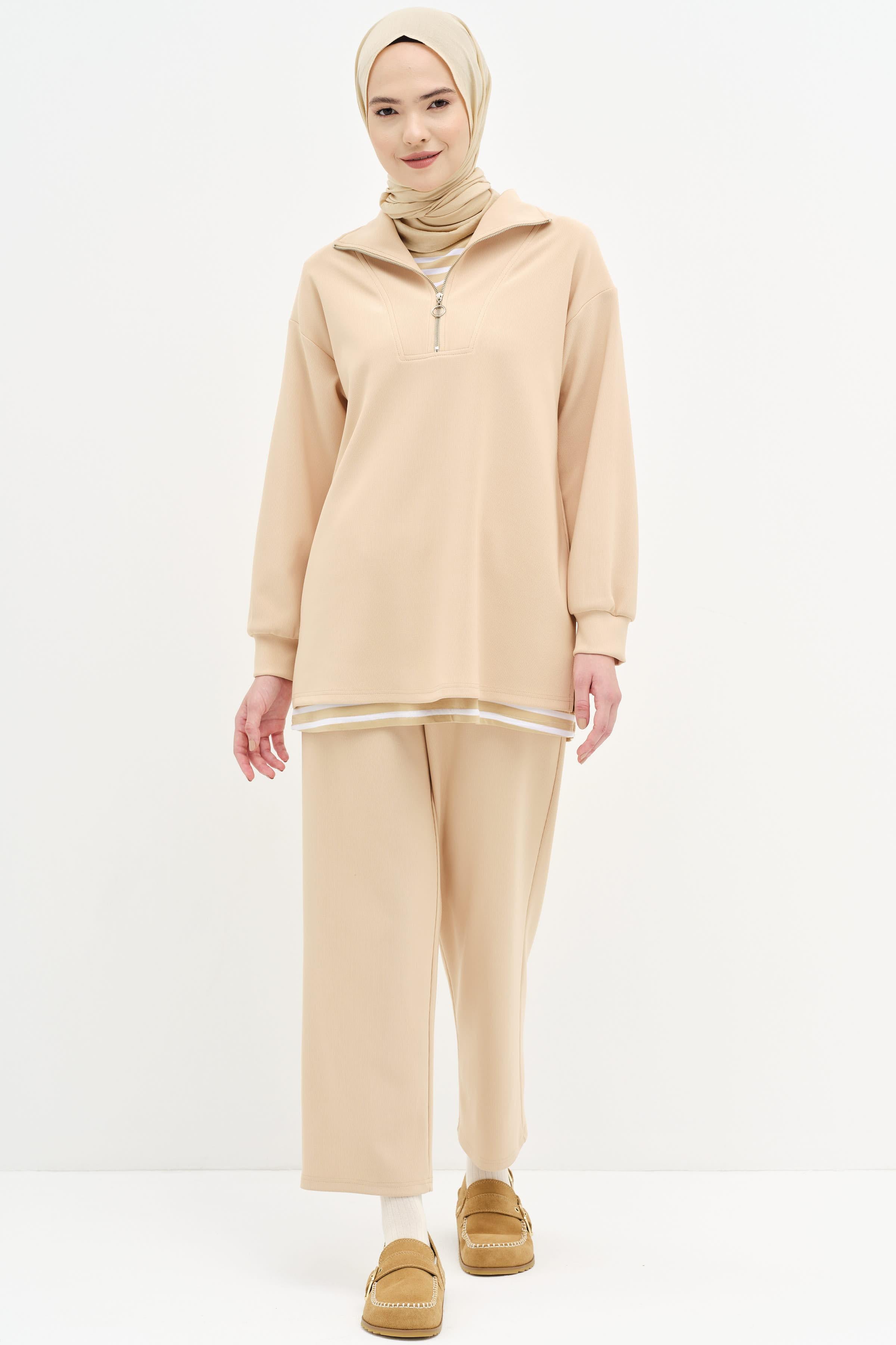 Ensemble tunique pantalon tricoté à col roulé - Beige