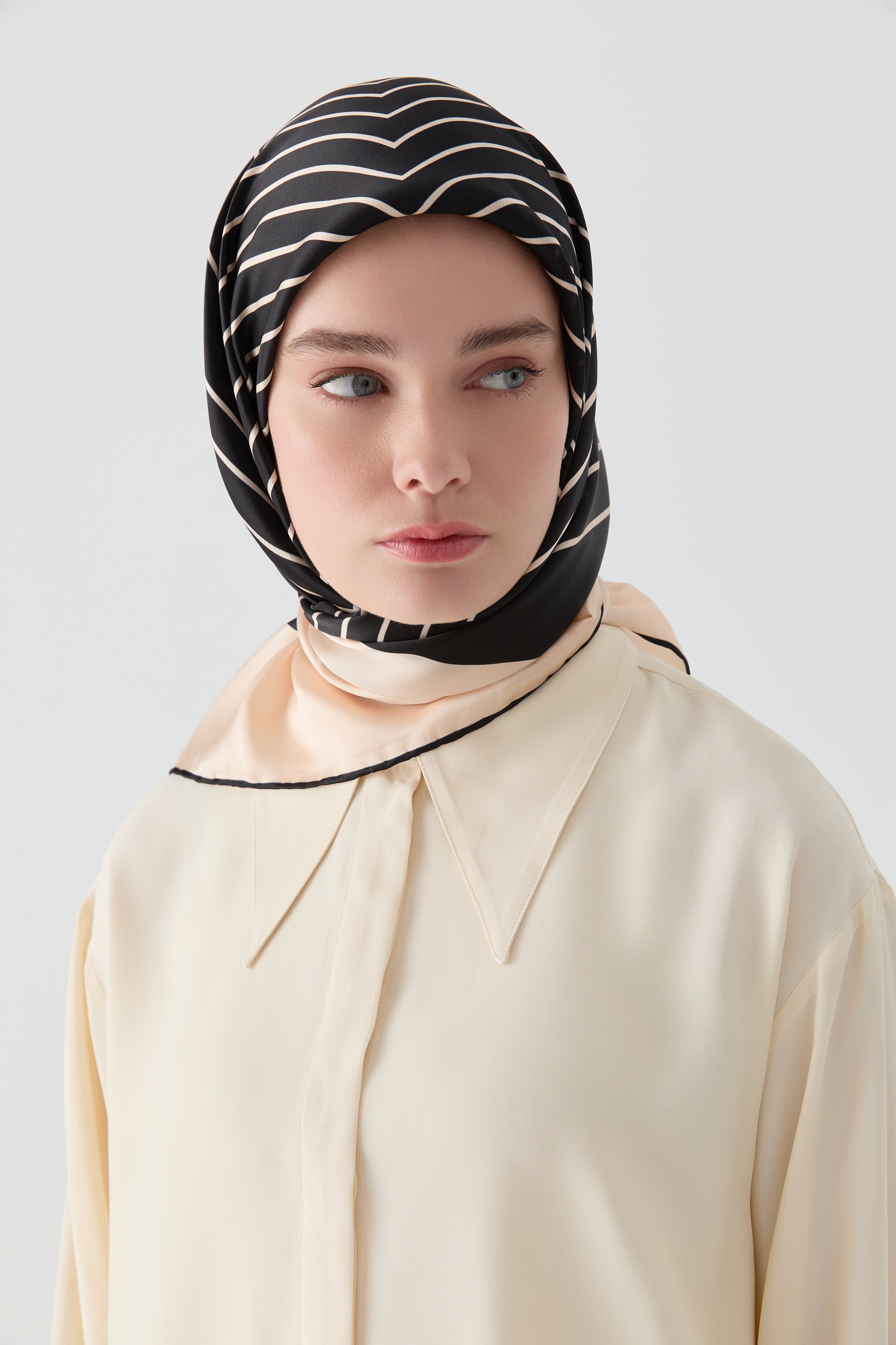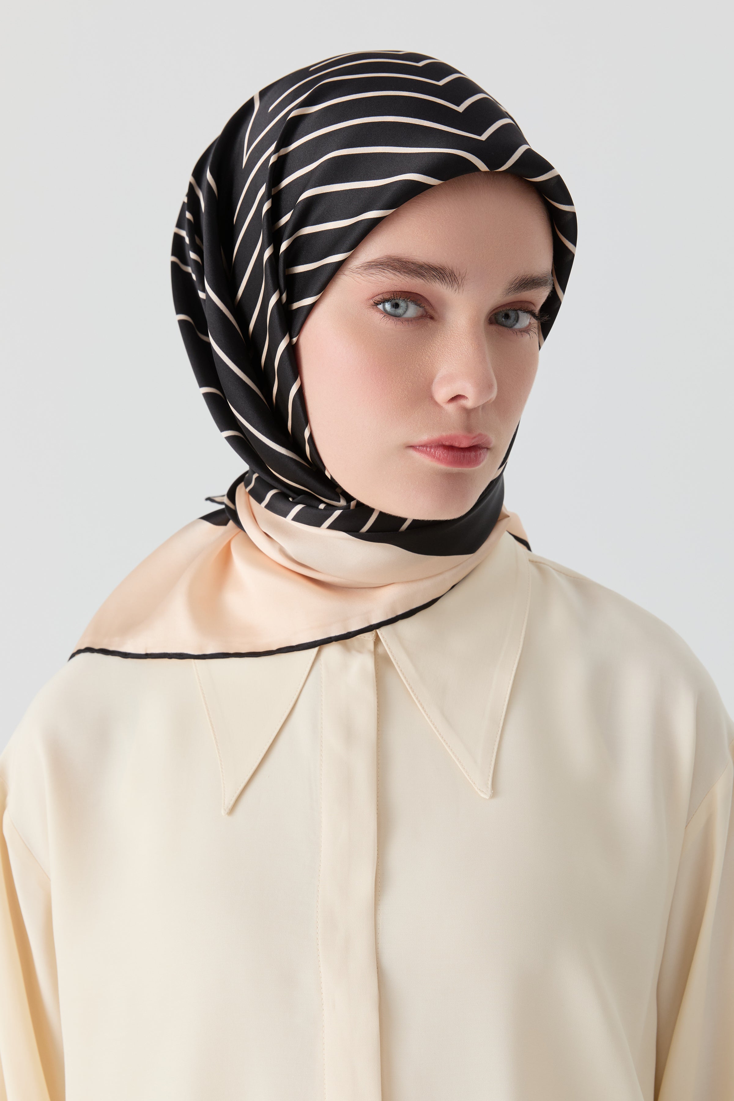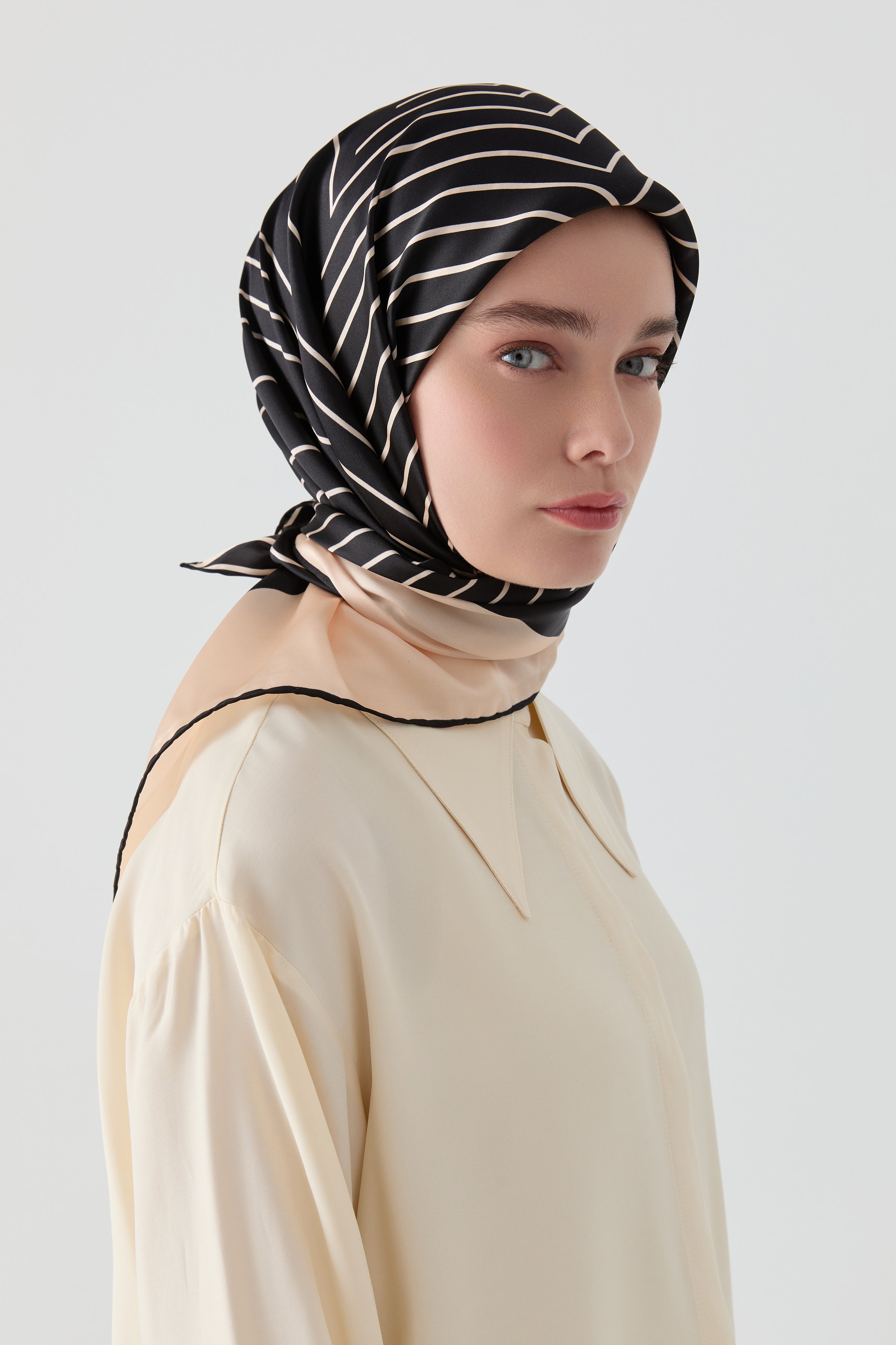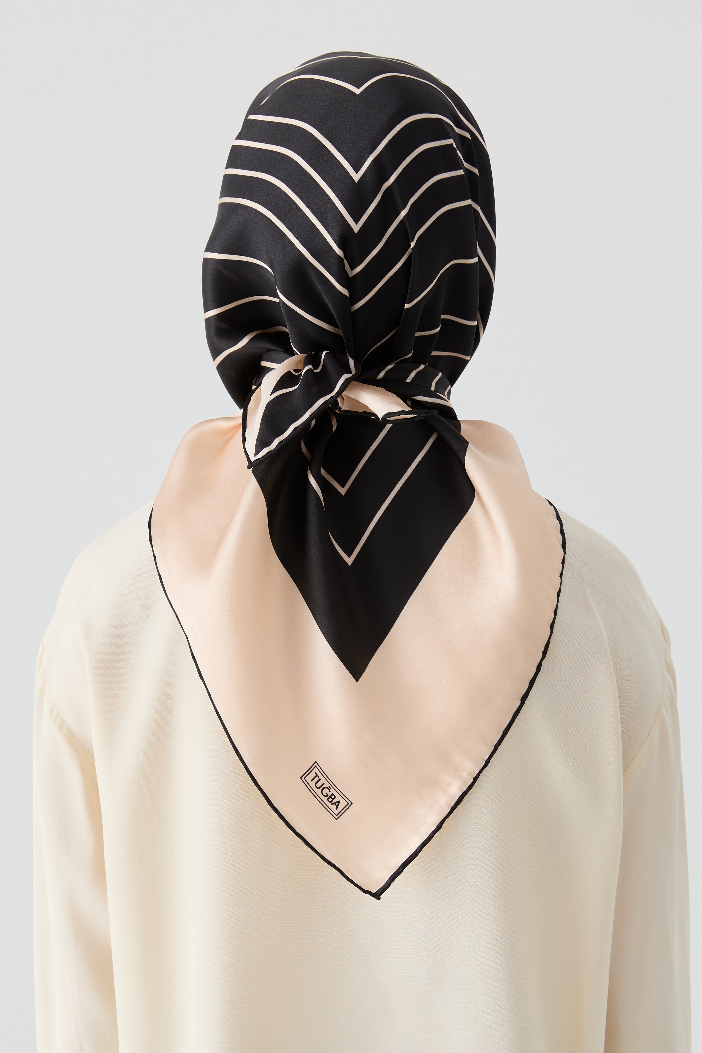 Écharpe en soie twill Nilda - Beige - Noir
