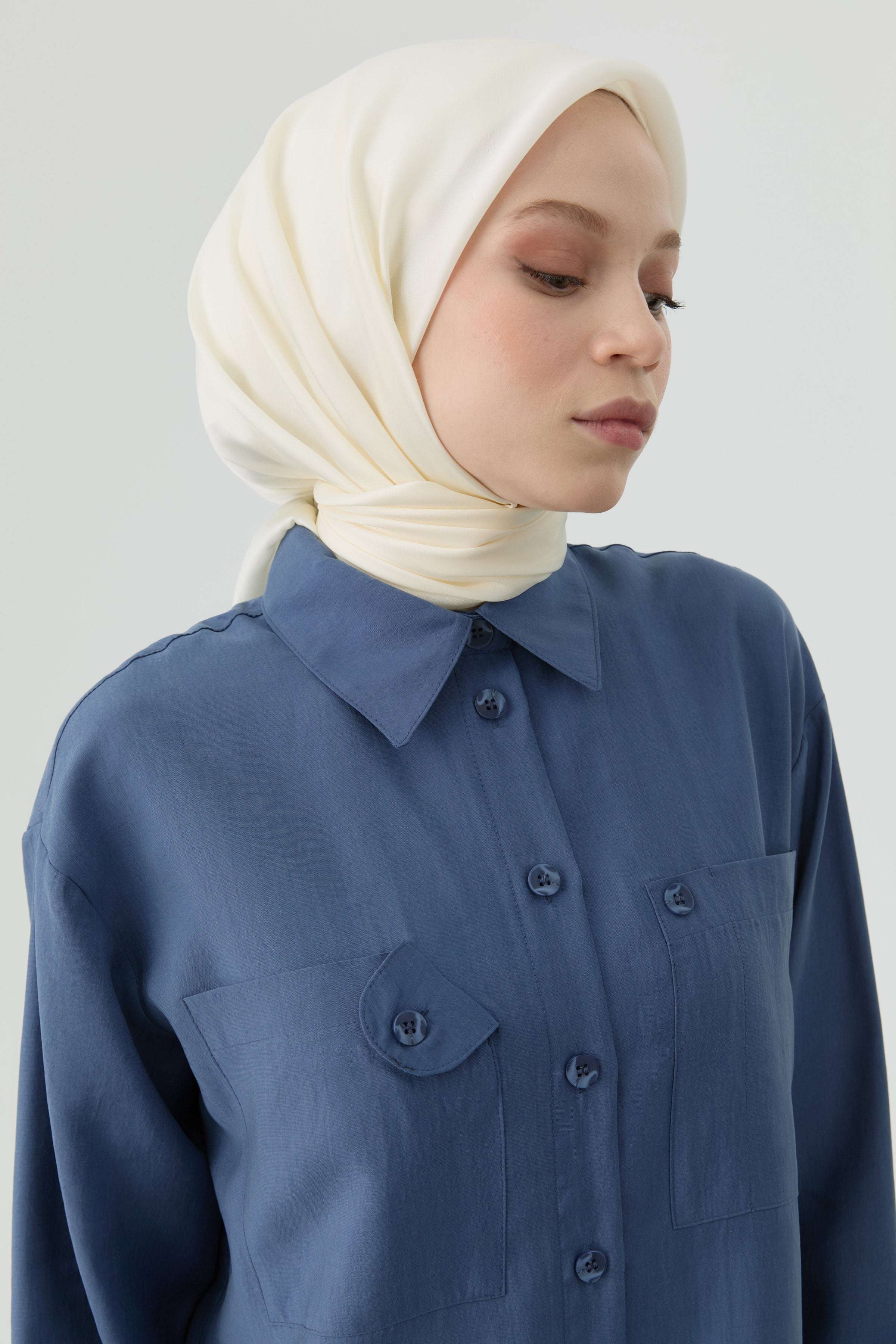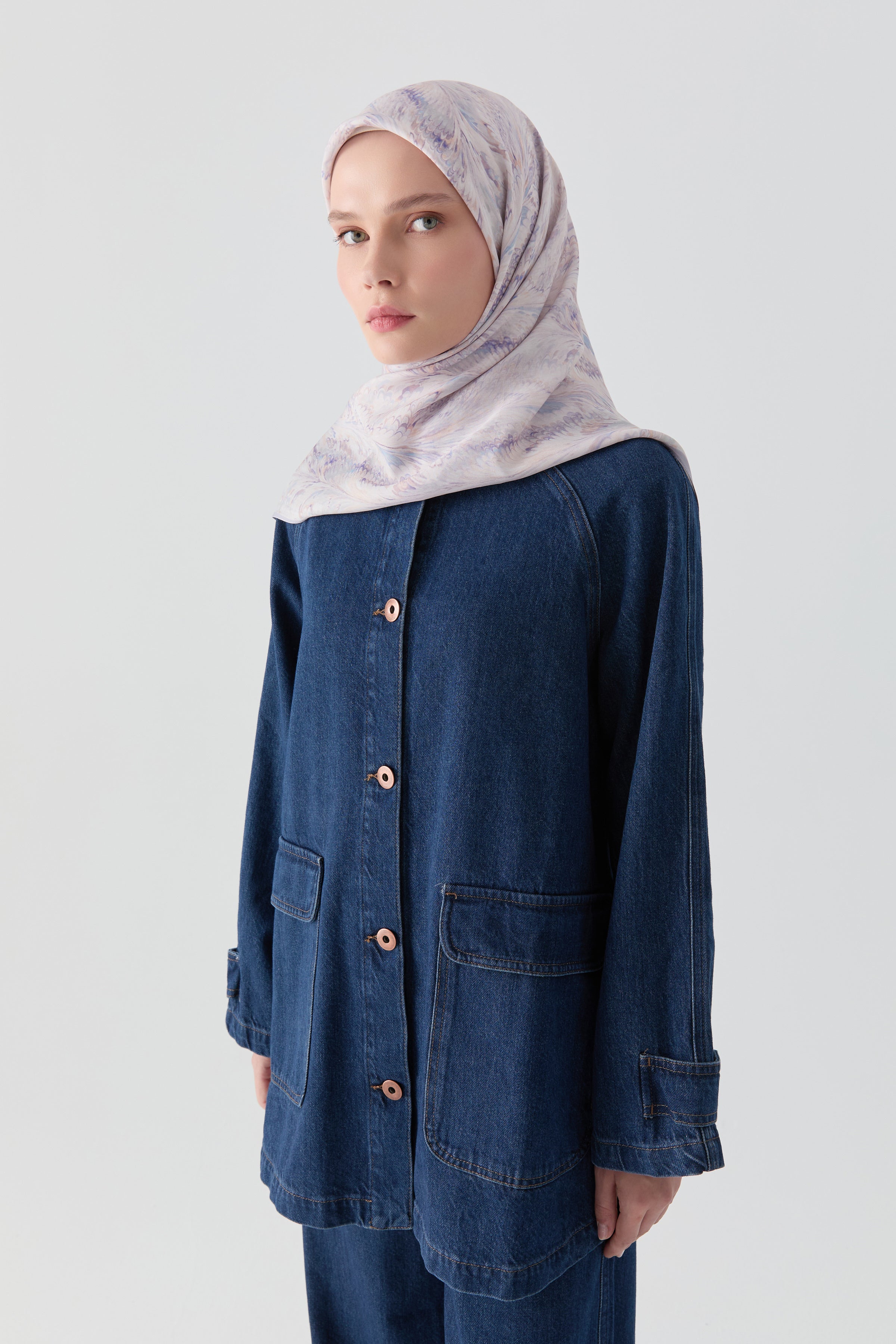 Écharpe en soie twill Didar - Bleu