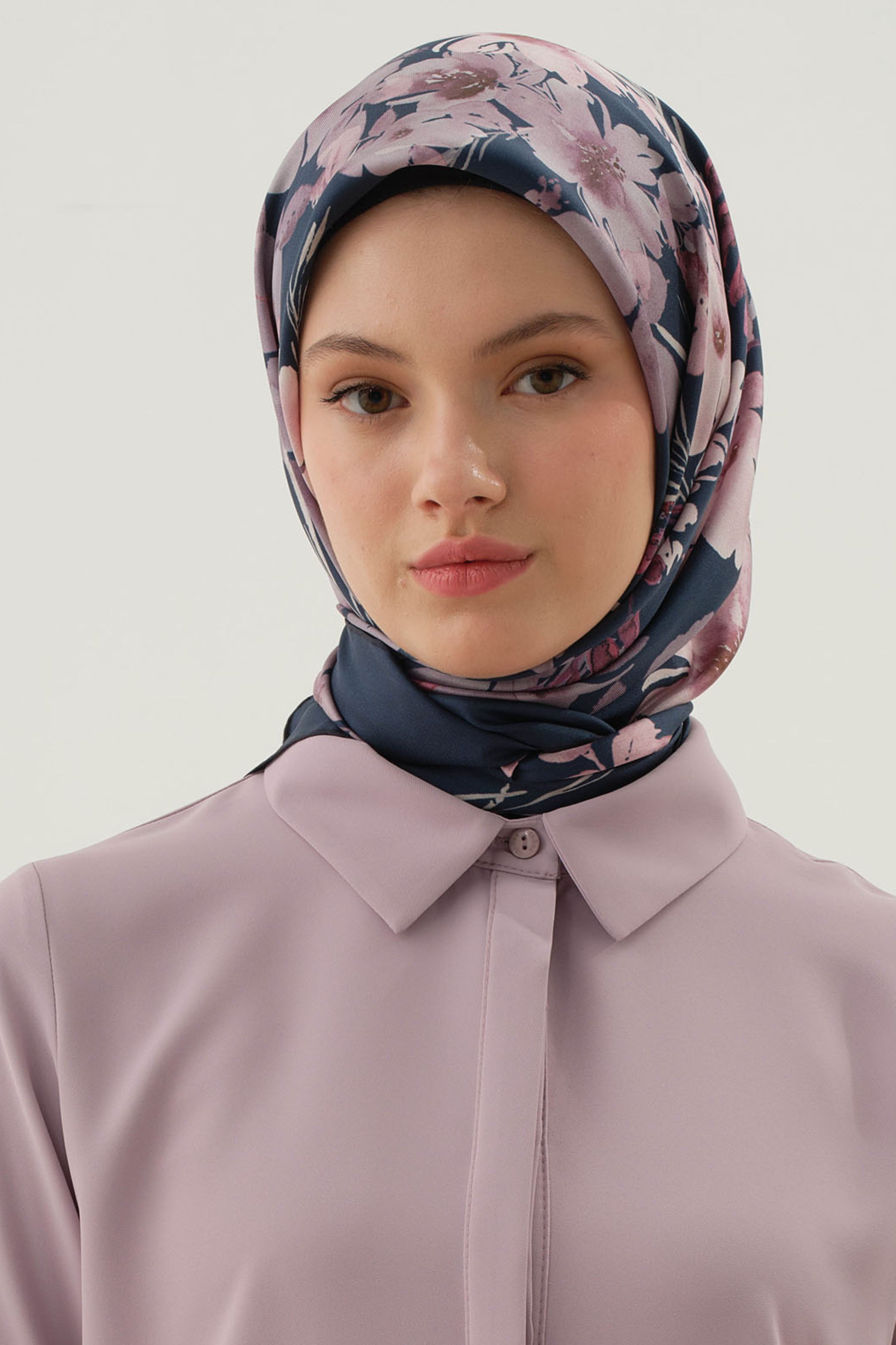 Écharpe en soie satinée Gülistan - Blue marine