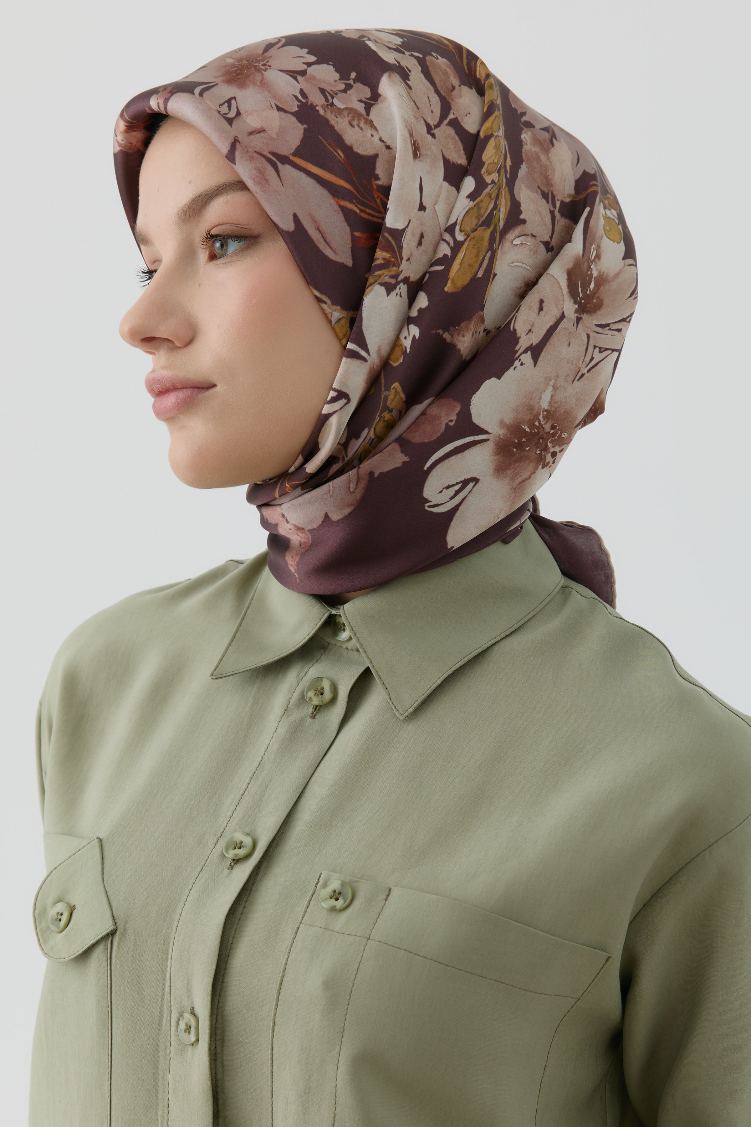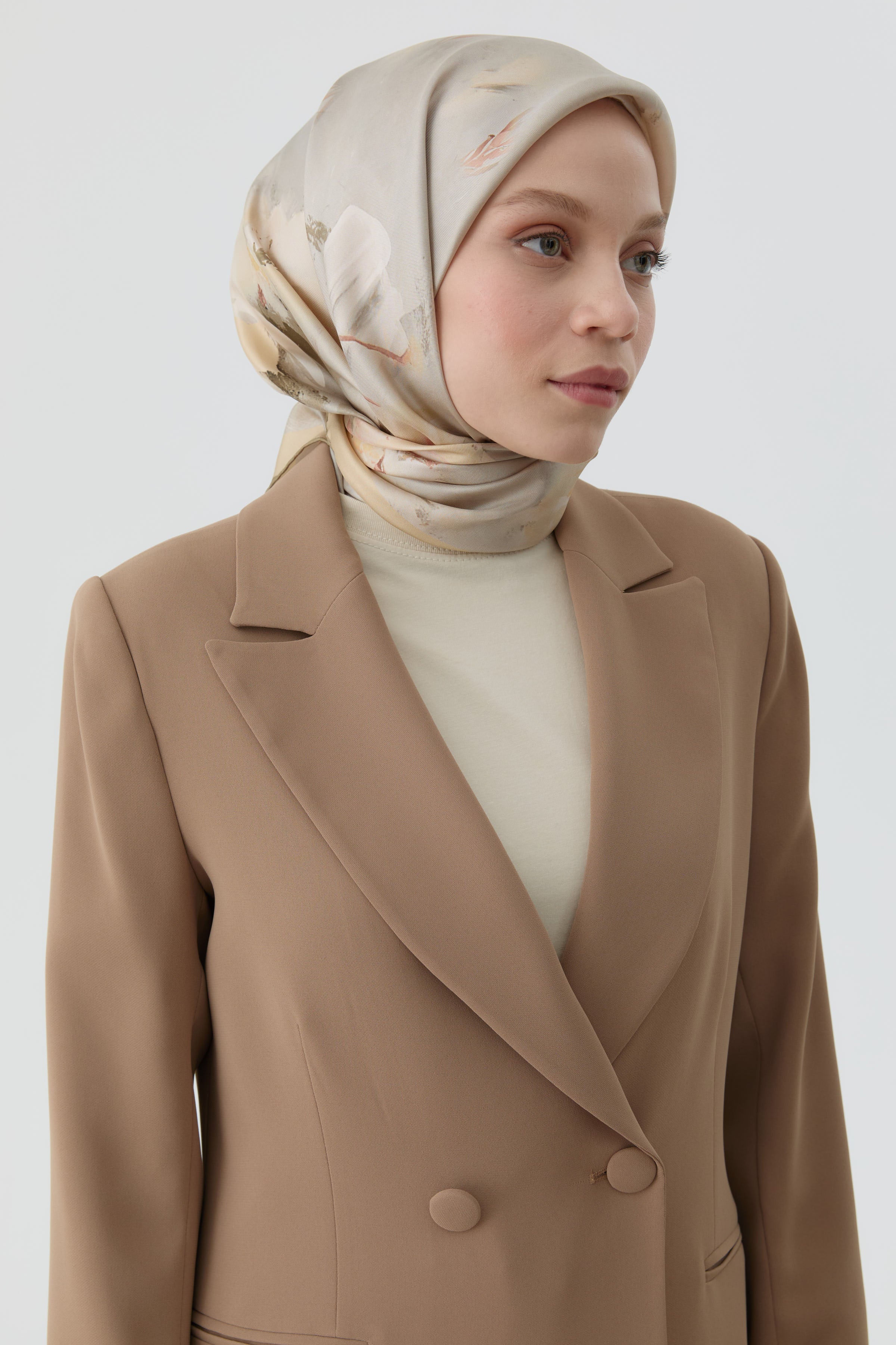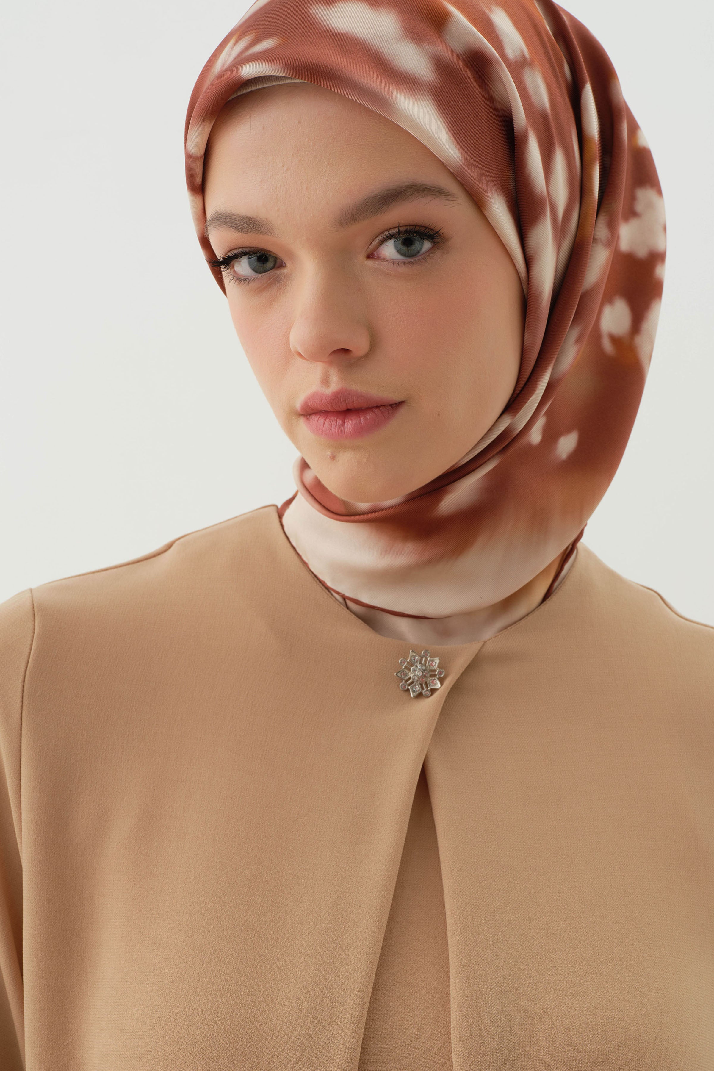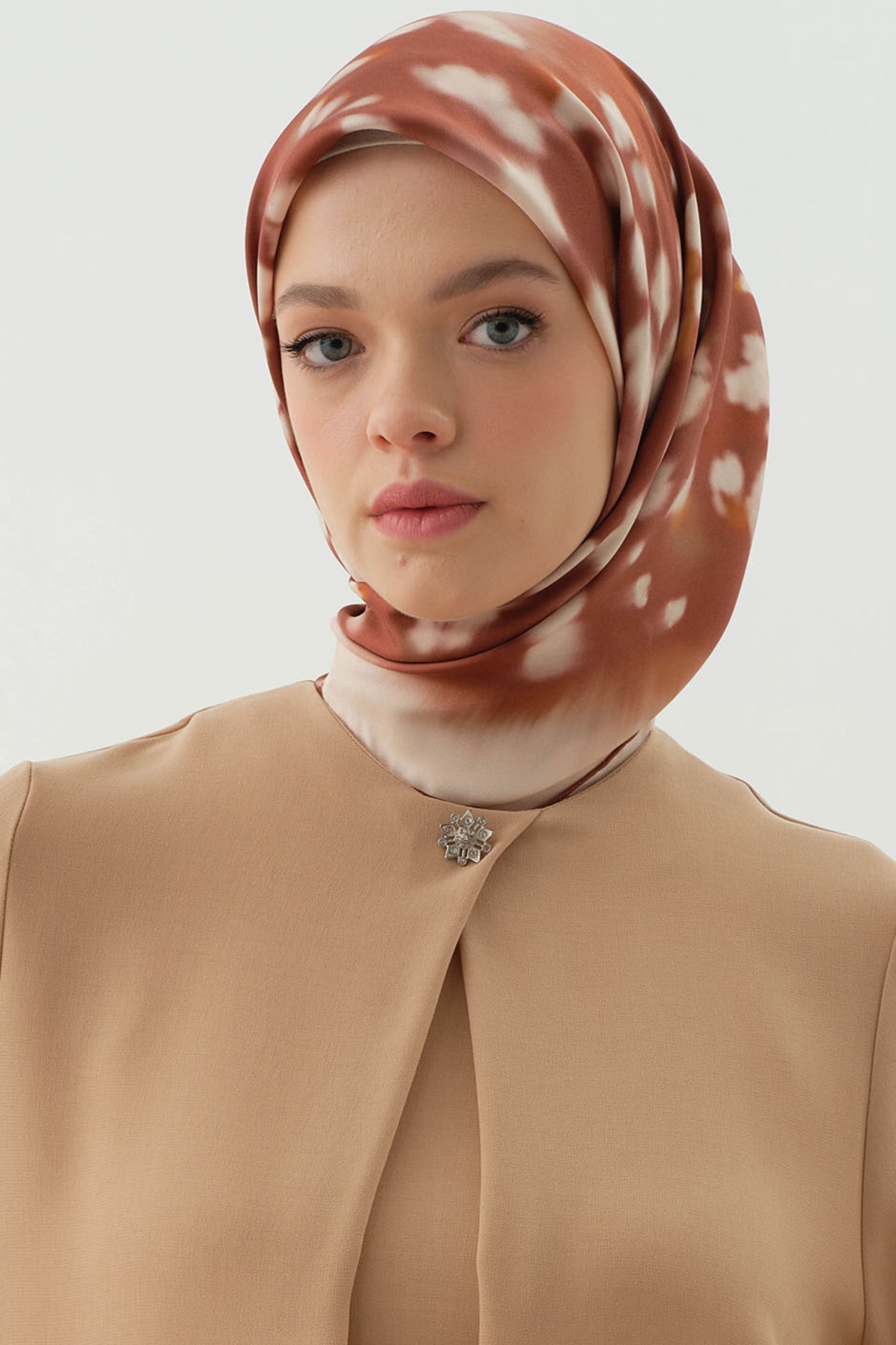 Écharpe en soie twill Fulya - Café