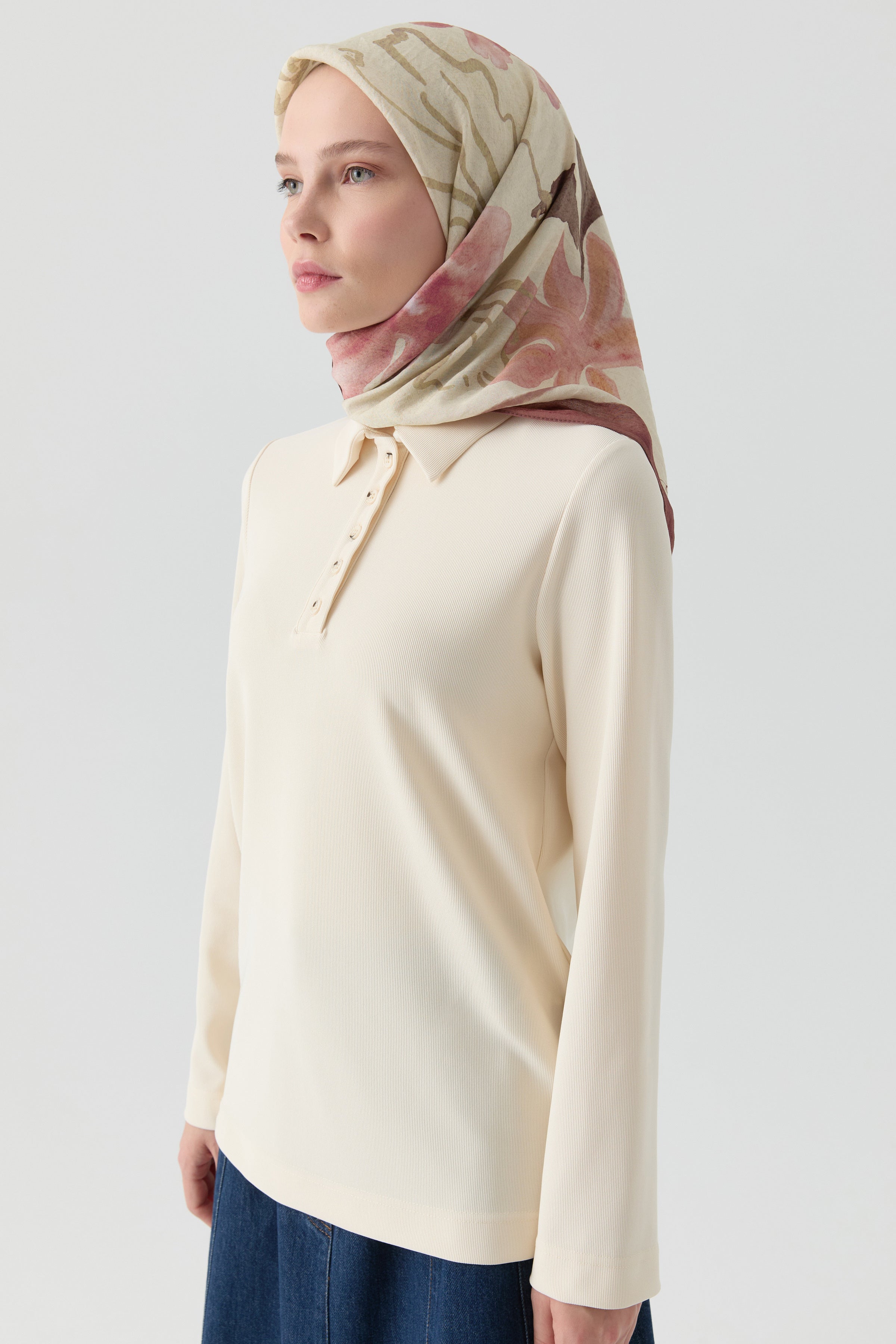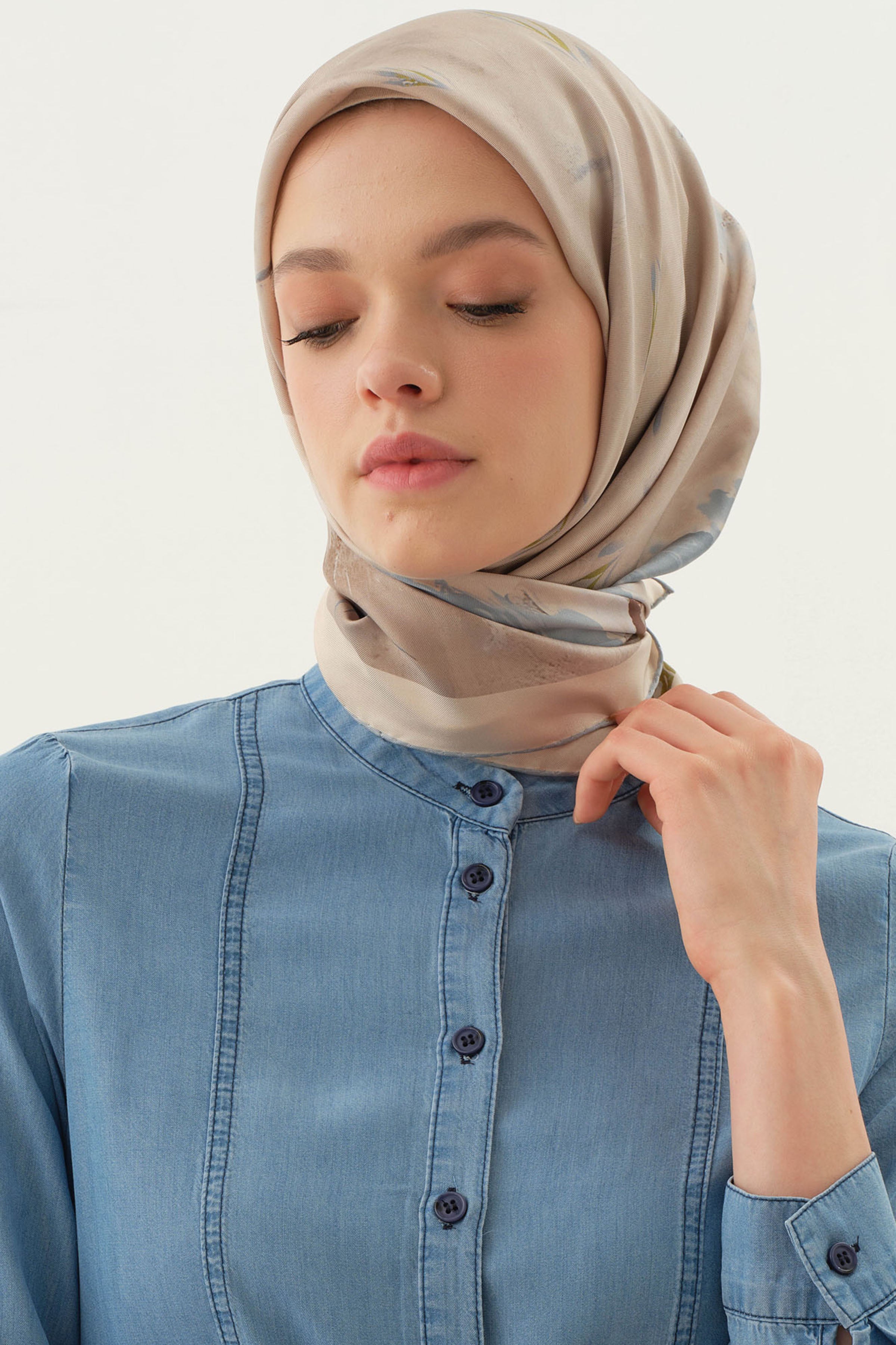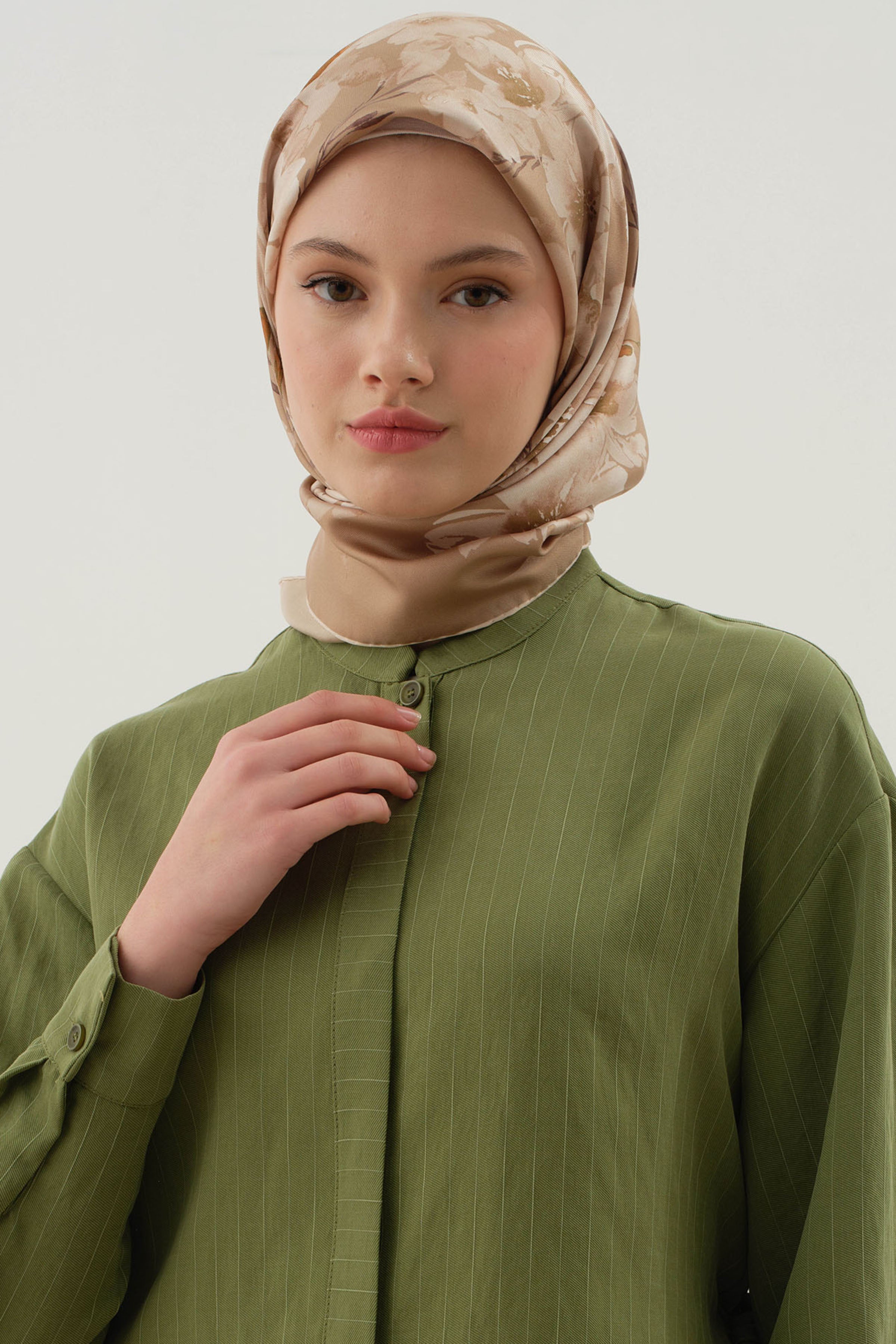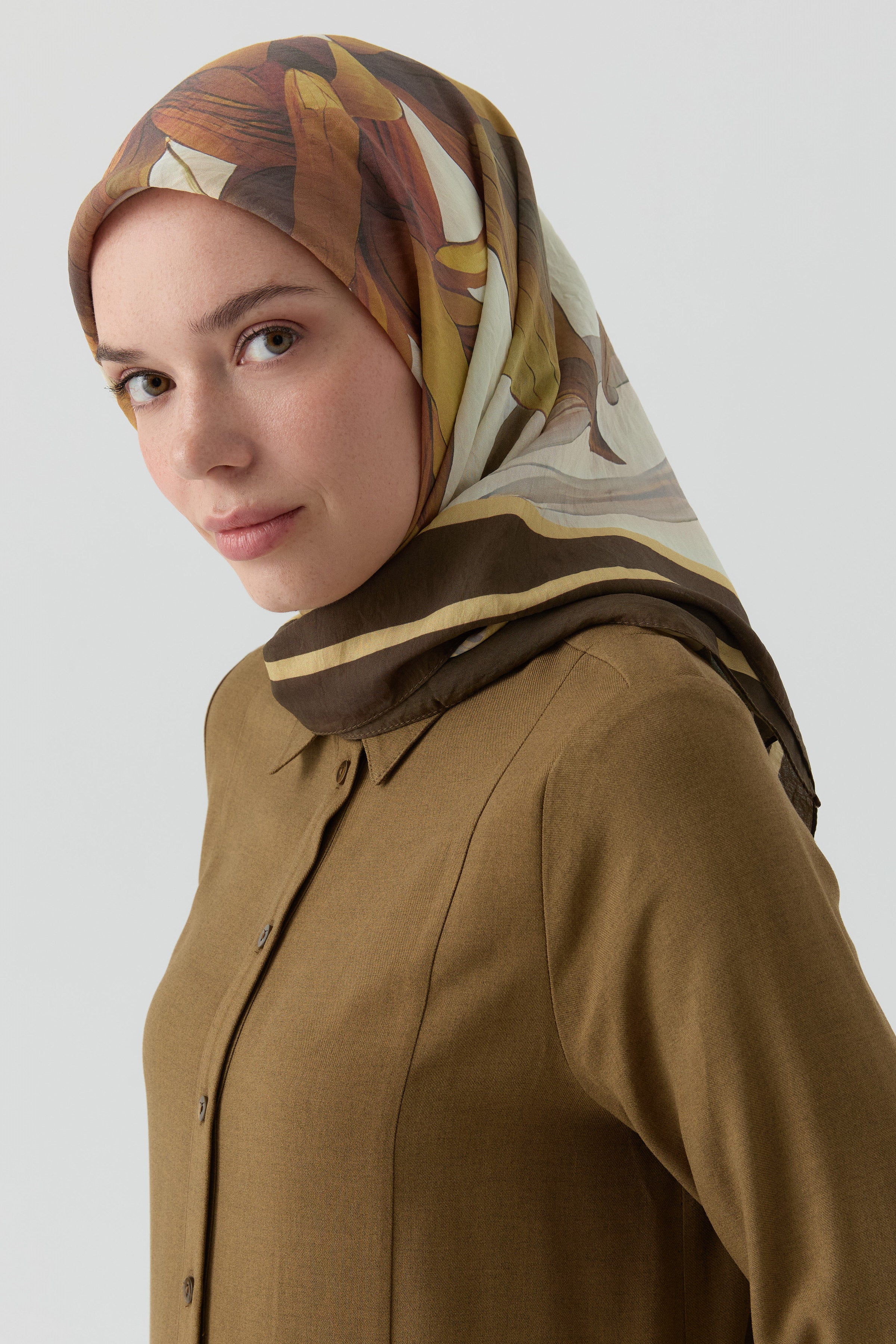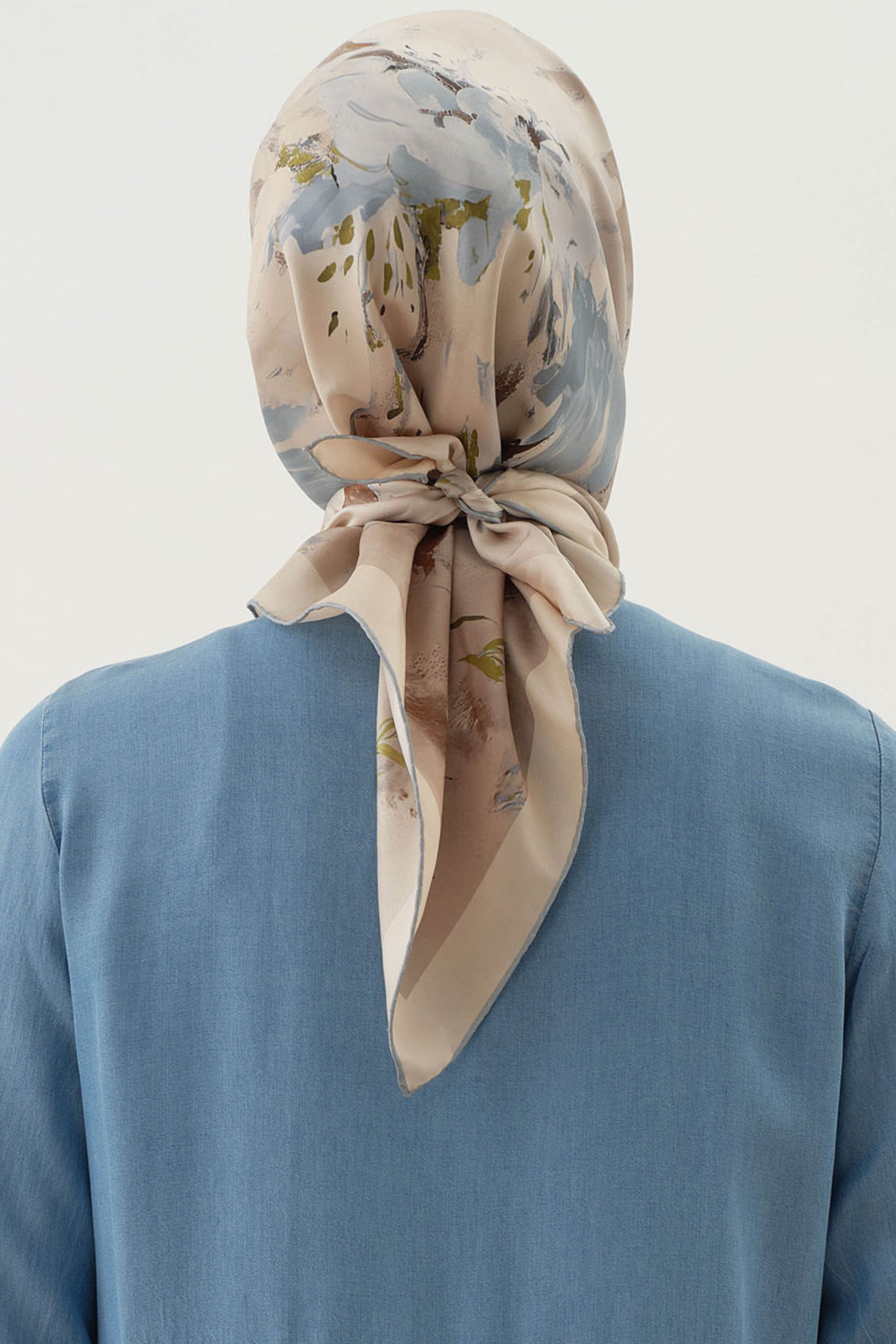 Écharpe en soie twill Sebu - Créme - Kaki