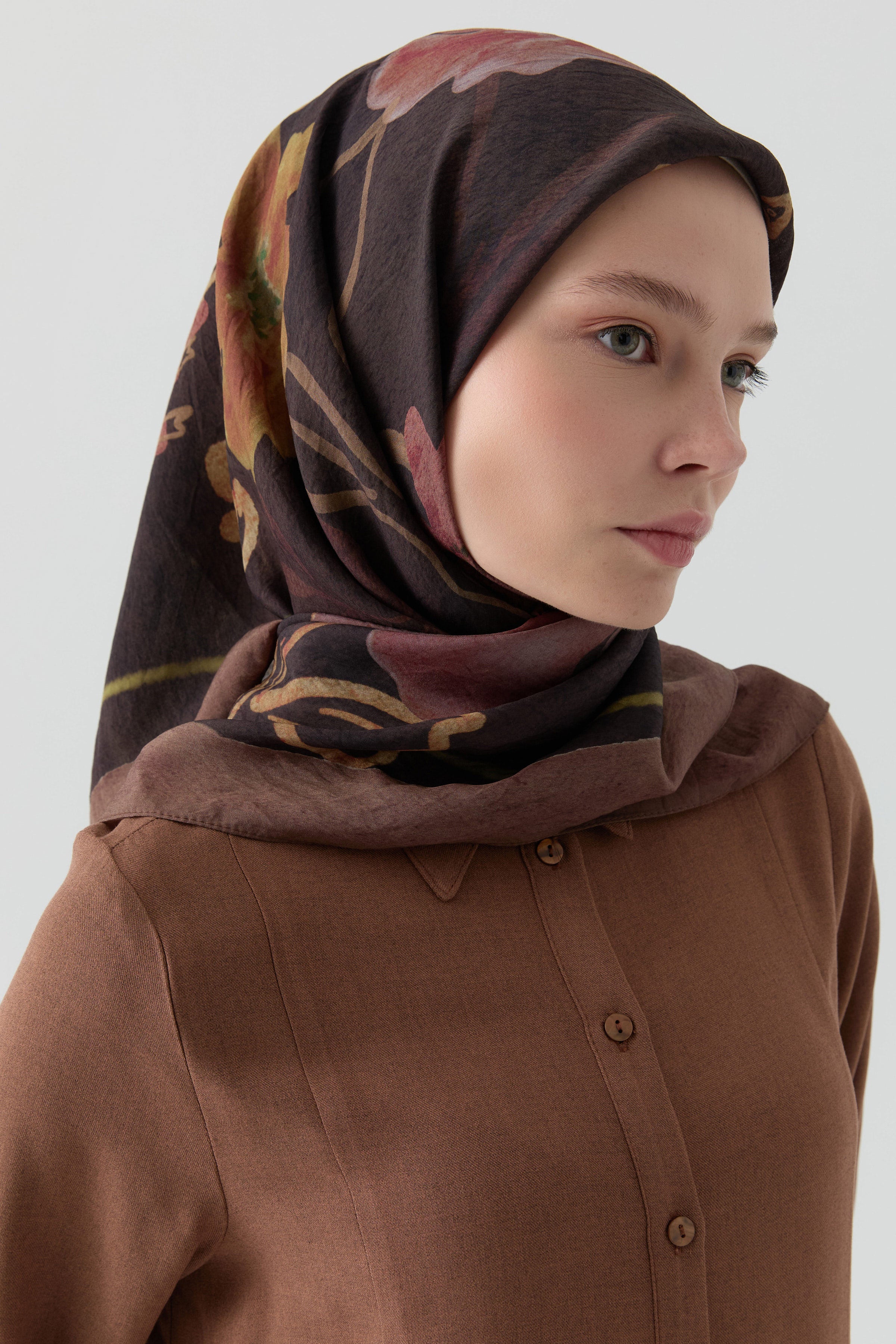 Écharpe en soie twill Didar - Café