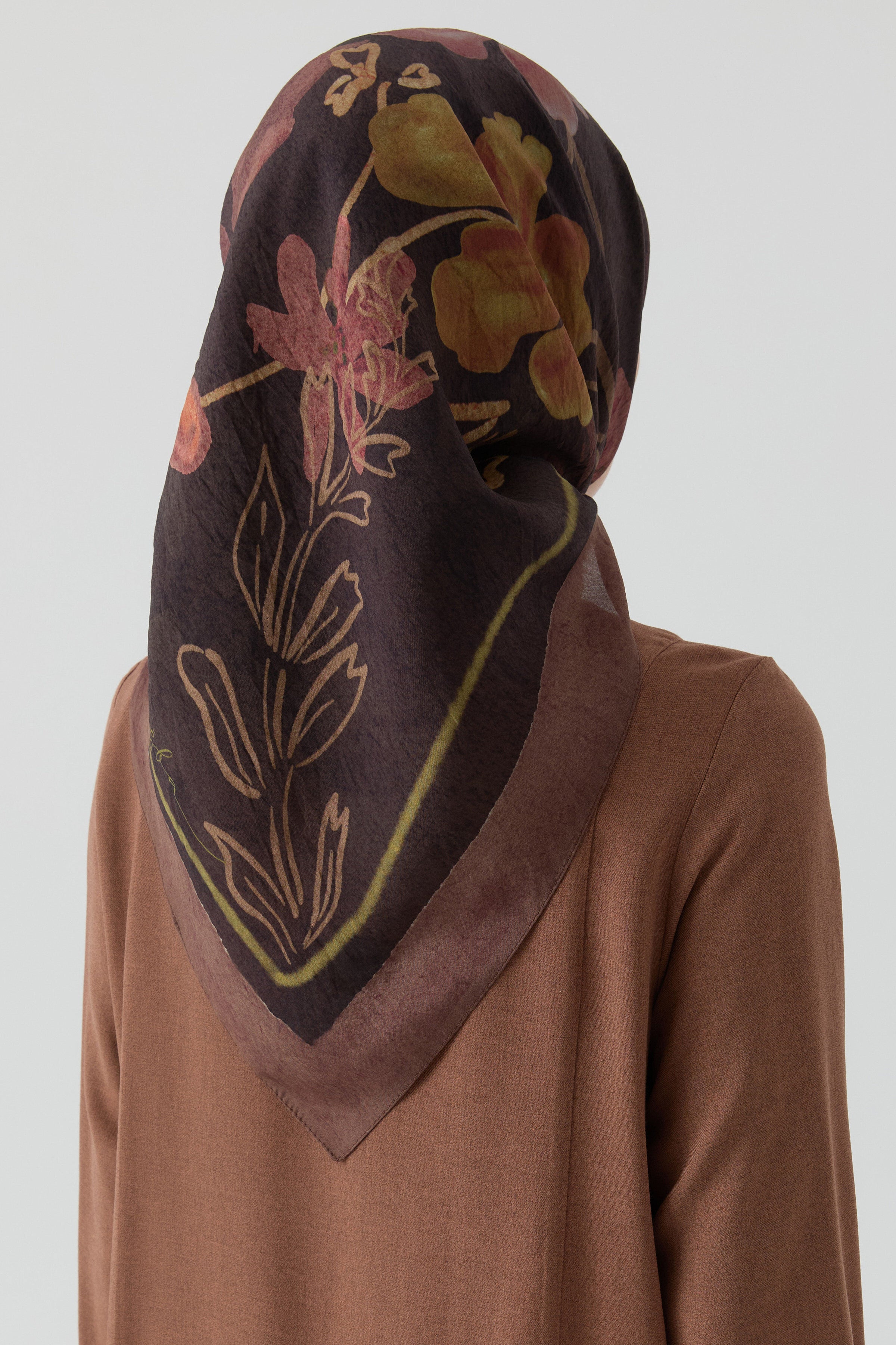 Écharpe en soie twill Sebu - Marron foncé