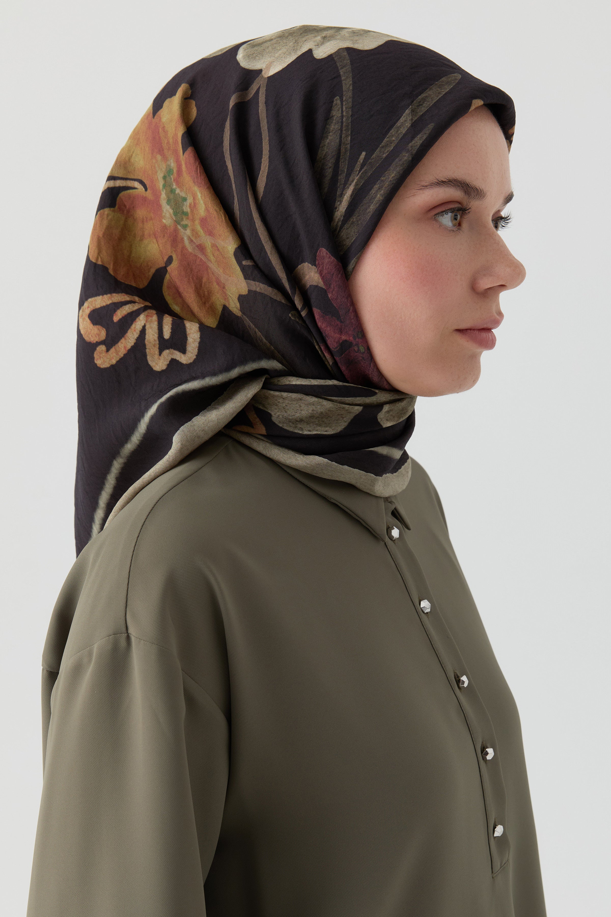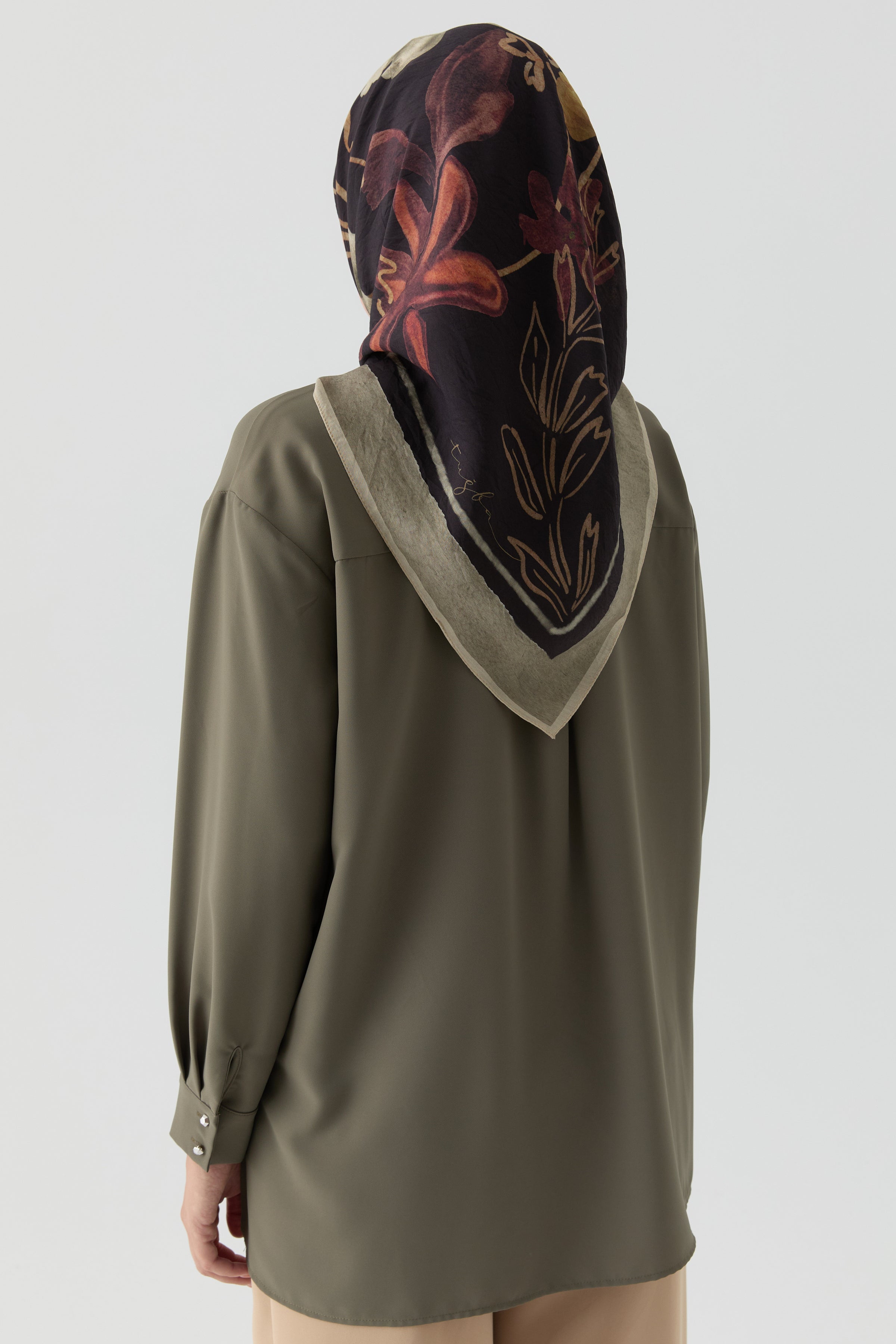 Écharpe en soie twill Didar - Olive