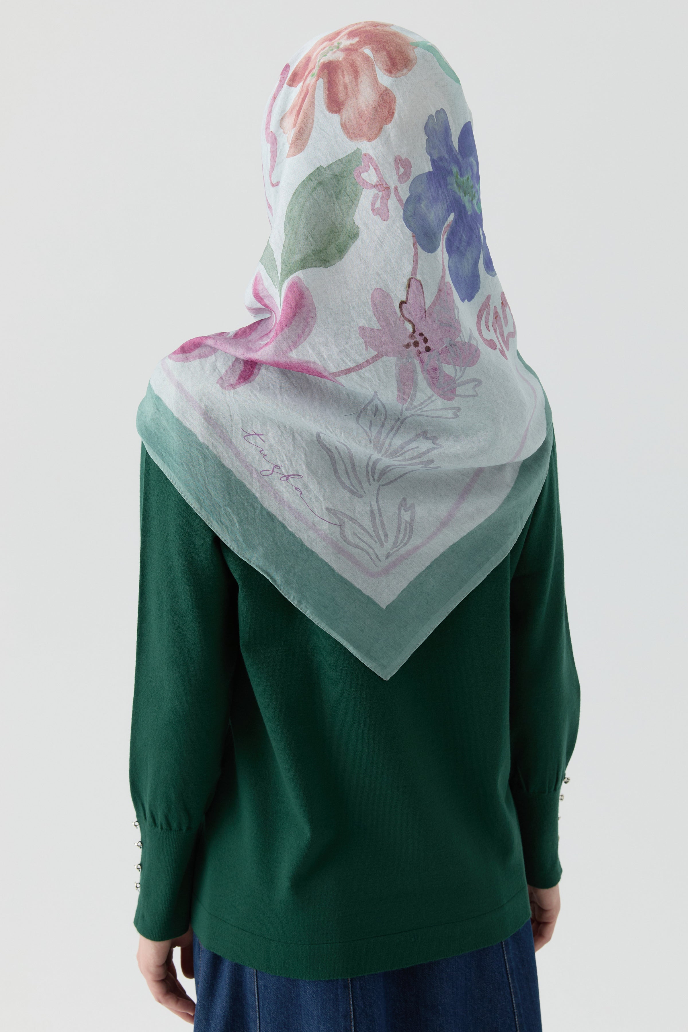 Écharpe Natural à motif floral fluide - Vert d'eau