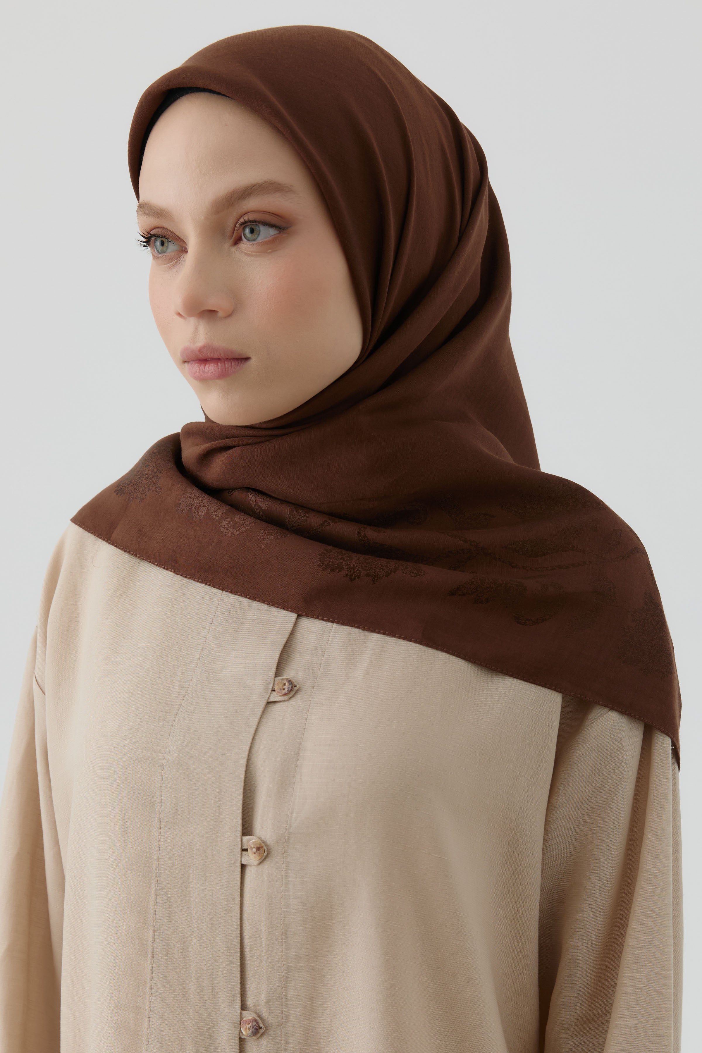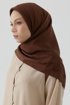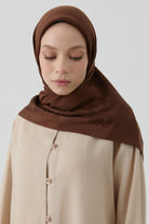 Écharpe naturelle Nevgül avec détails de bordure - Marron foncé