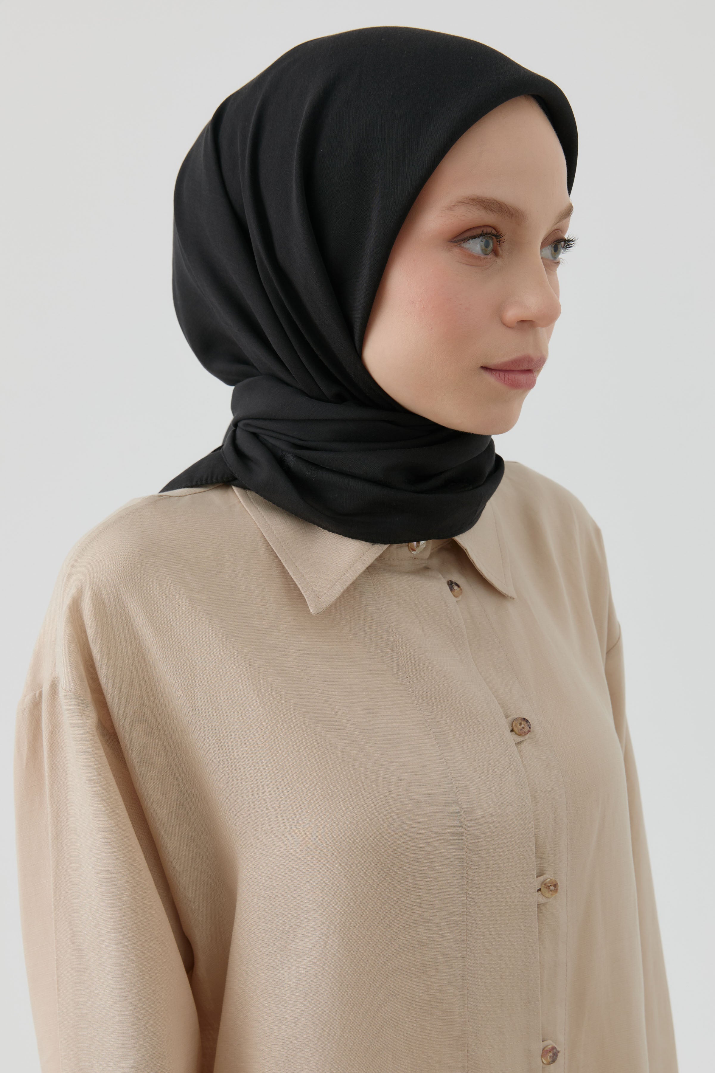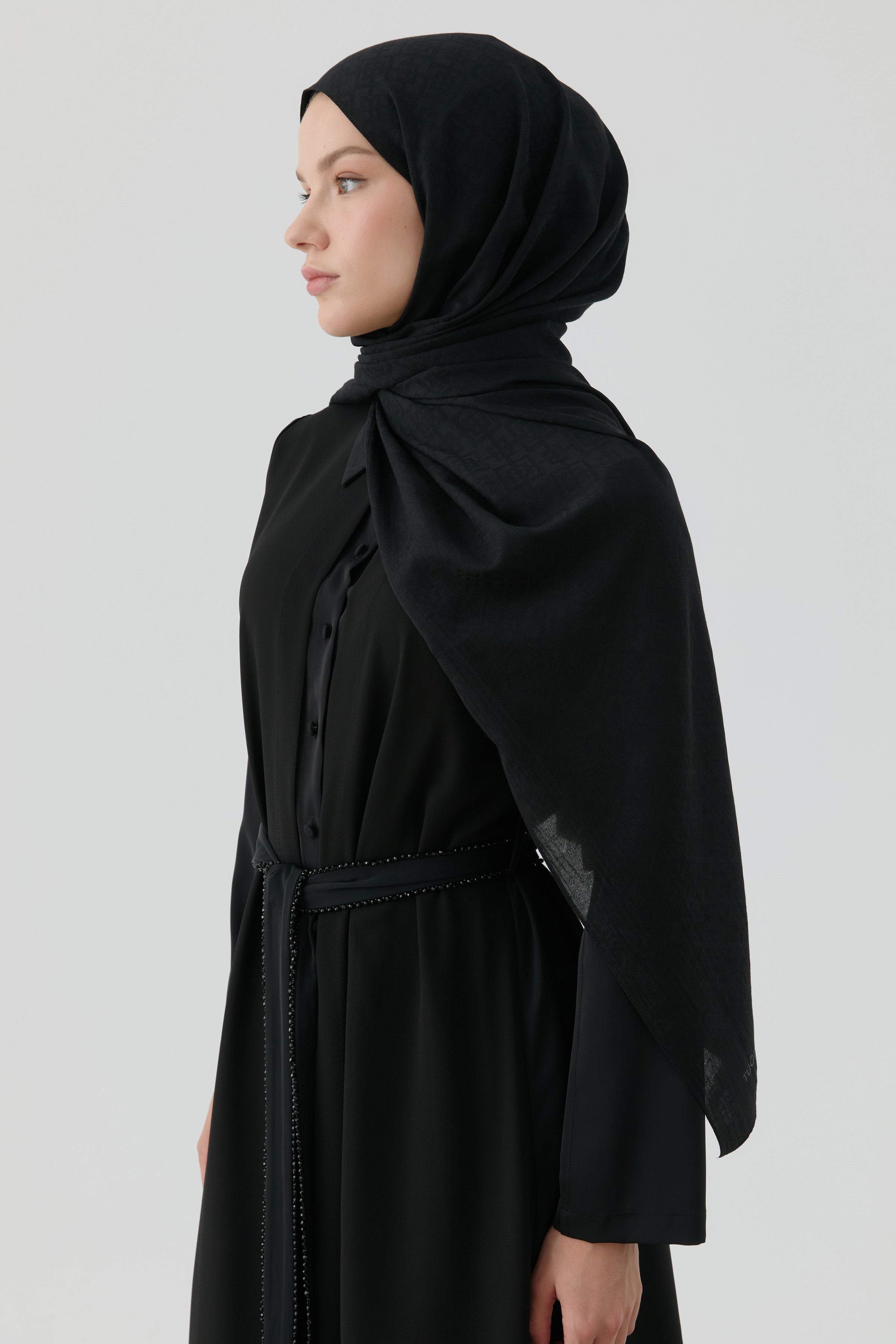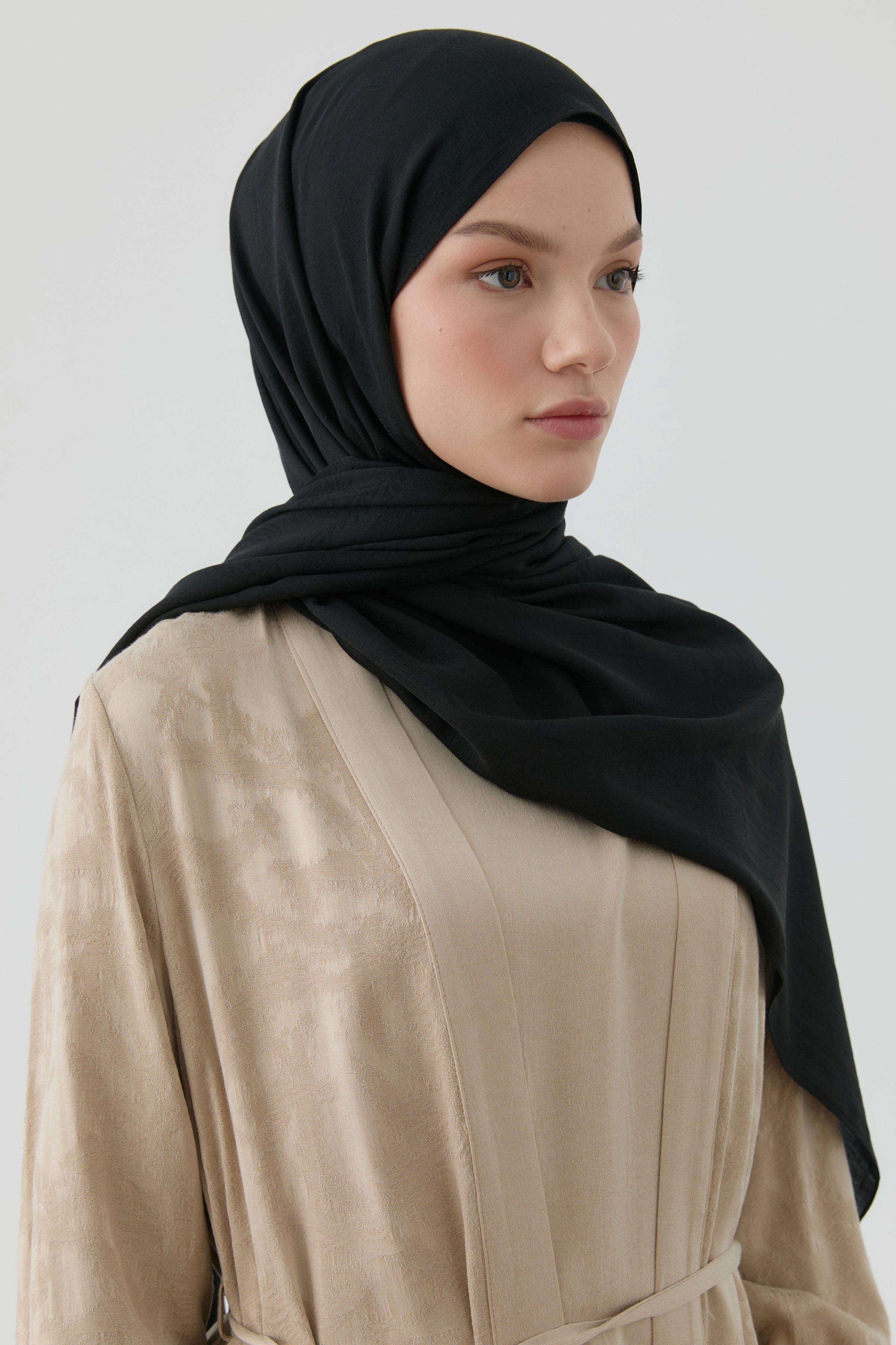 Écharpe naturelle Nevgül avec détails de bordure - Noir