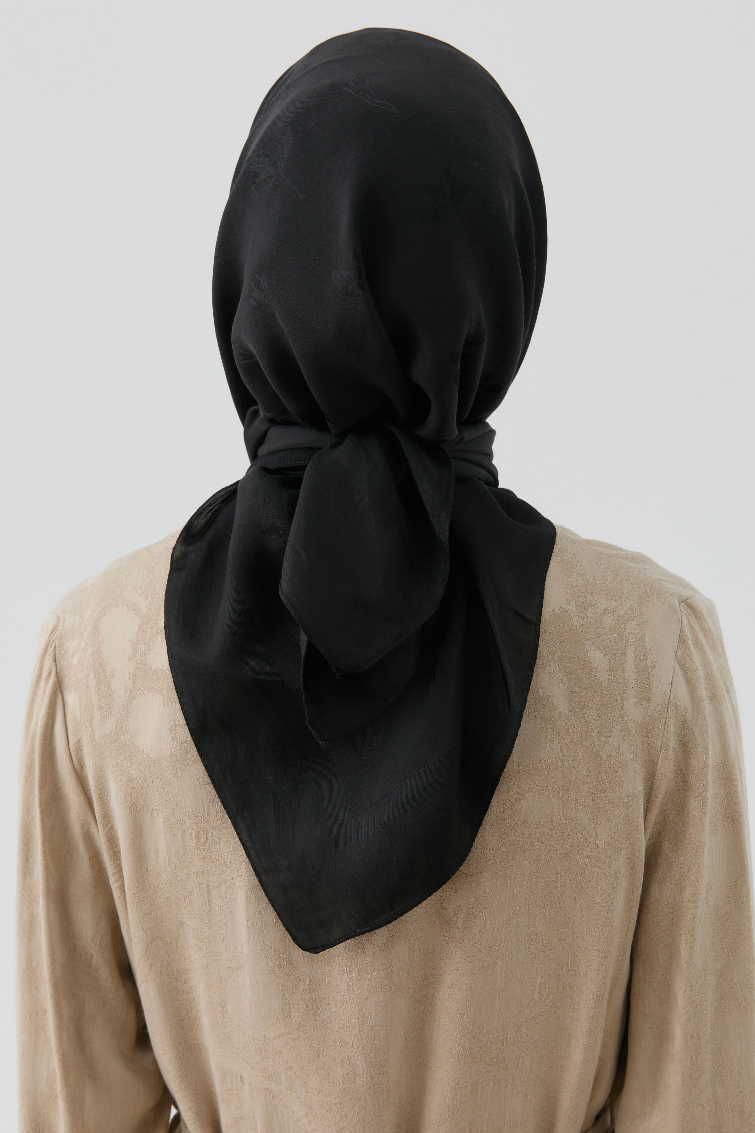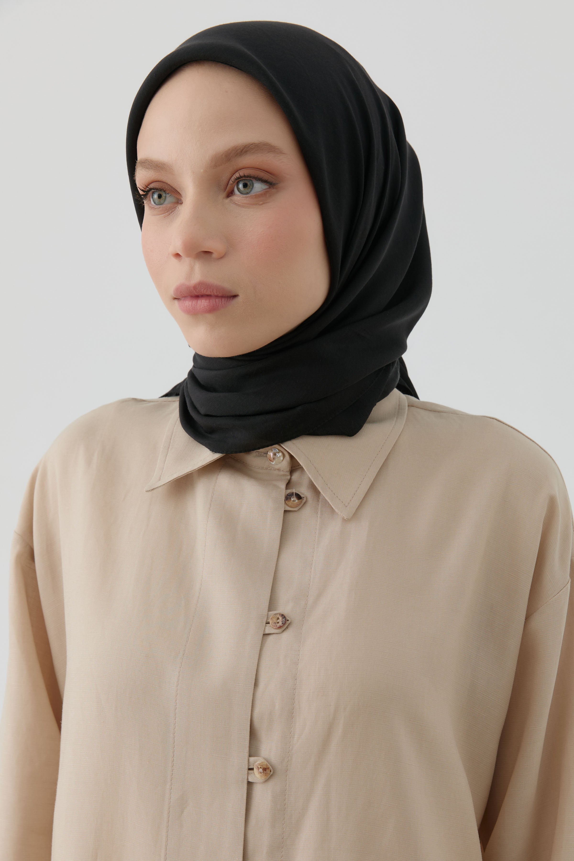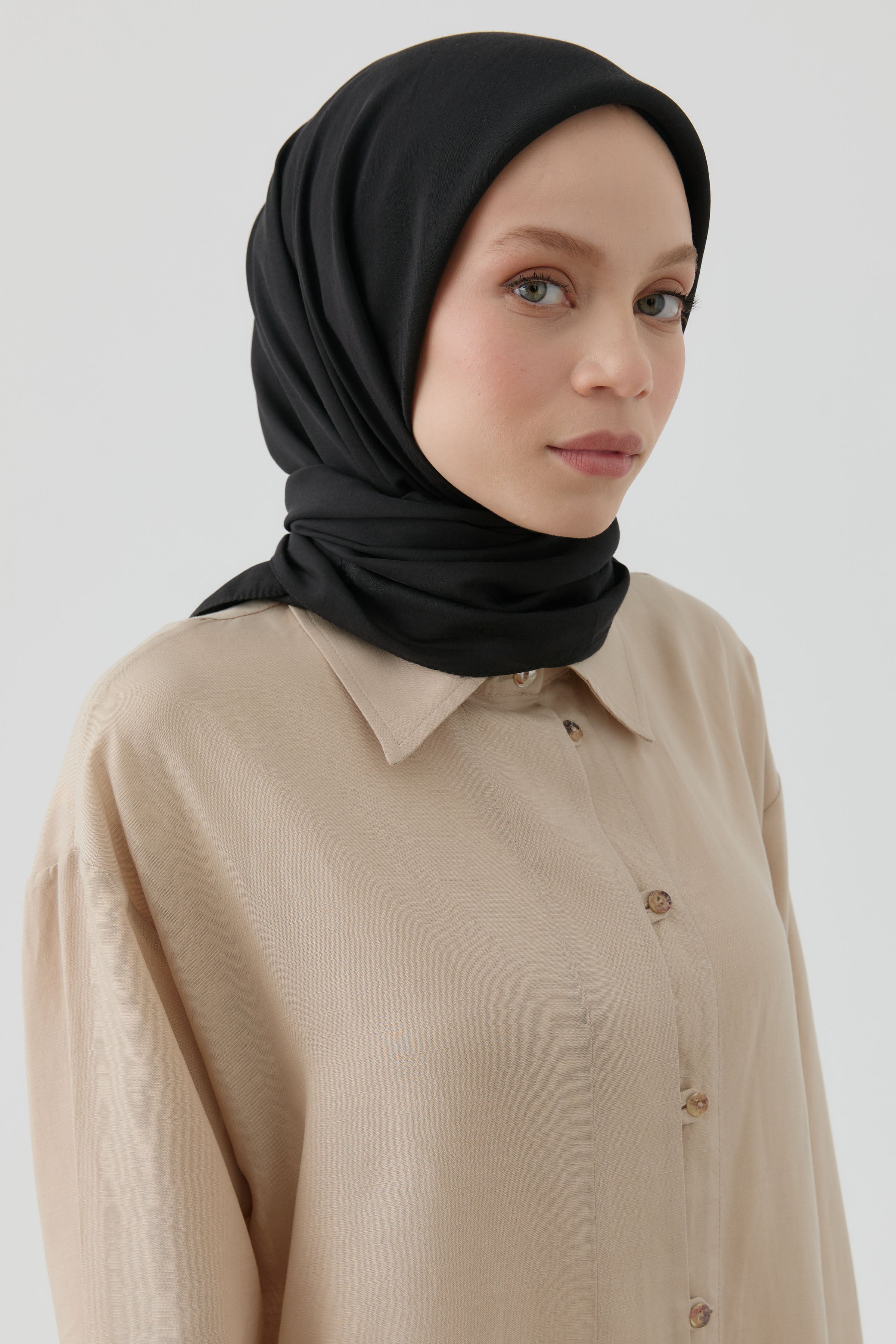 Écharpe naturelle Nevgül avec détails de bordure - Noir