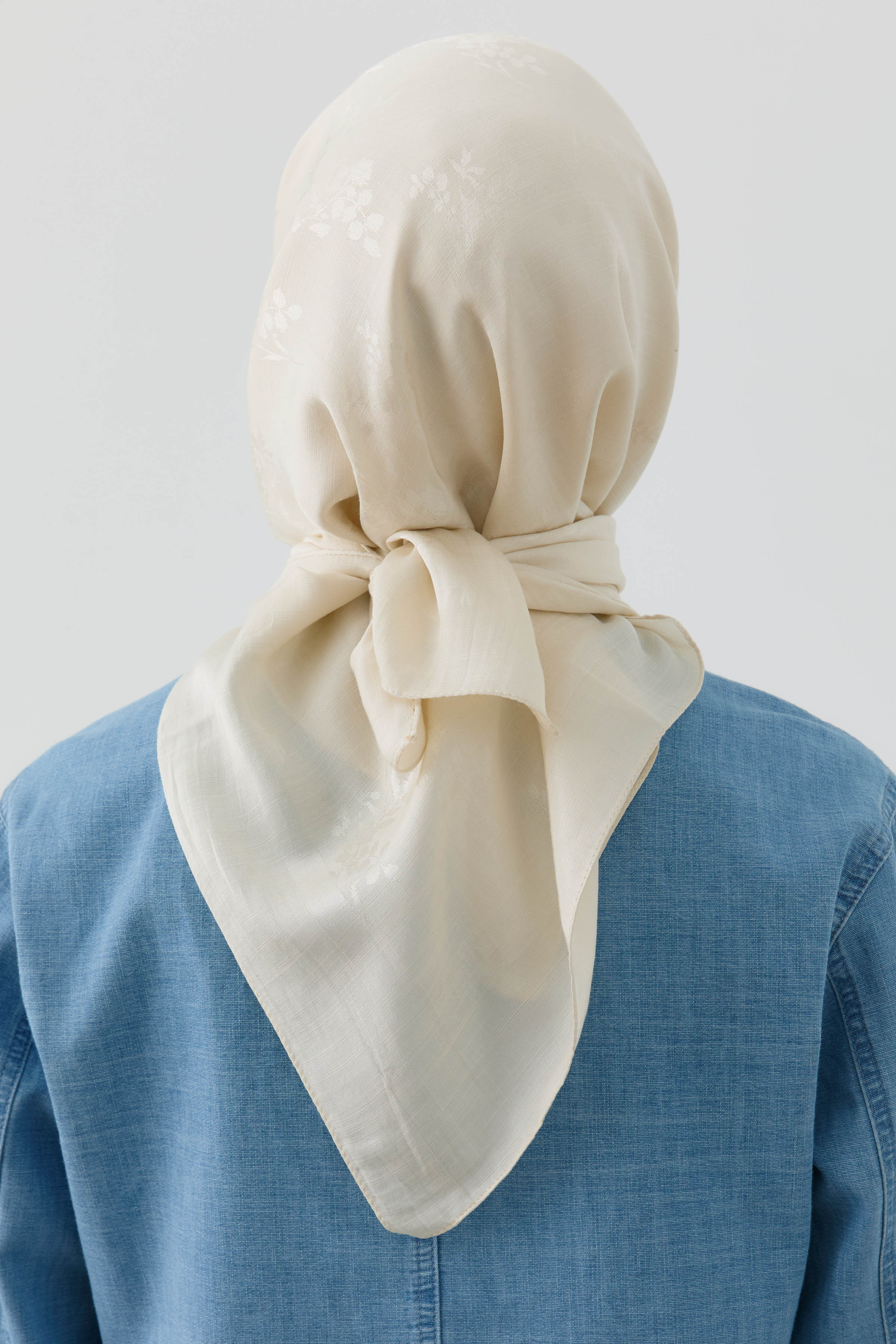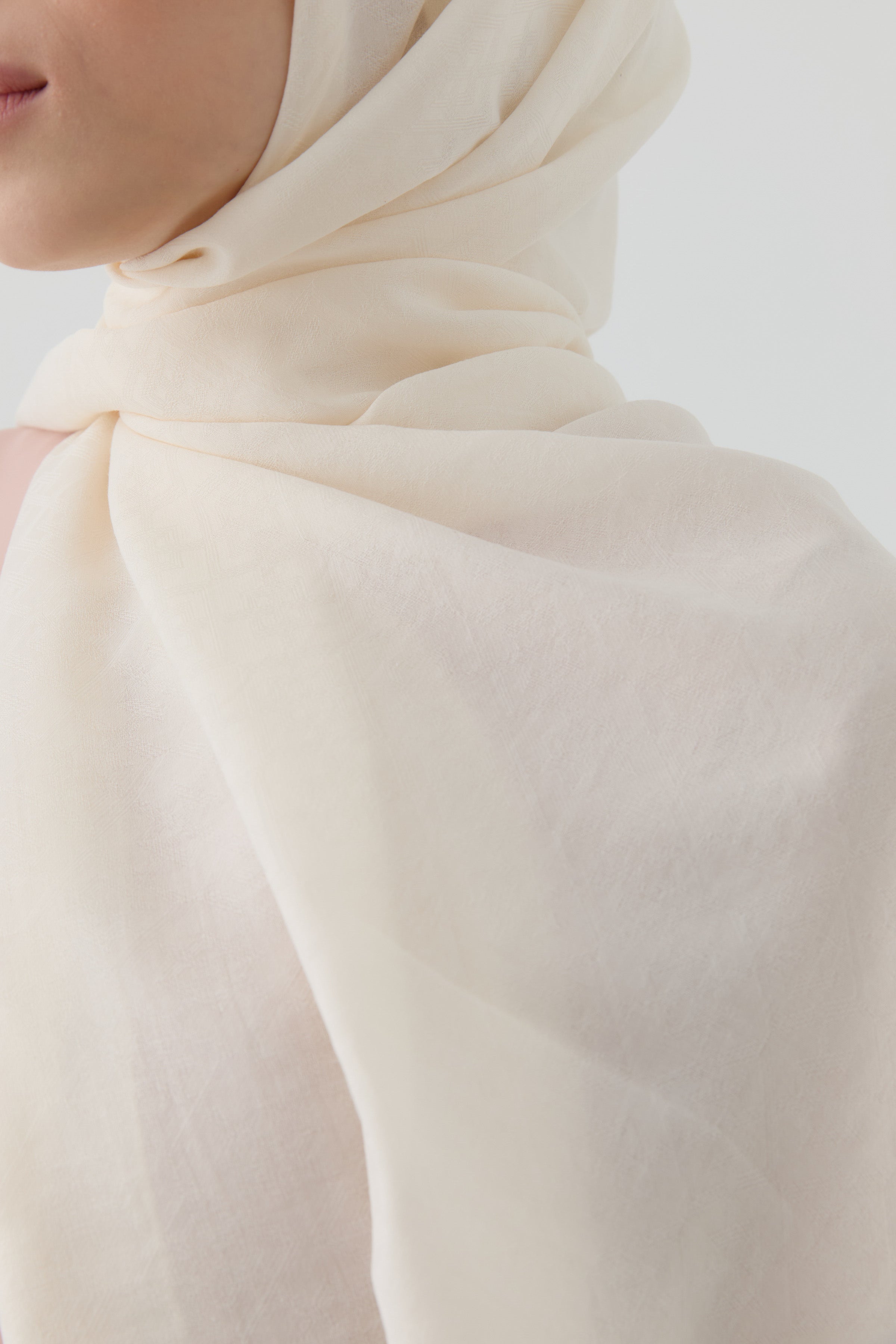 Écharpe naturelle à motif ikat ethnique Nida - Crème