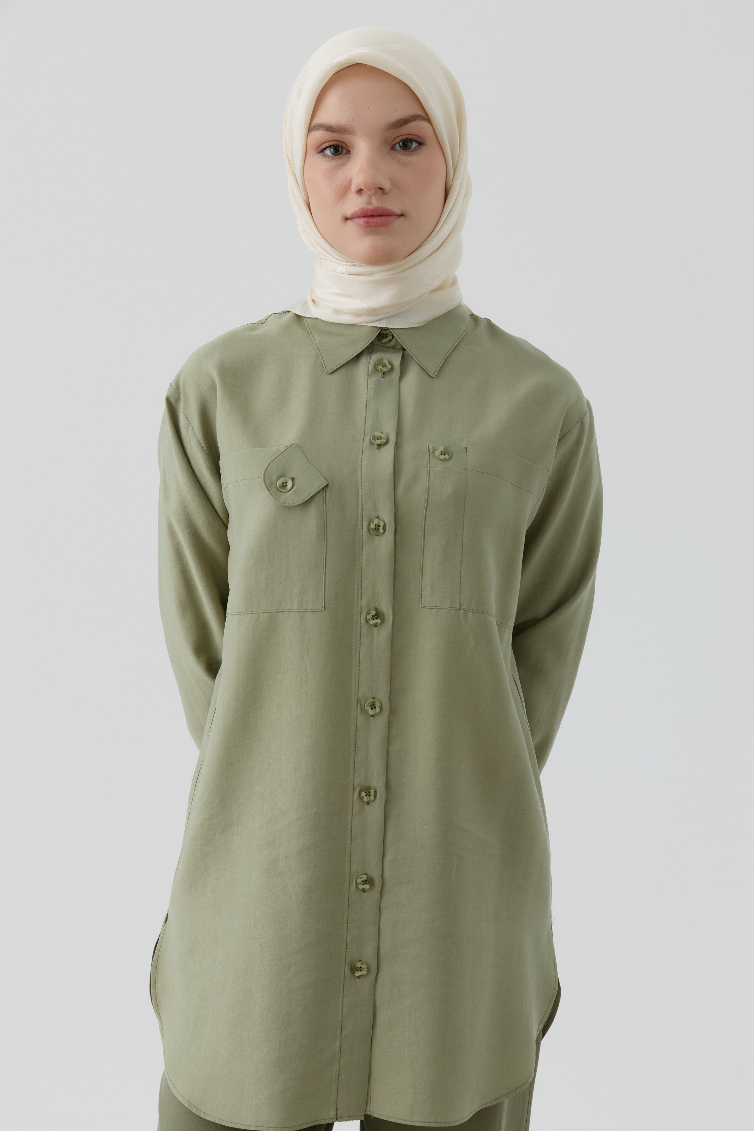 Écharpe naturelle Nevgül avec détails de bordure - Kaki