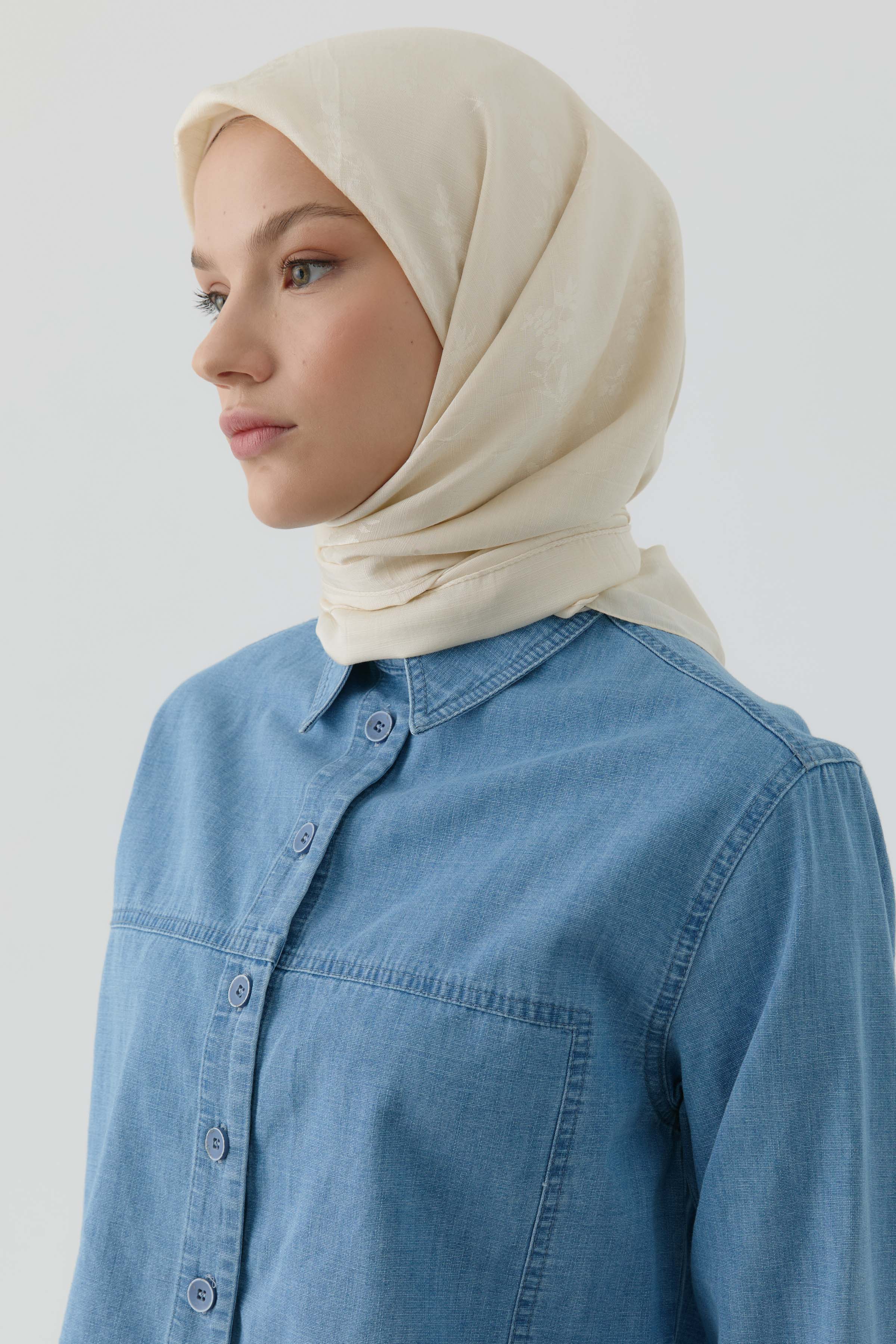 Écharpe naturelle Nevgül avec détails de bordure - Écru