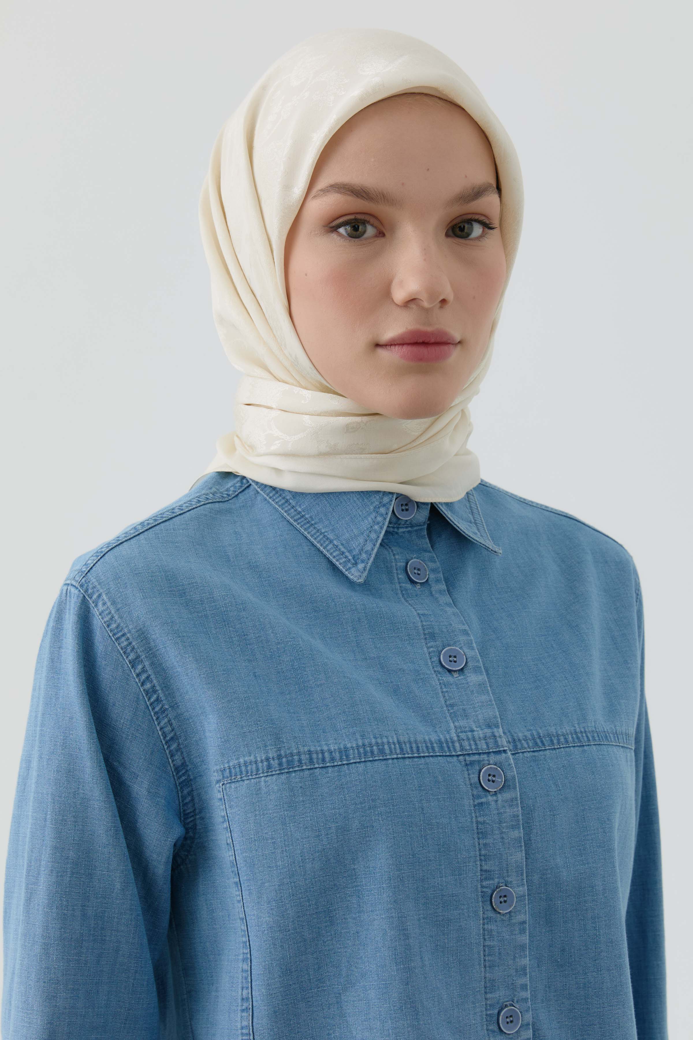 Écharpe naturelle Nevgül avec détails de bordure - Argent