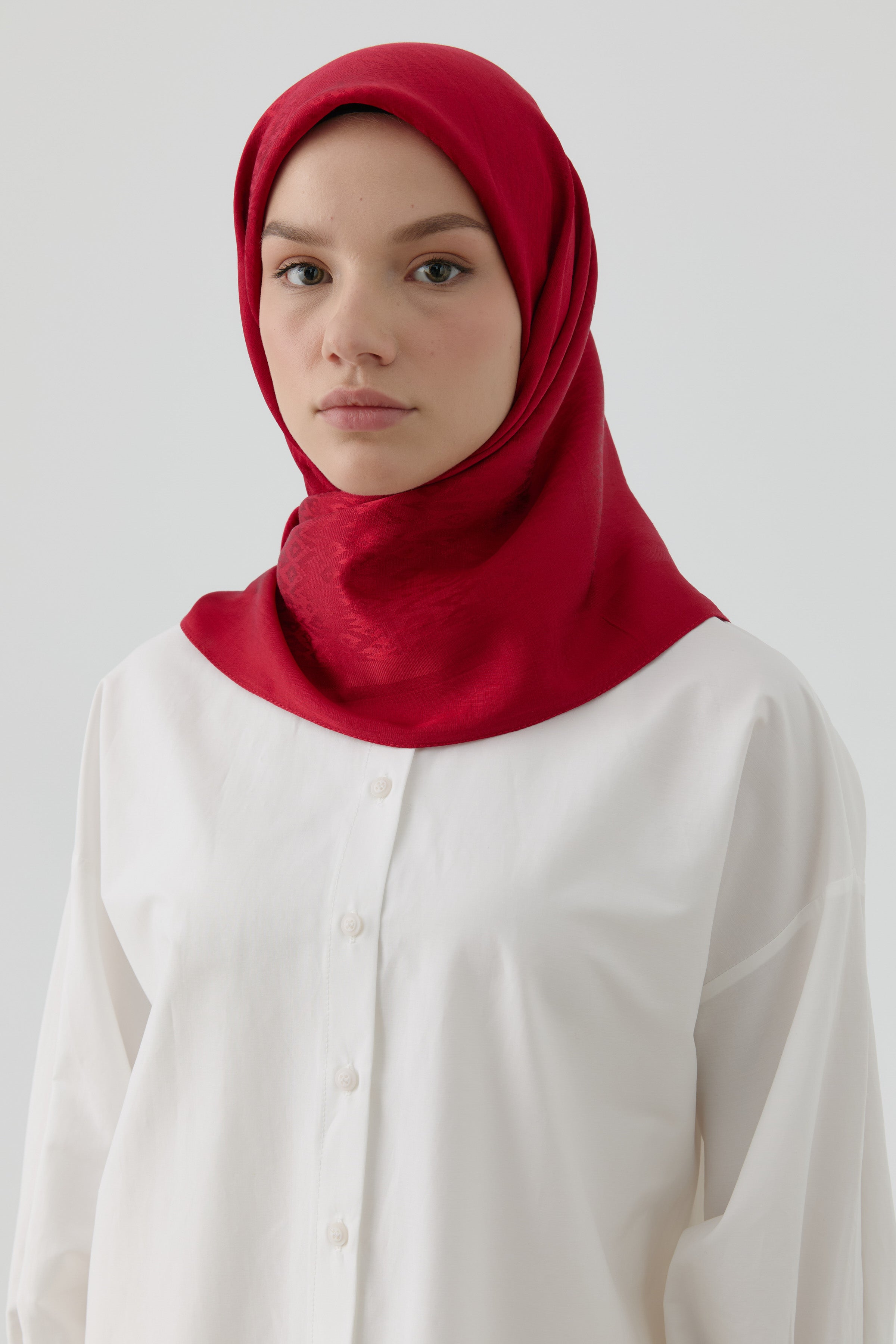 Écharpe naturelle Nevgül avec détails de bordure - Rouge