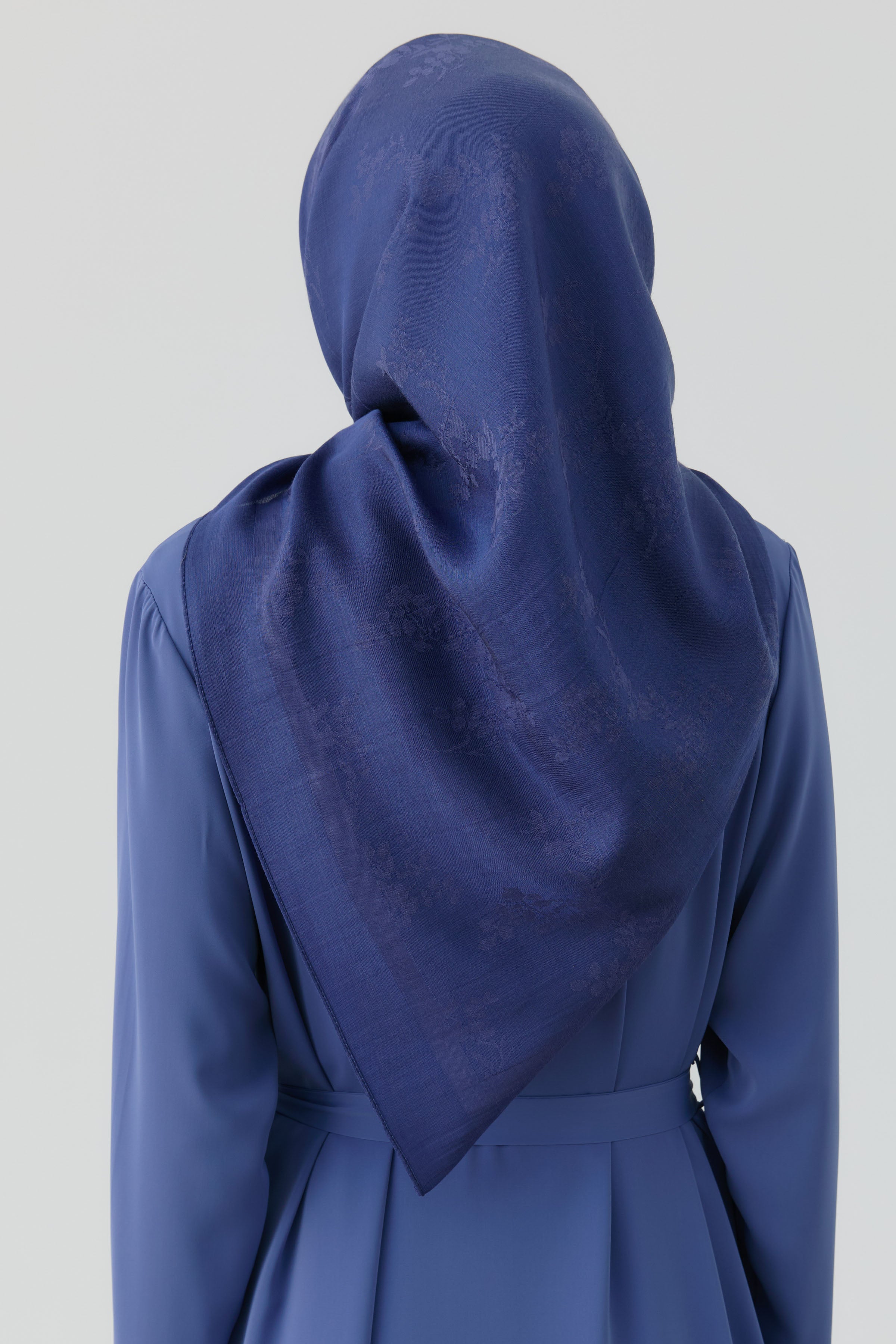 Écharpe jacquard florale Nida naturelle - Blue marine