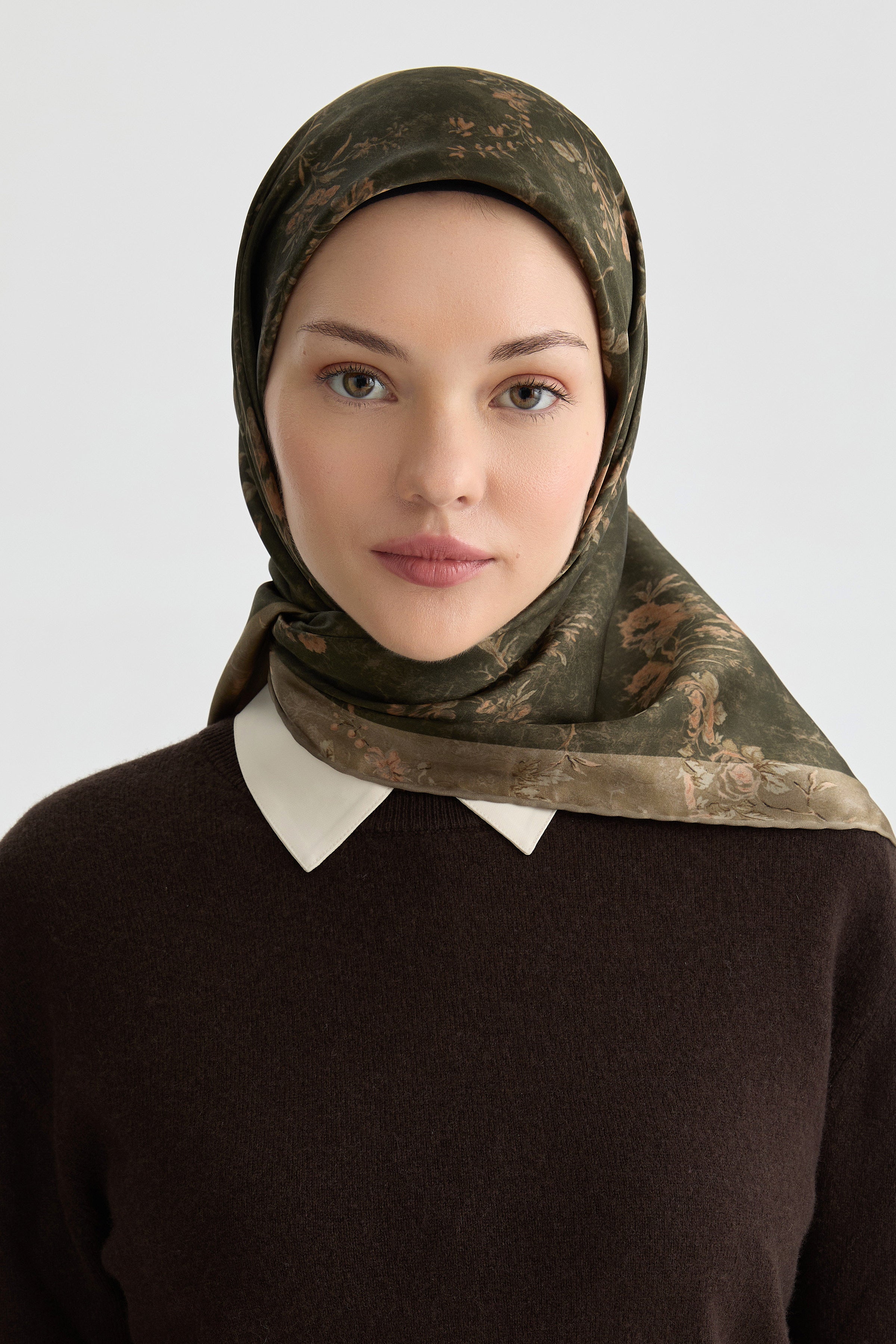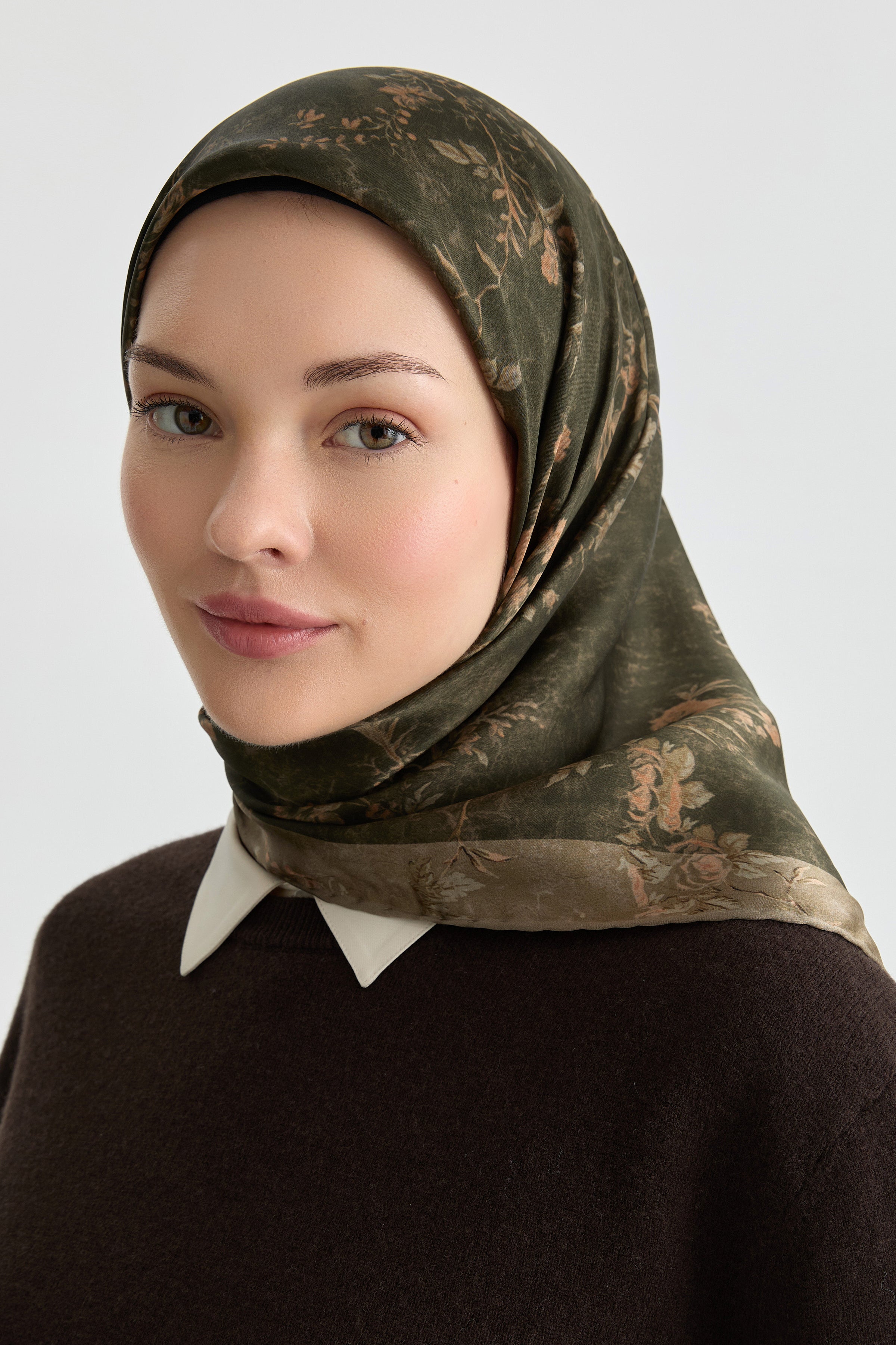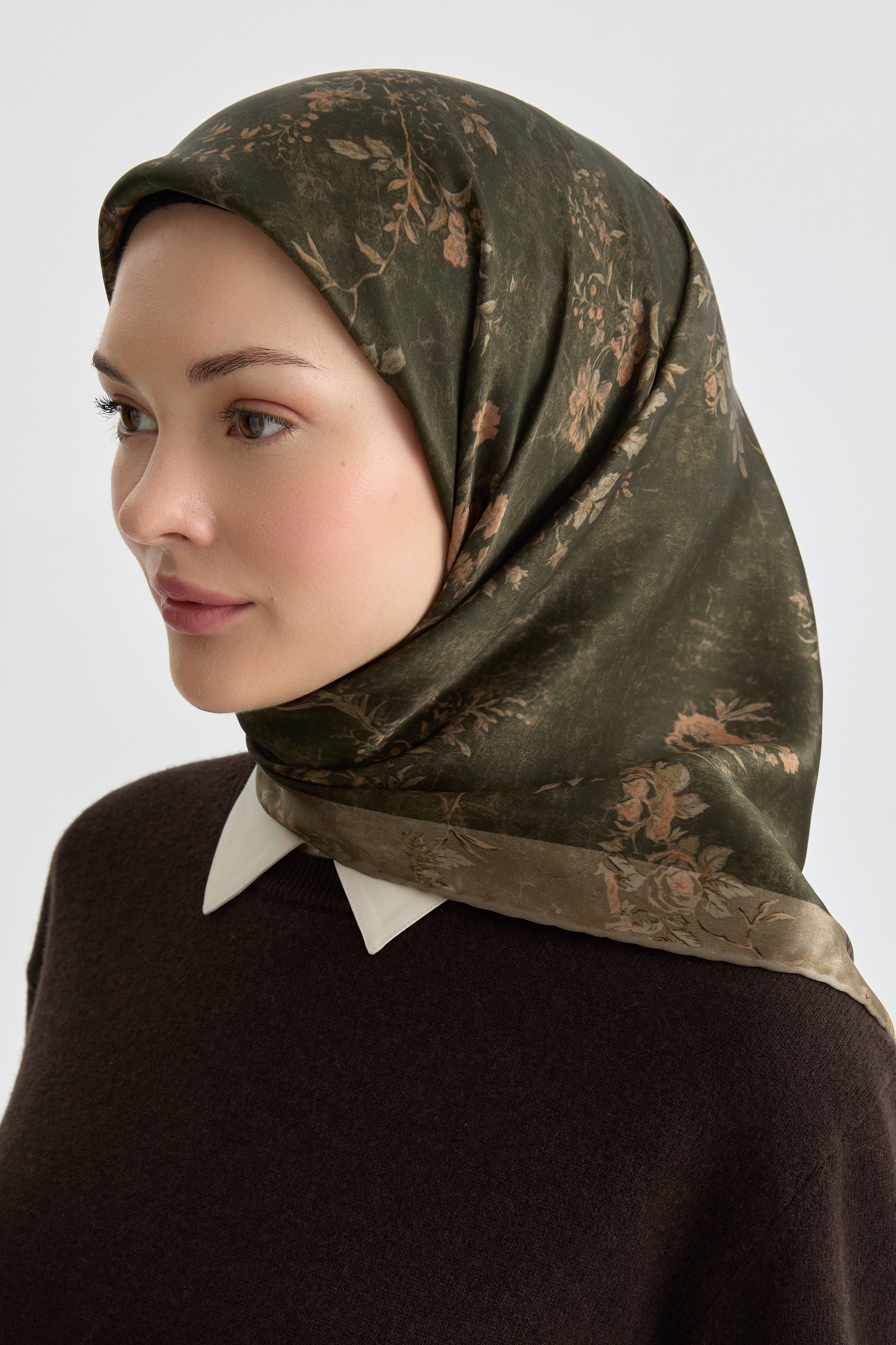 Écharpe en soie satinée Güzide - Kaki