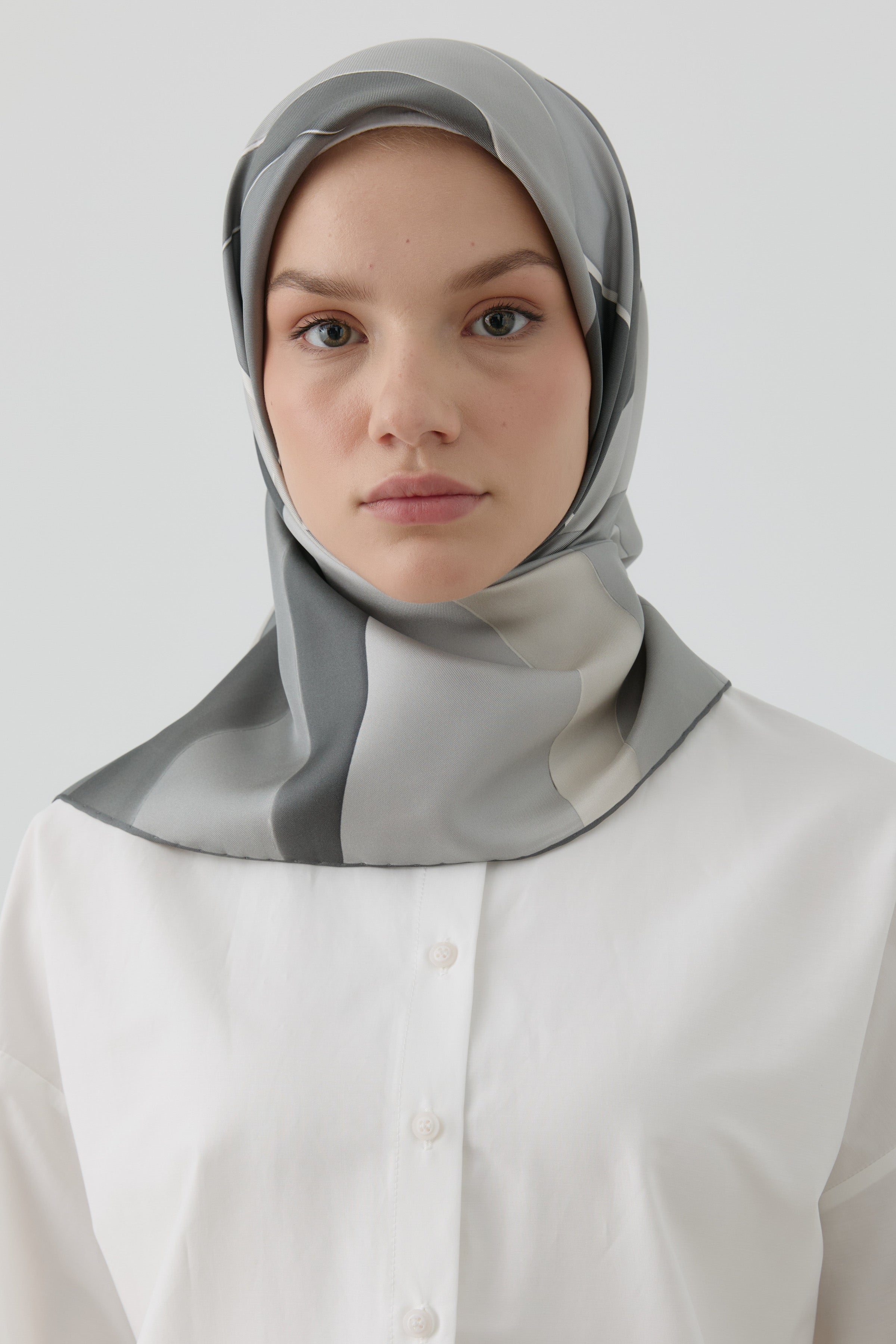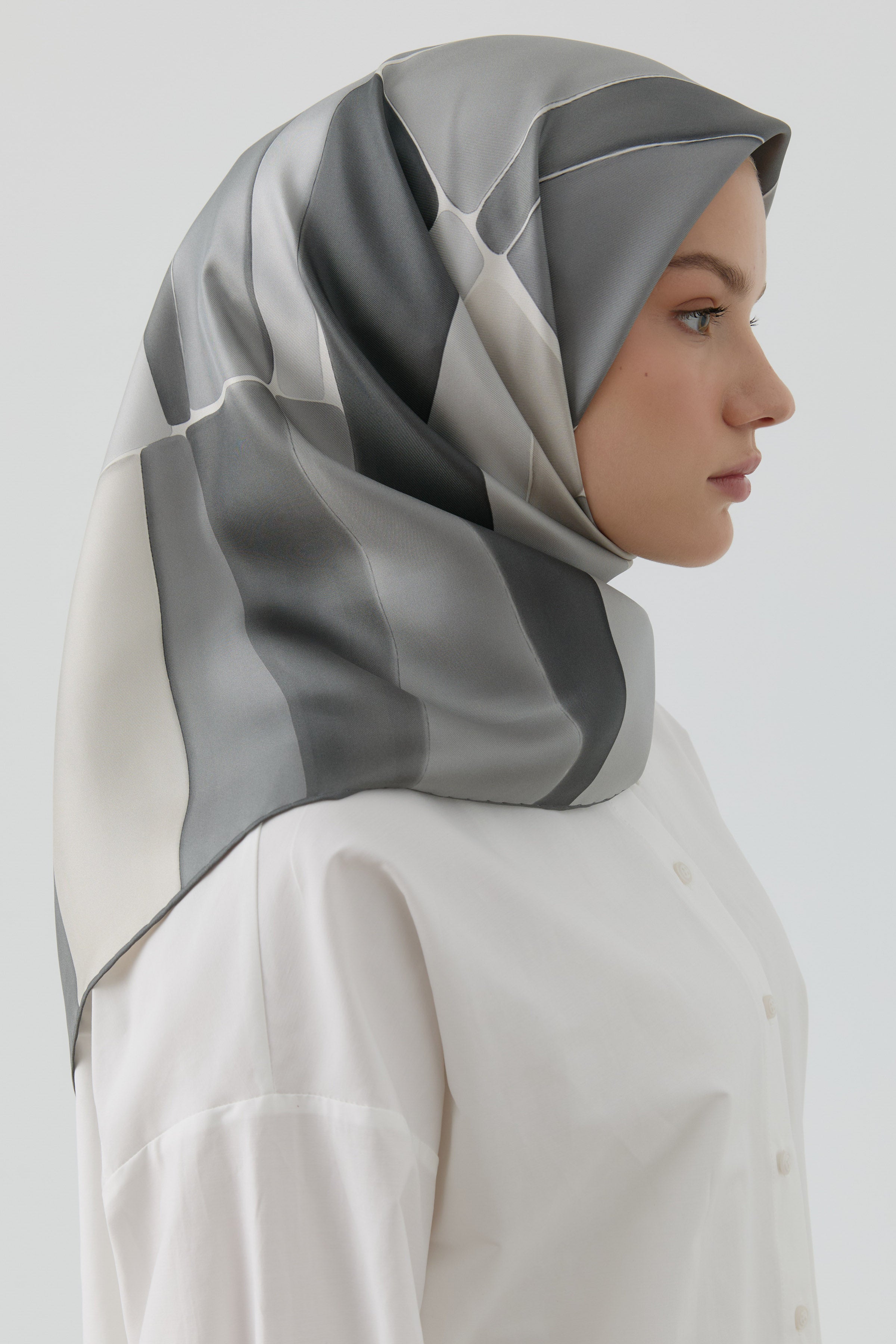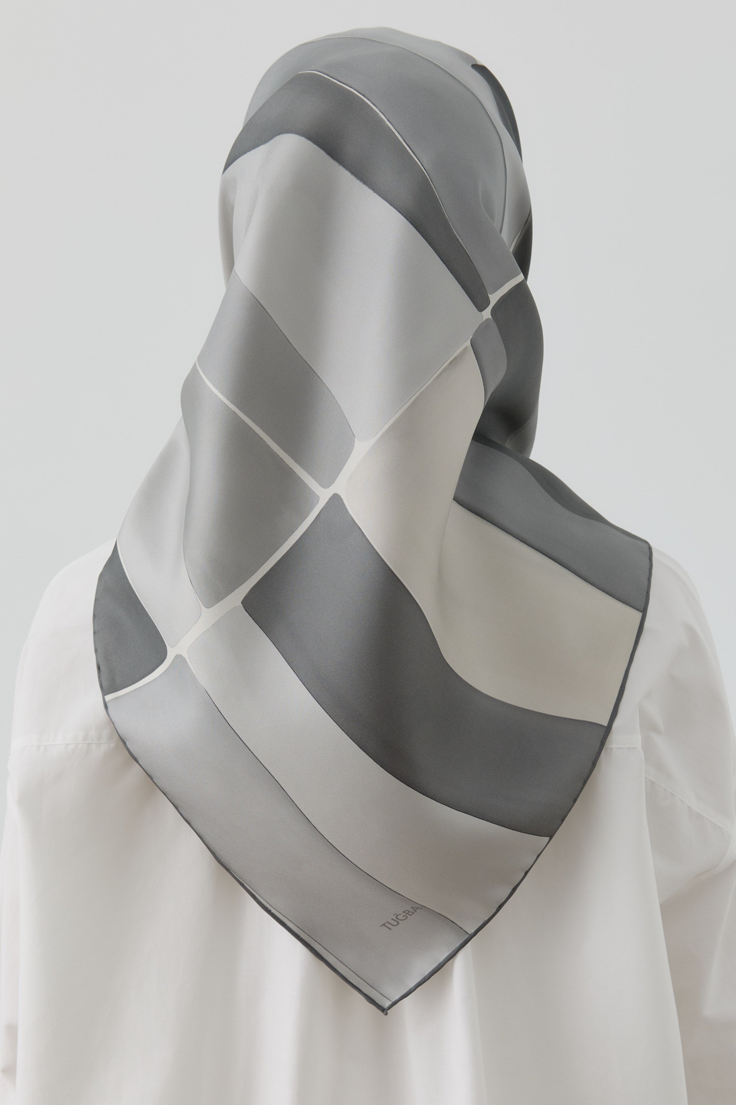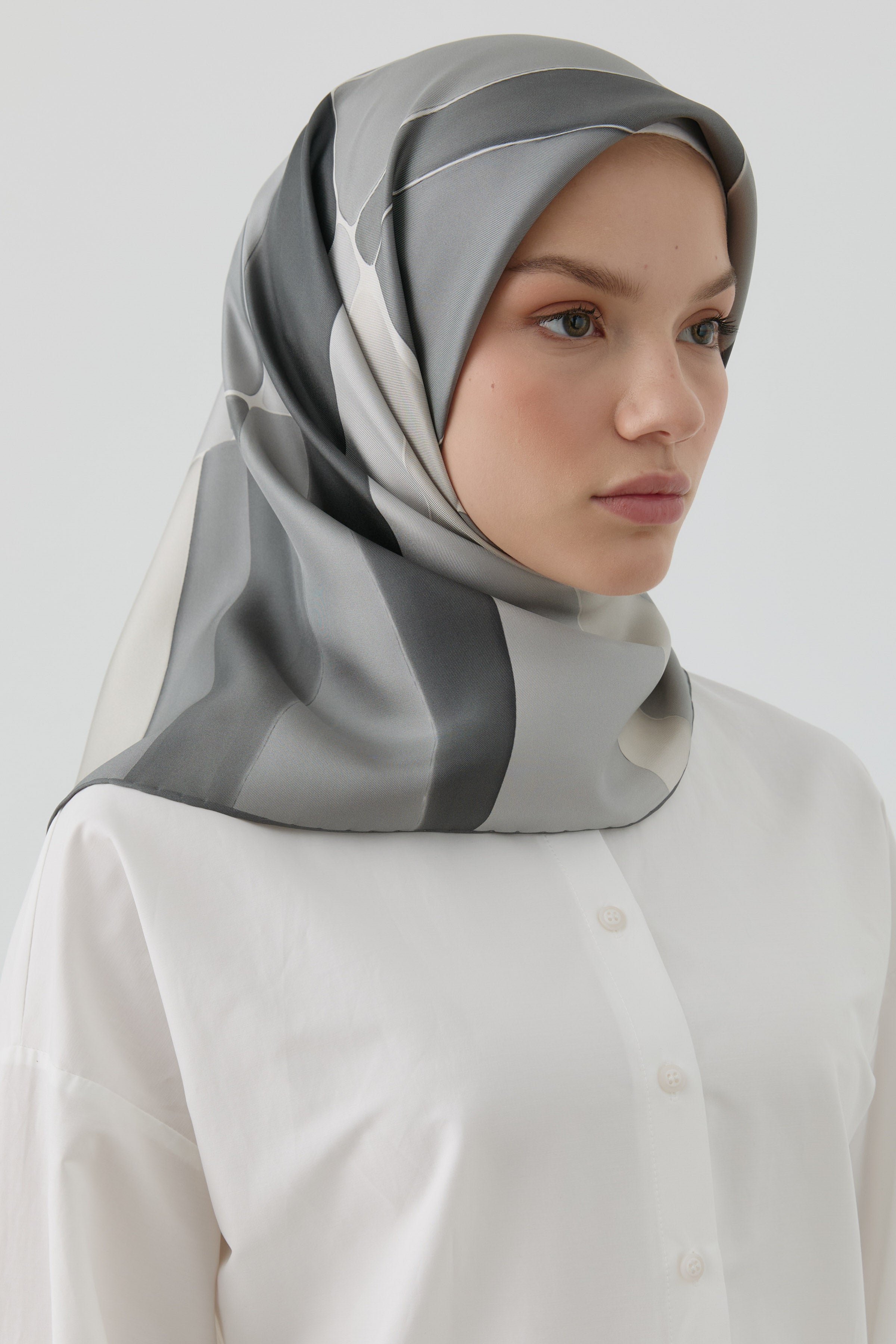 Écharpe en soie twill Ilgın - Gris