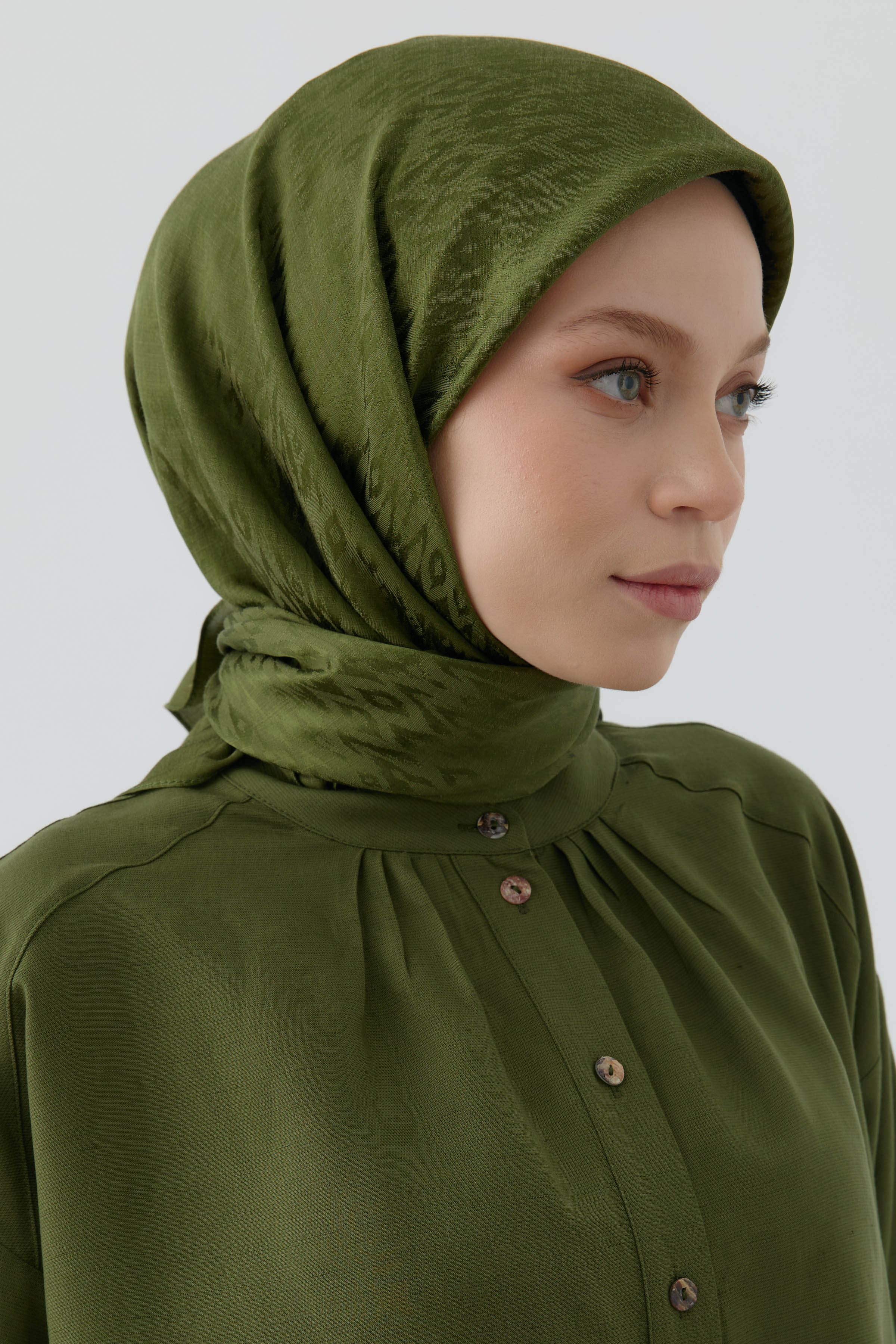 Écharpe naturelle à motif ikat ethnique Nida - Kaki