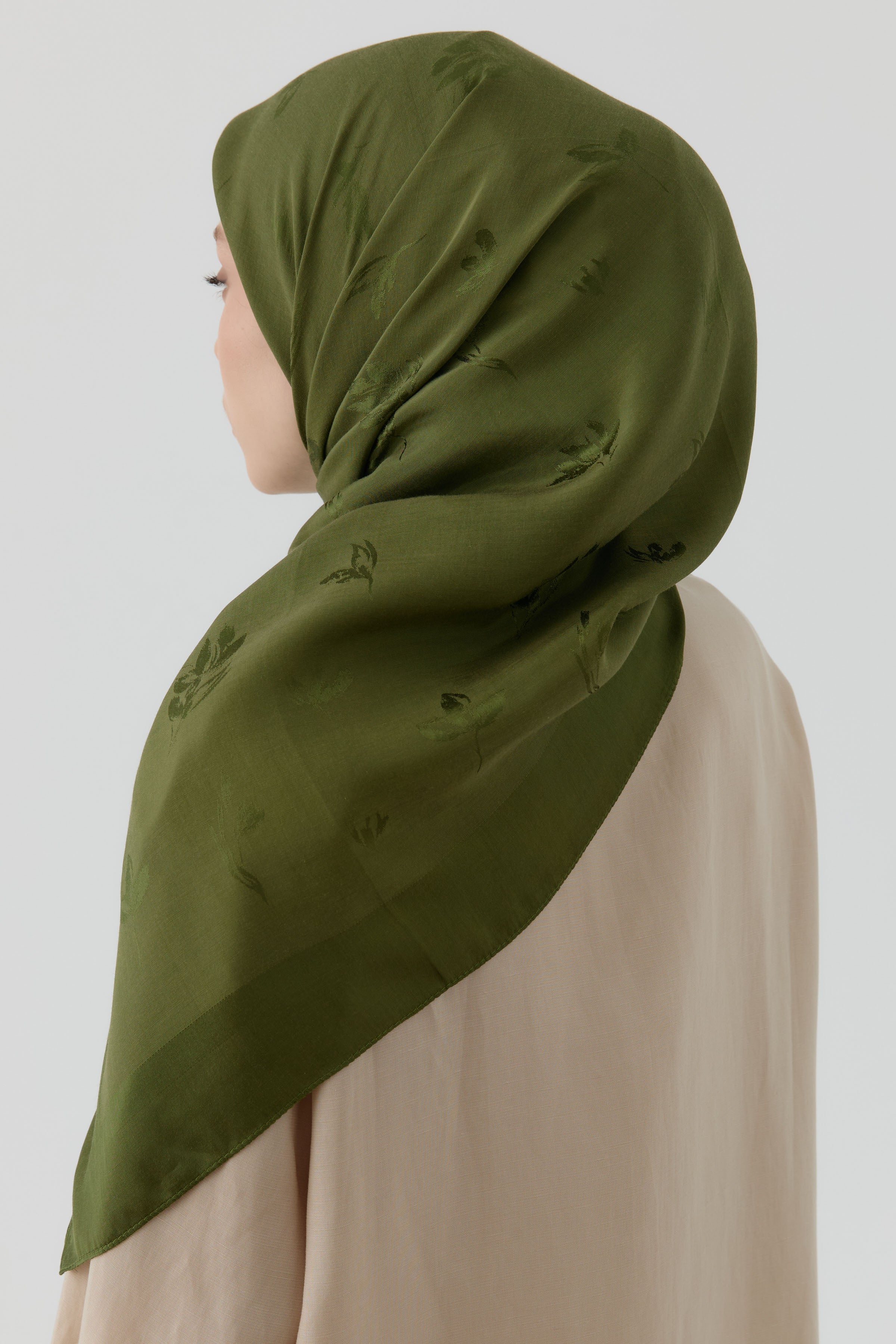 Écharpe style à motif floral avec détails en bordure - Vert amande