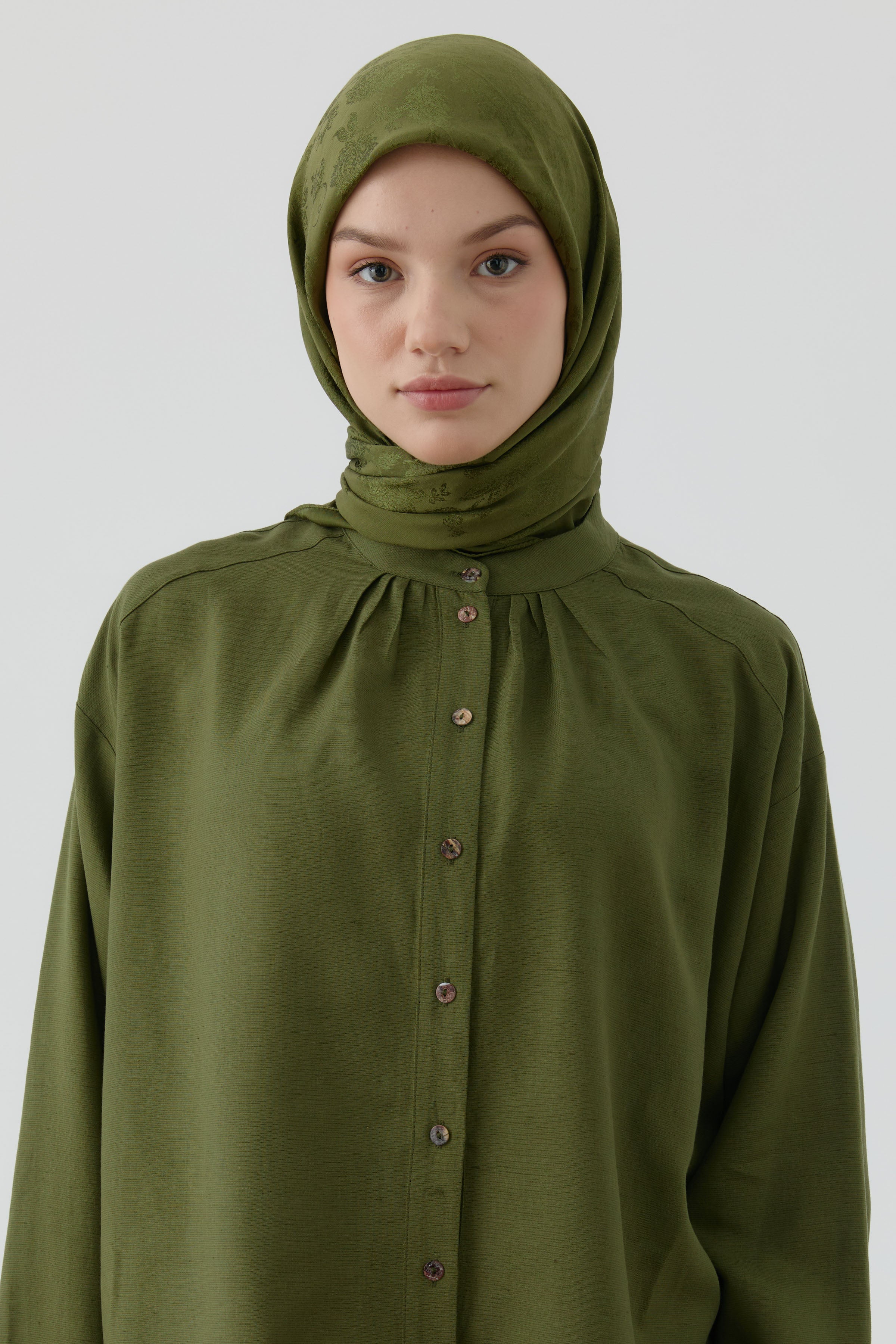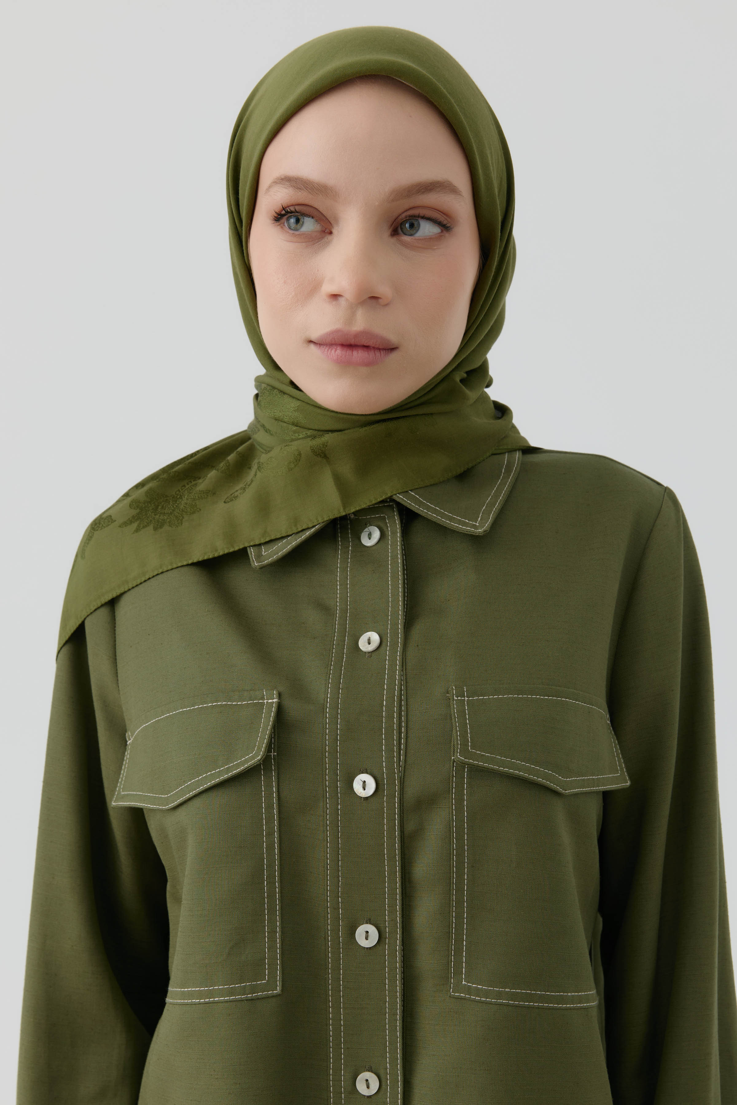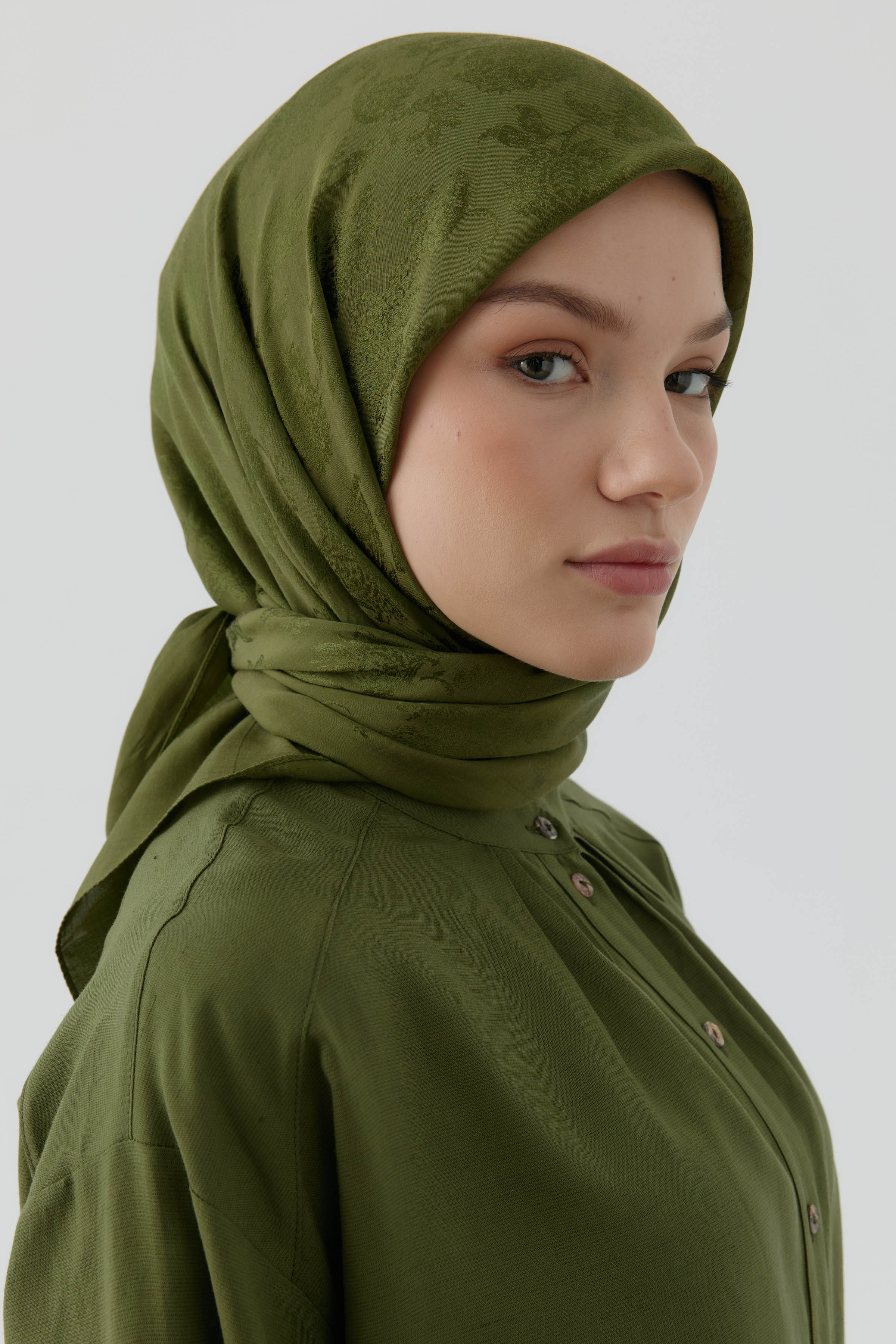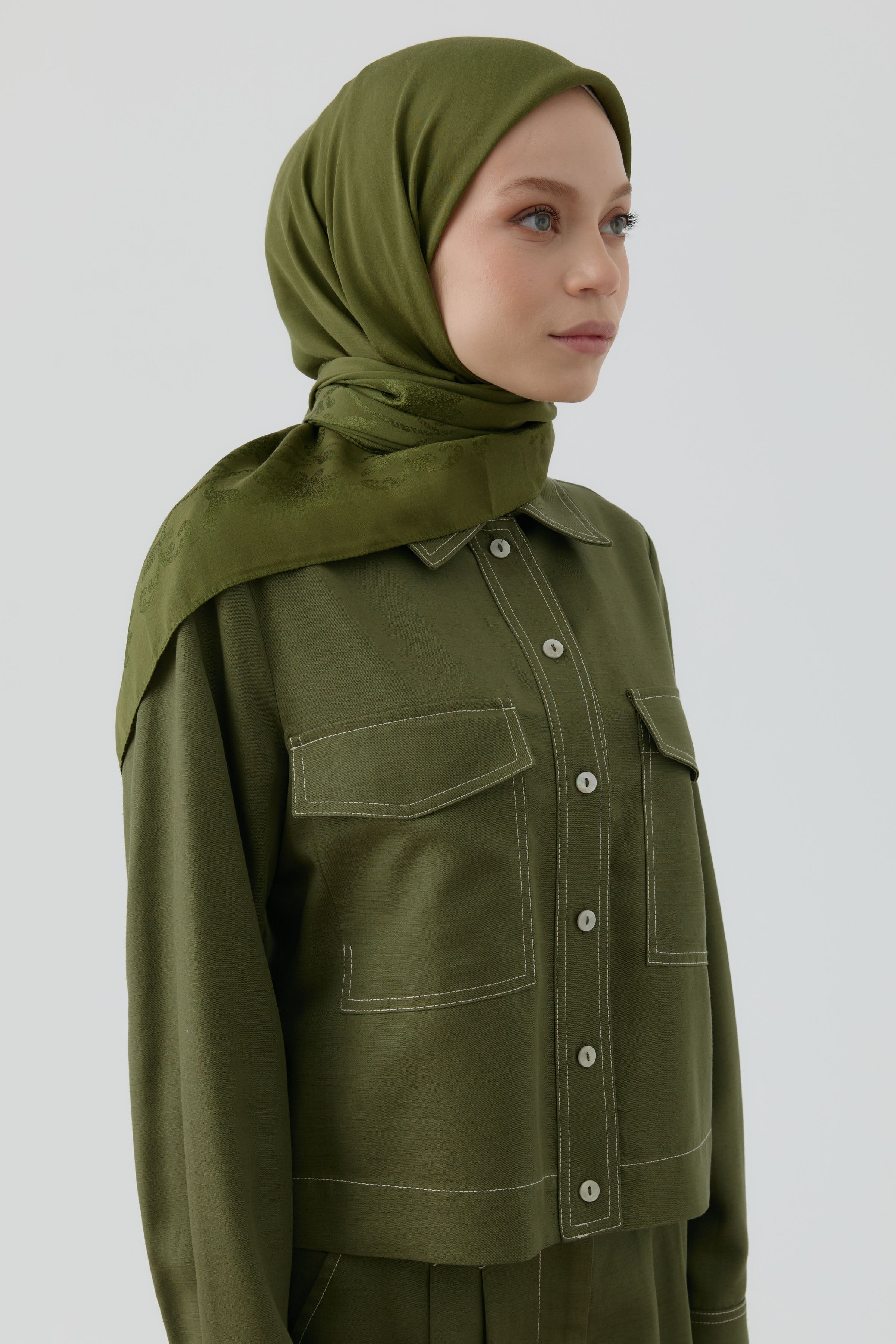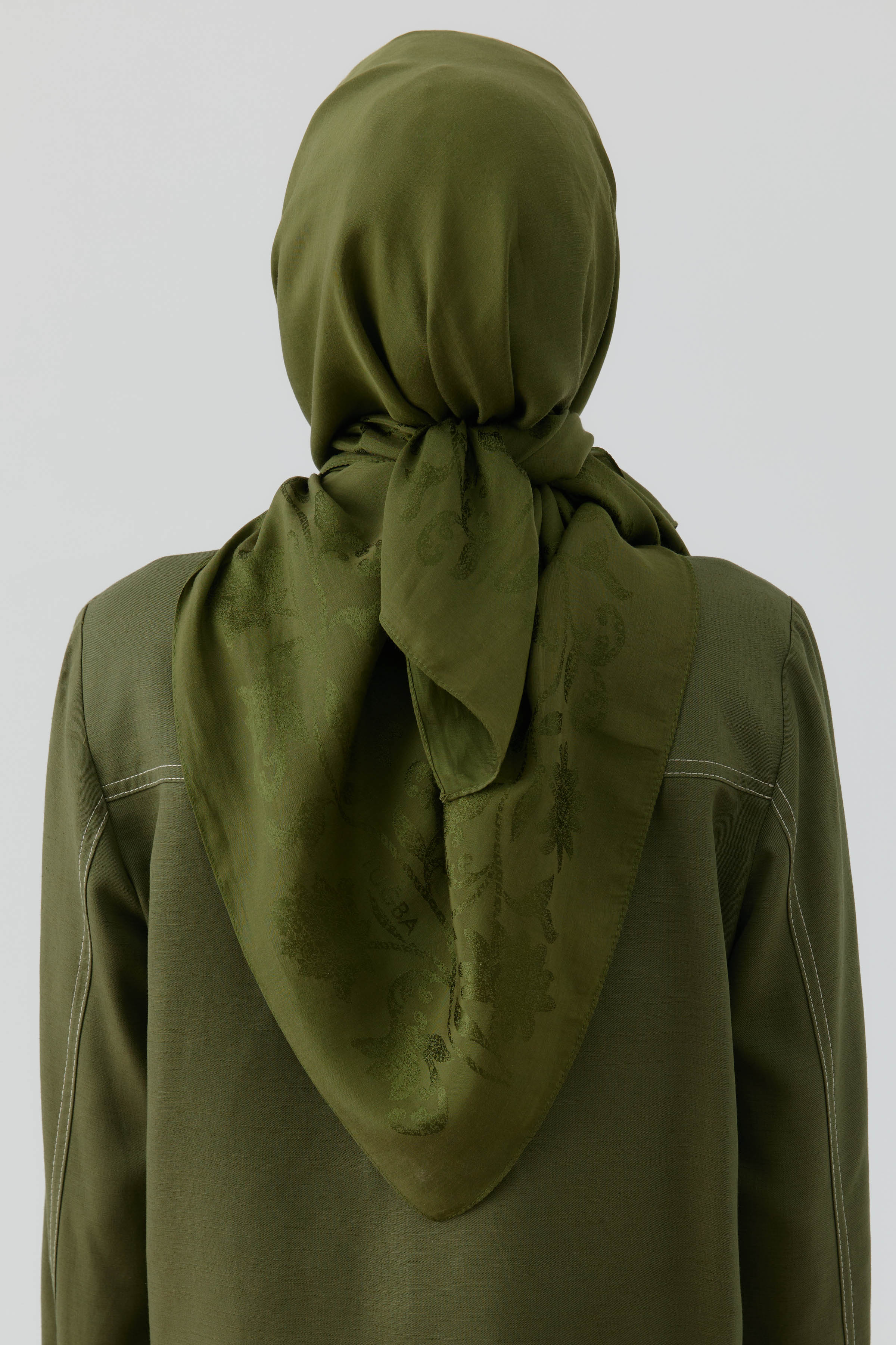 Écharpe naturelle Nevgül avec détails de bordure - Kaki
