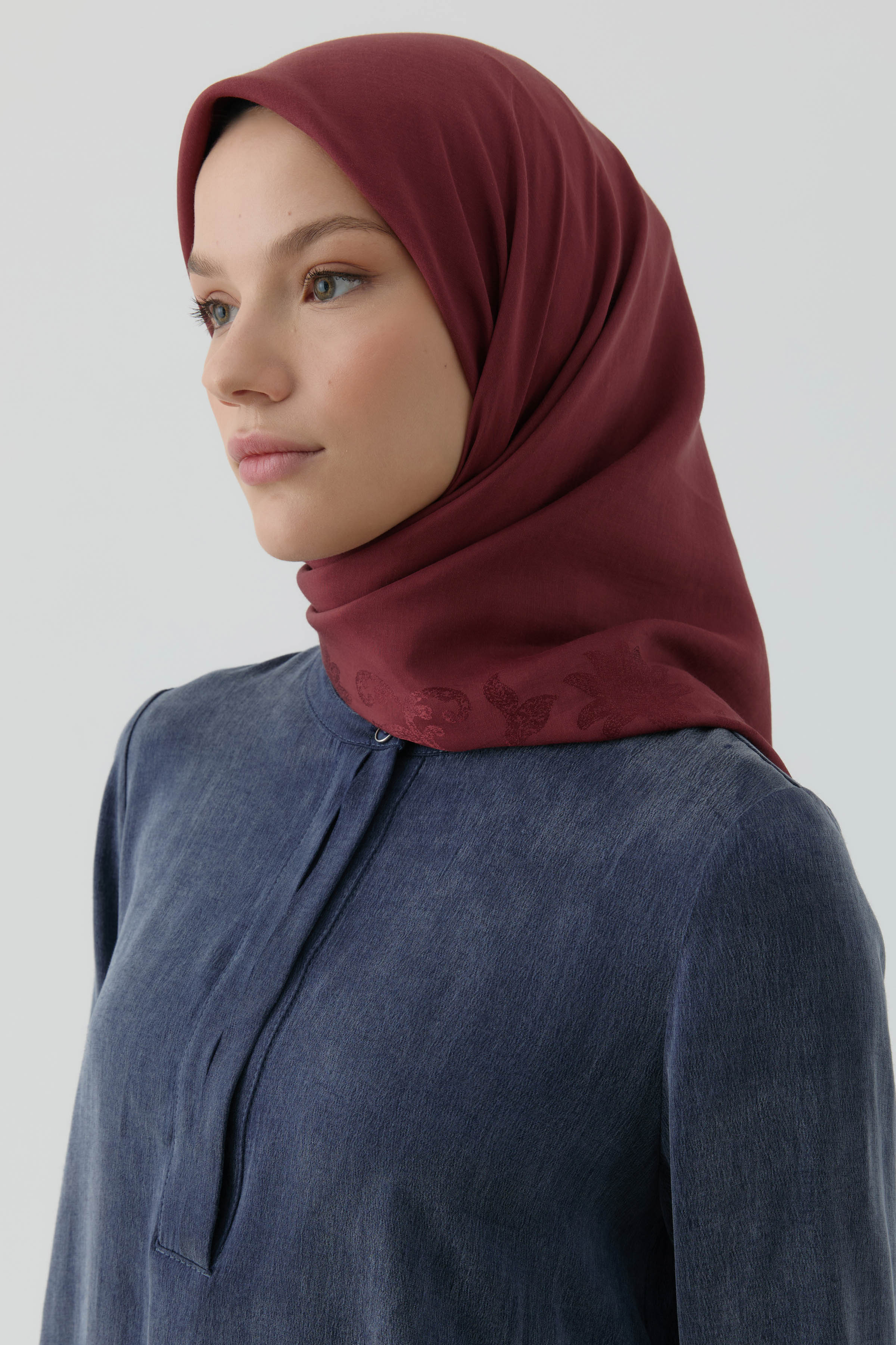 Écharpe naturelle Nevgül avec détails de bordure - Bordeaux