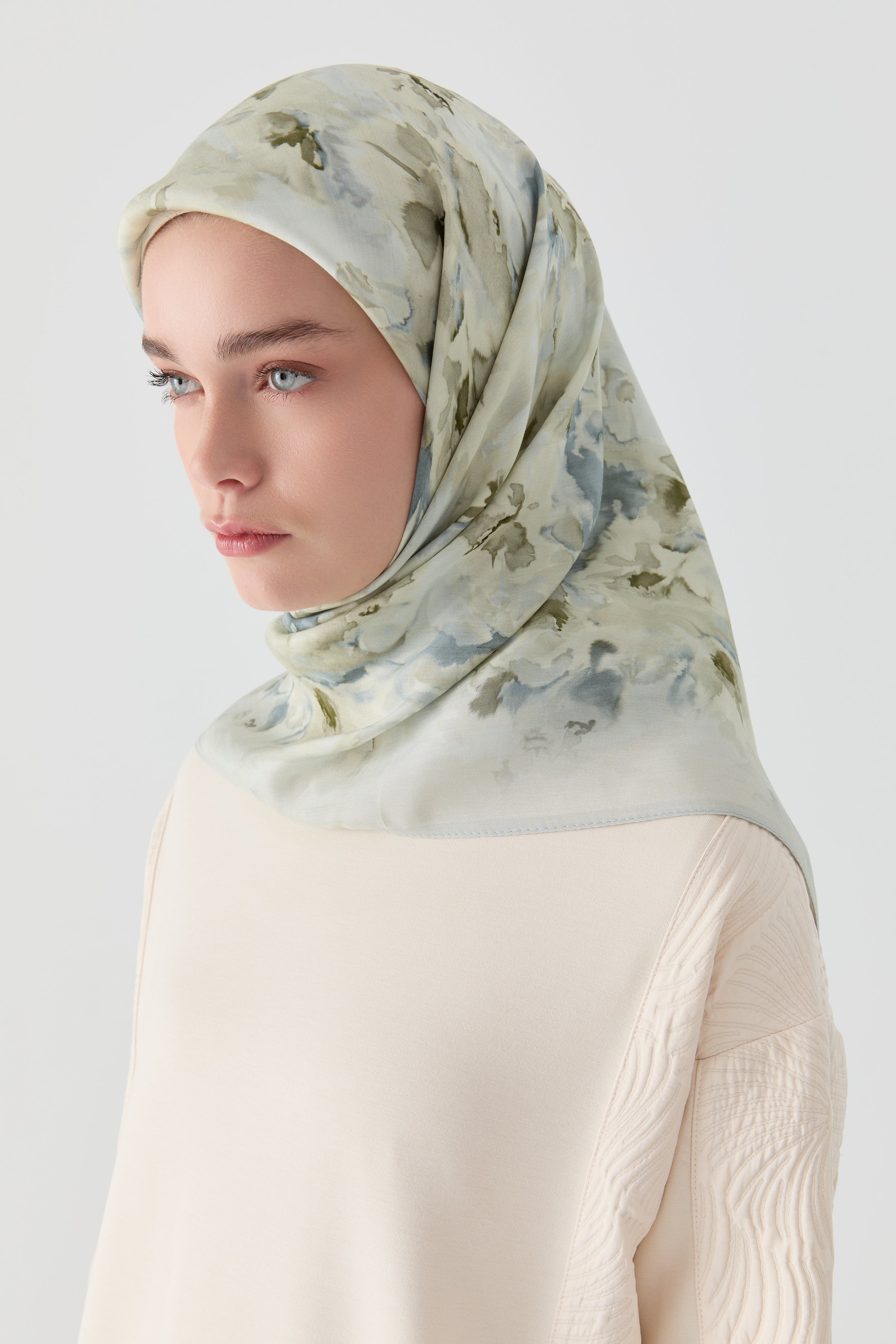 Écharpe Natural à motif floral fluide - Vert d'eau