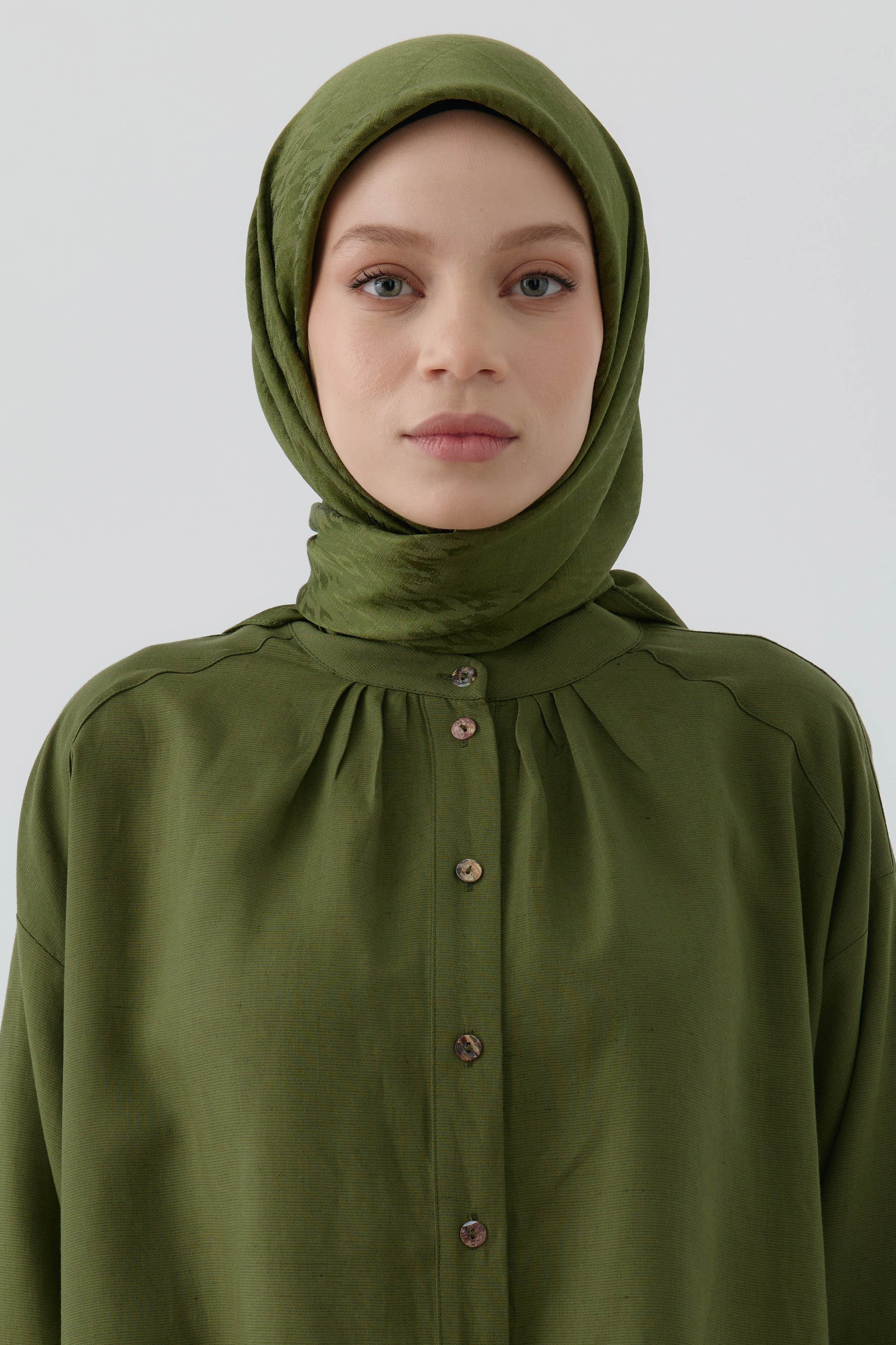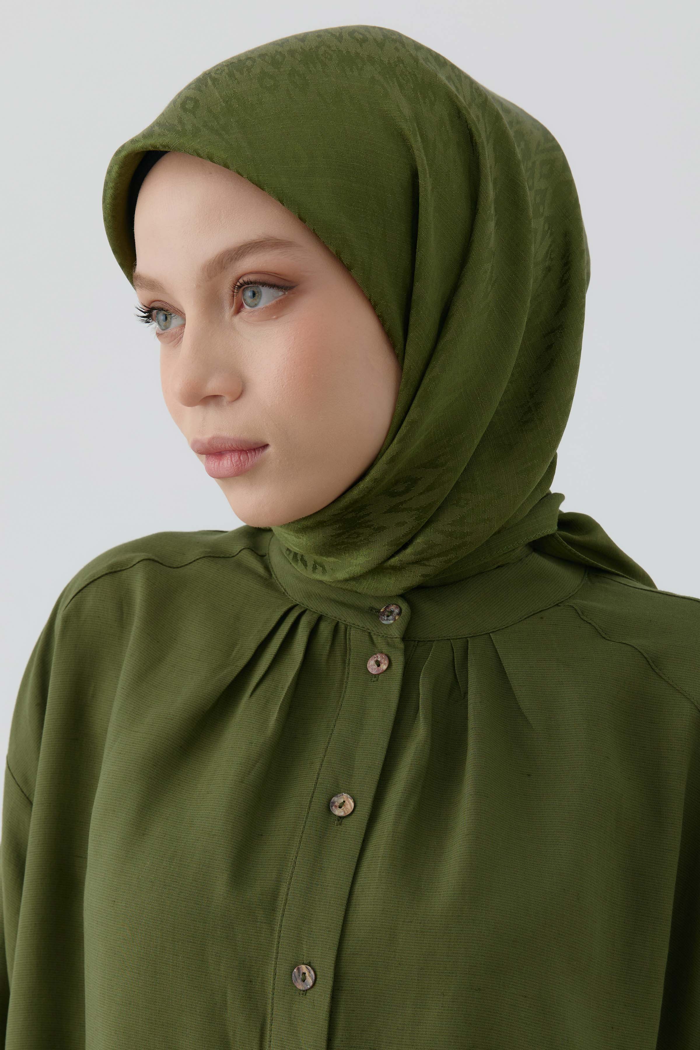 Écharpe naturelle à motif ikat ethnique Nida - Kaki