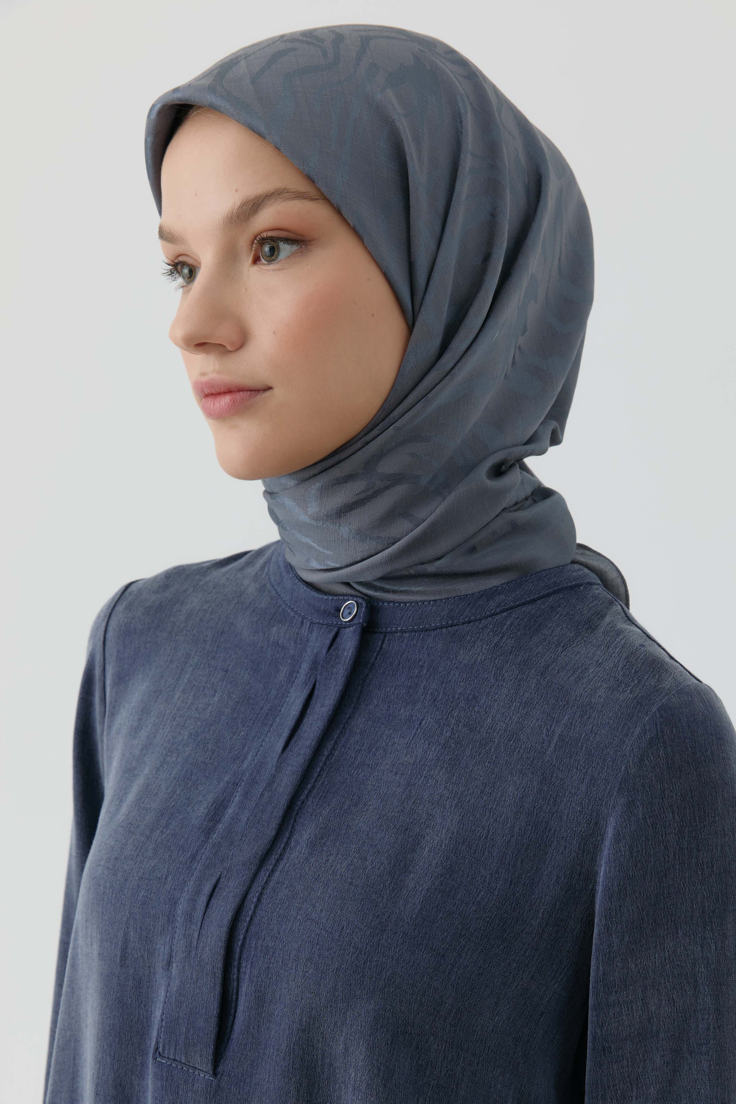 Écharpe naturelle à motif ikat ethnique Nida - Gris fumée