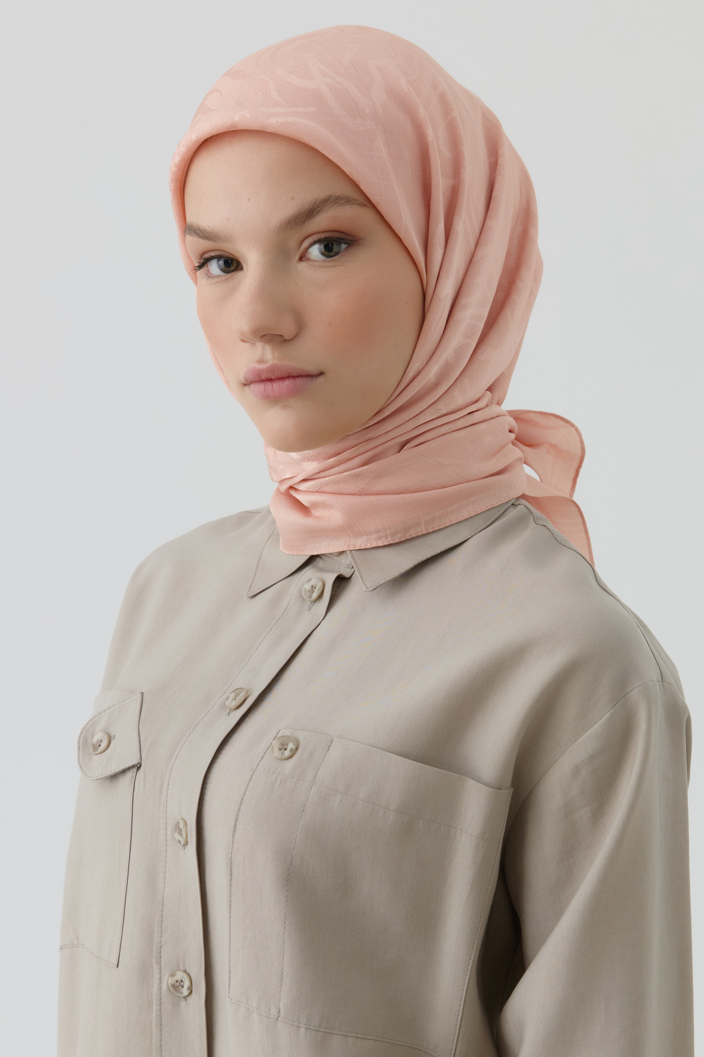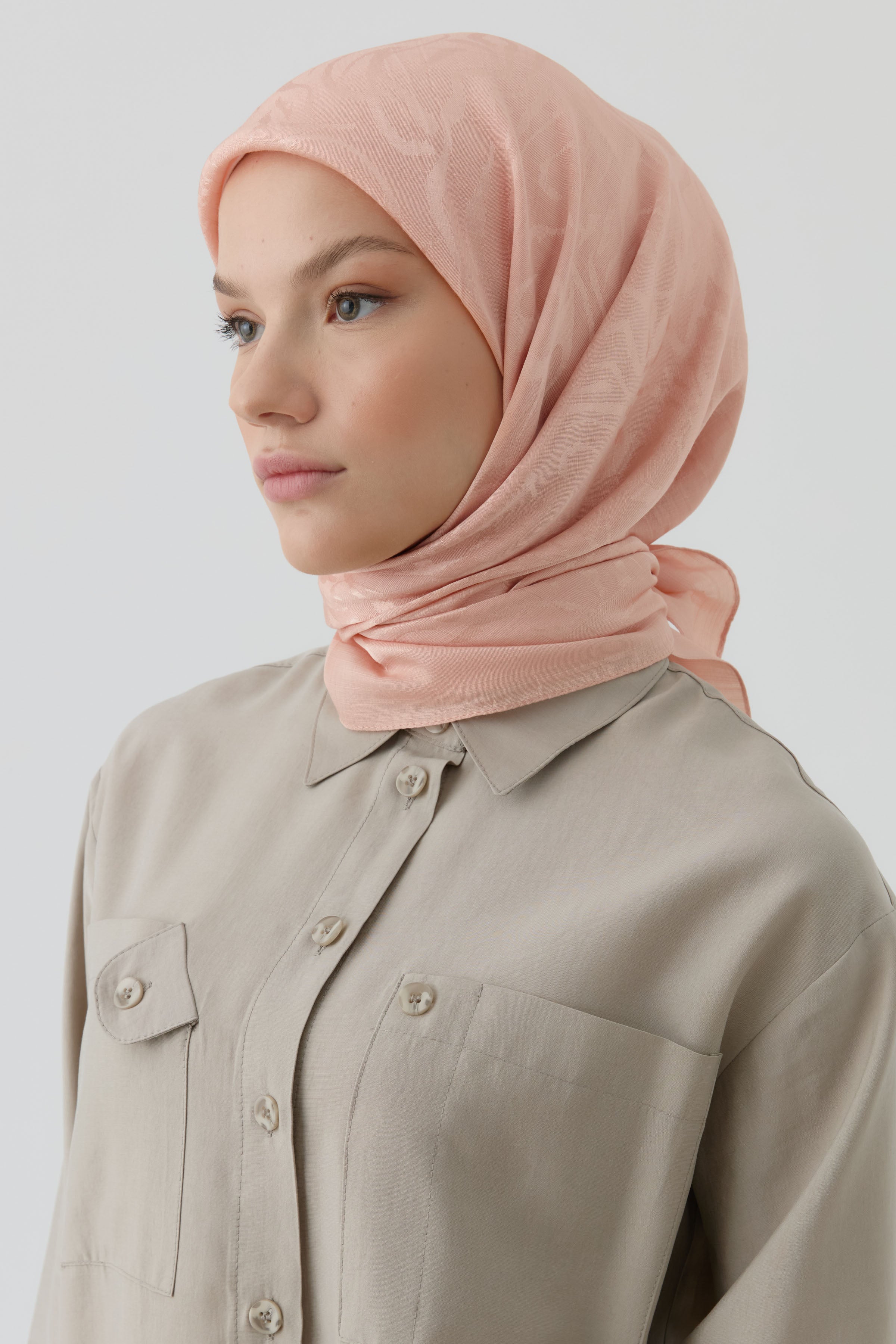 Écharpe jacquard florale Nida naturelle - Saumon