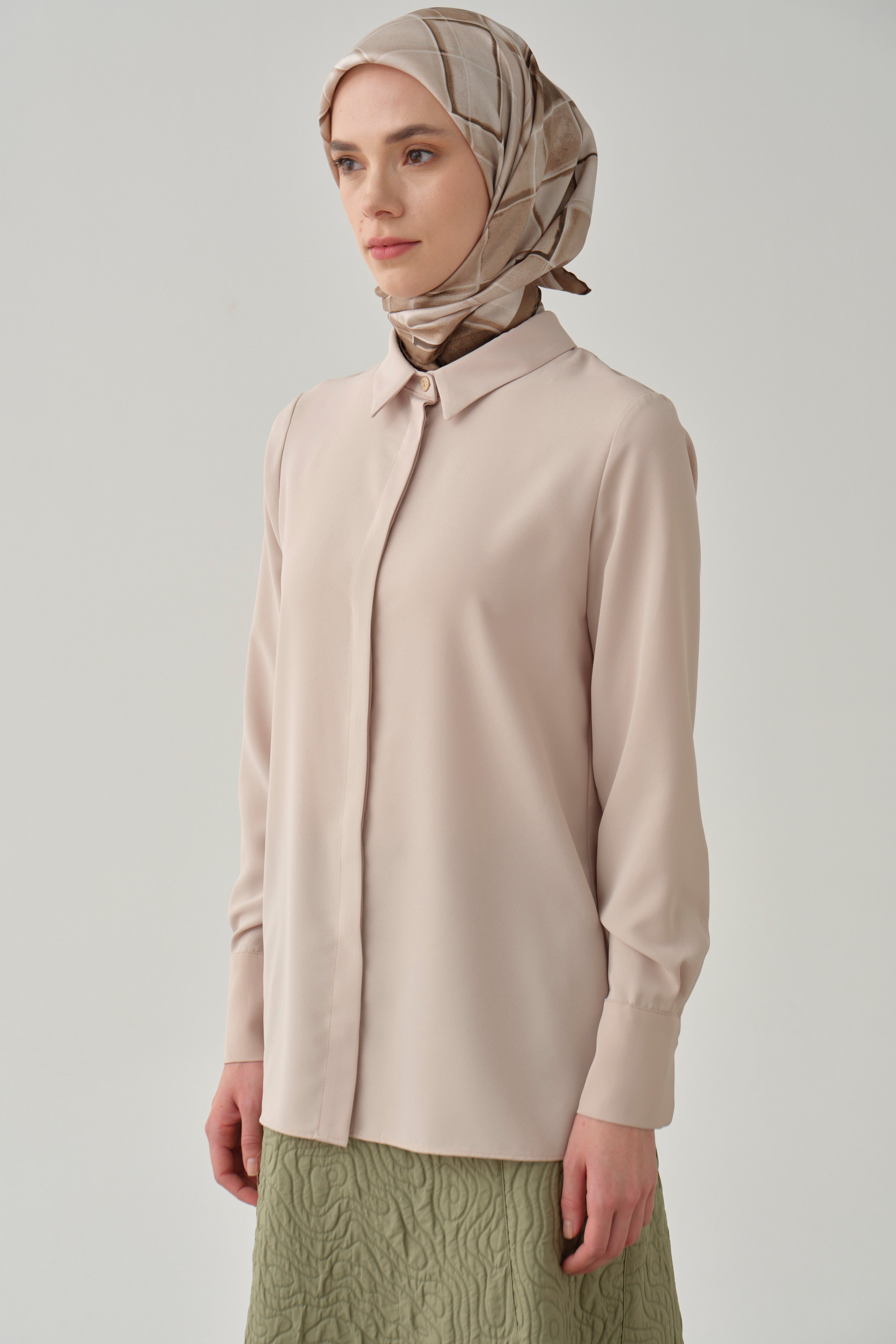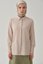 Chemise basique à patte de boutonnage cachée - Beige