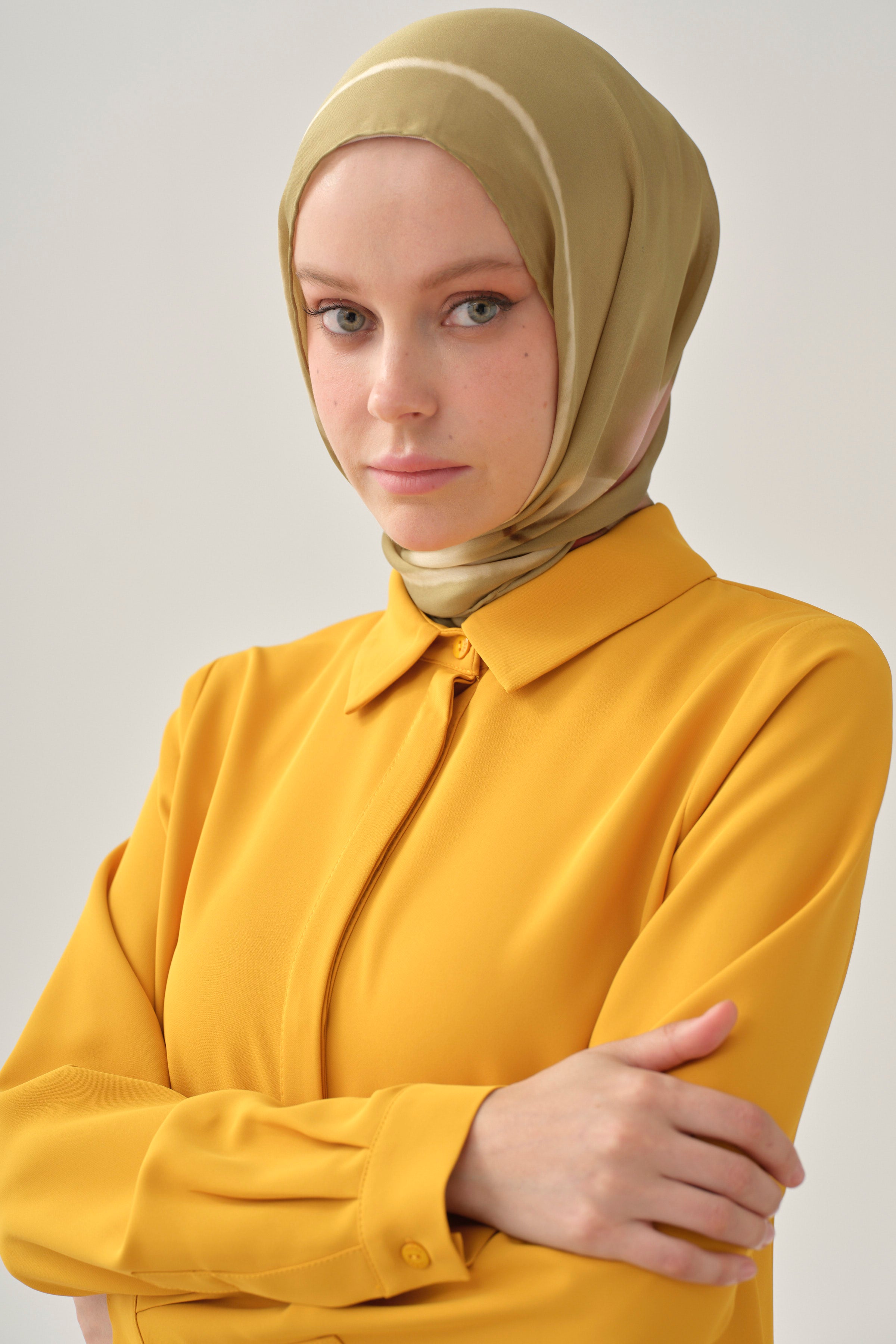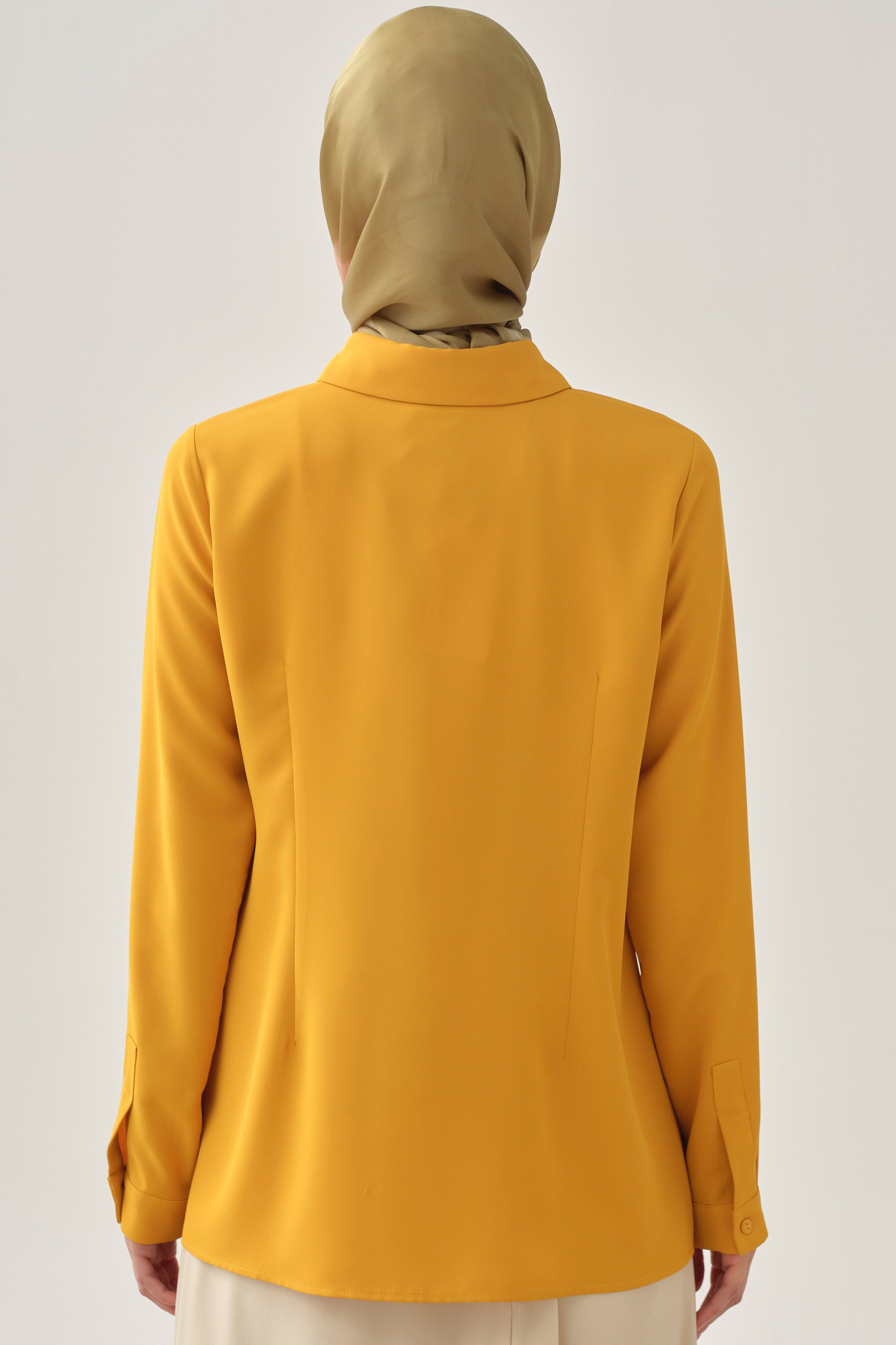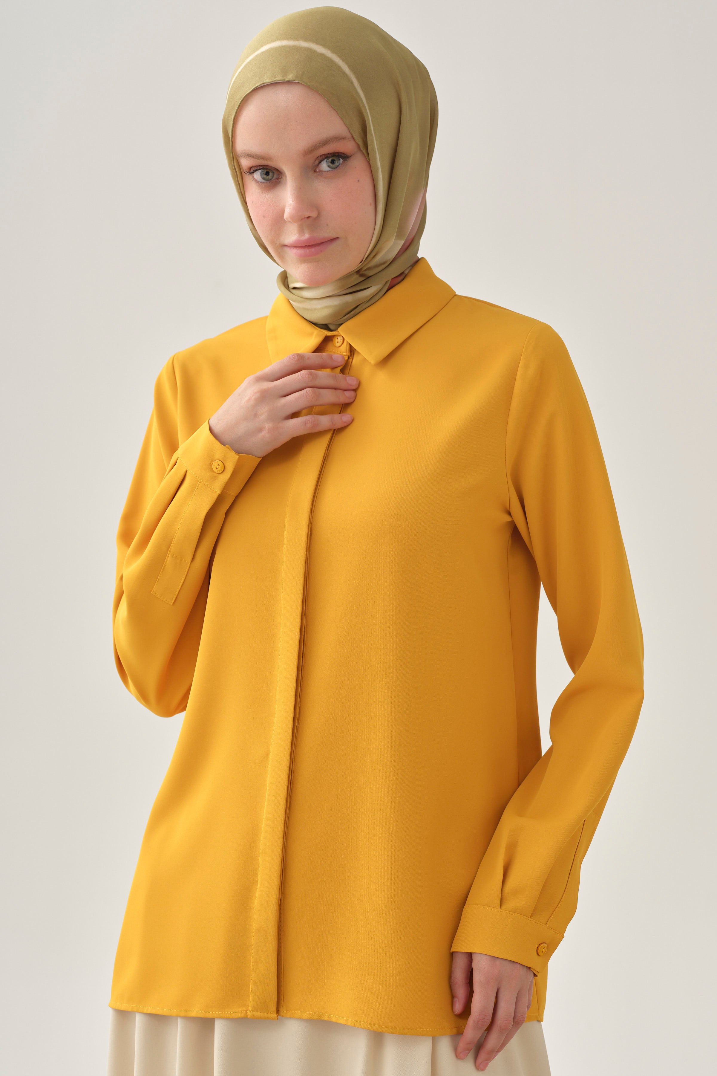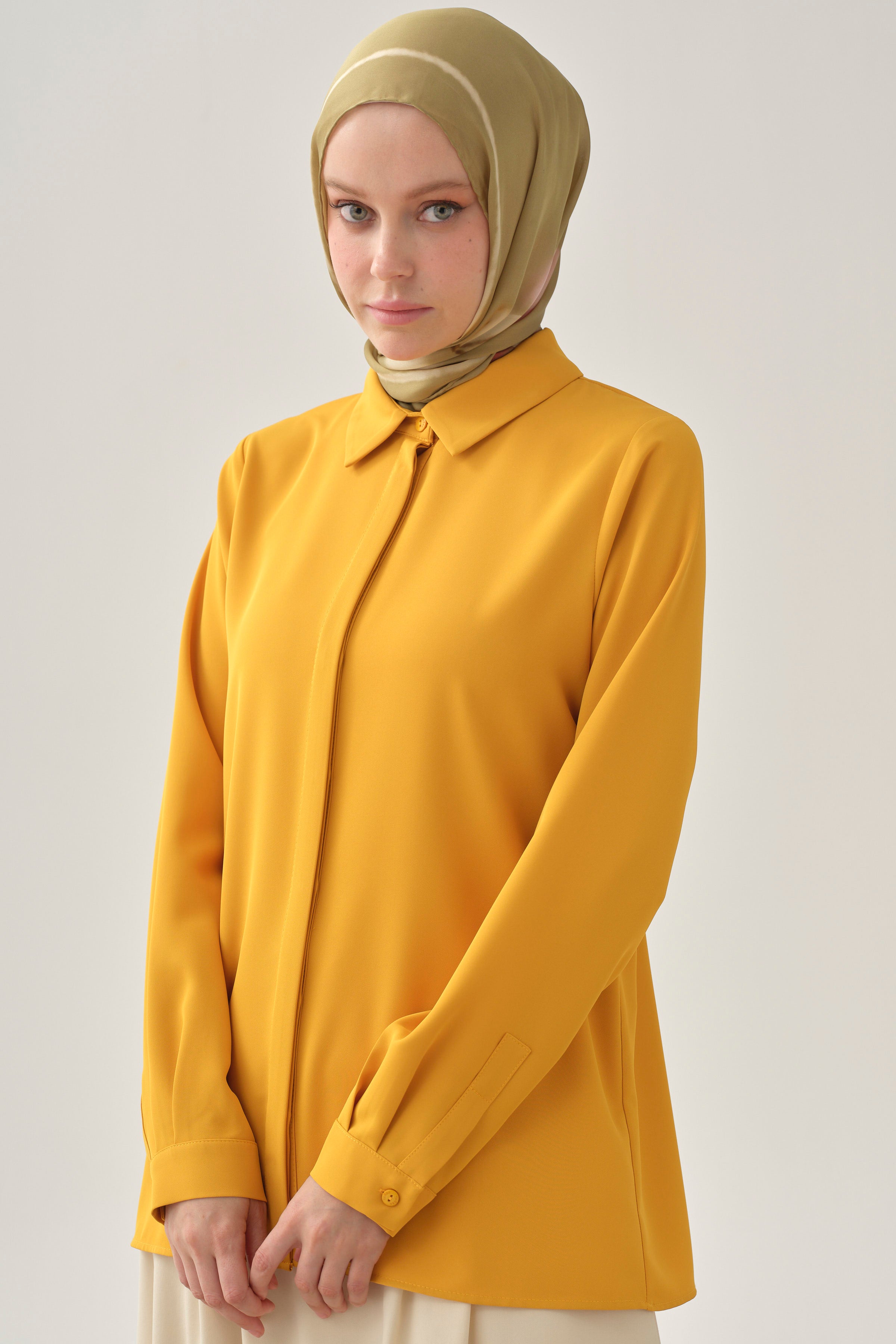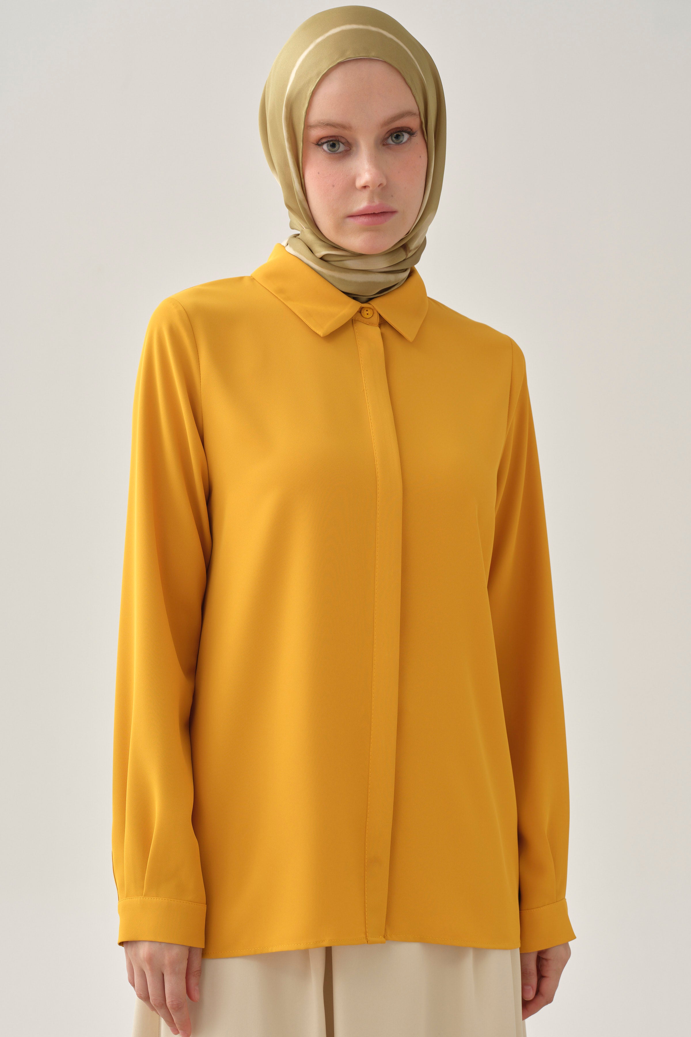 Chemise basique à patte de boutonnage cachée - Moutarde